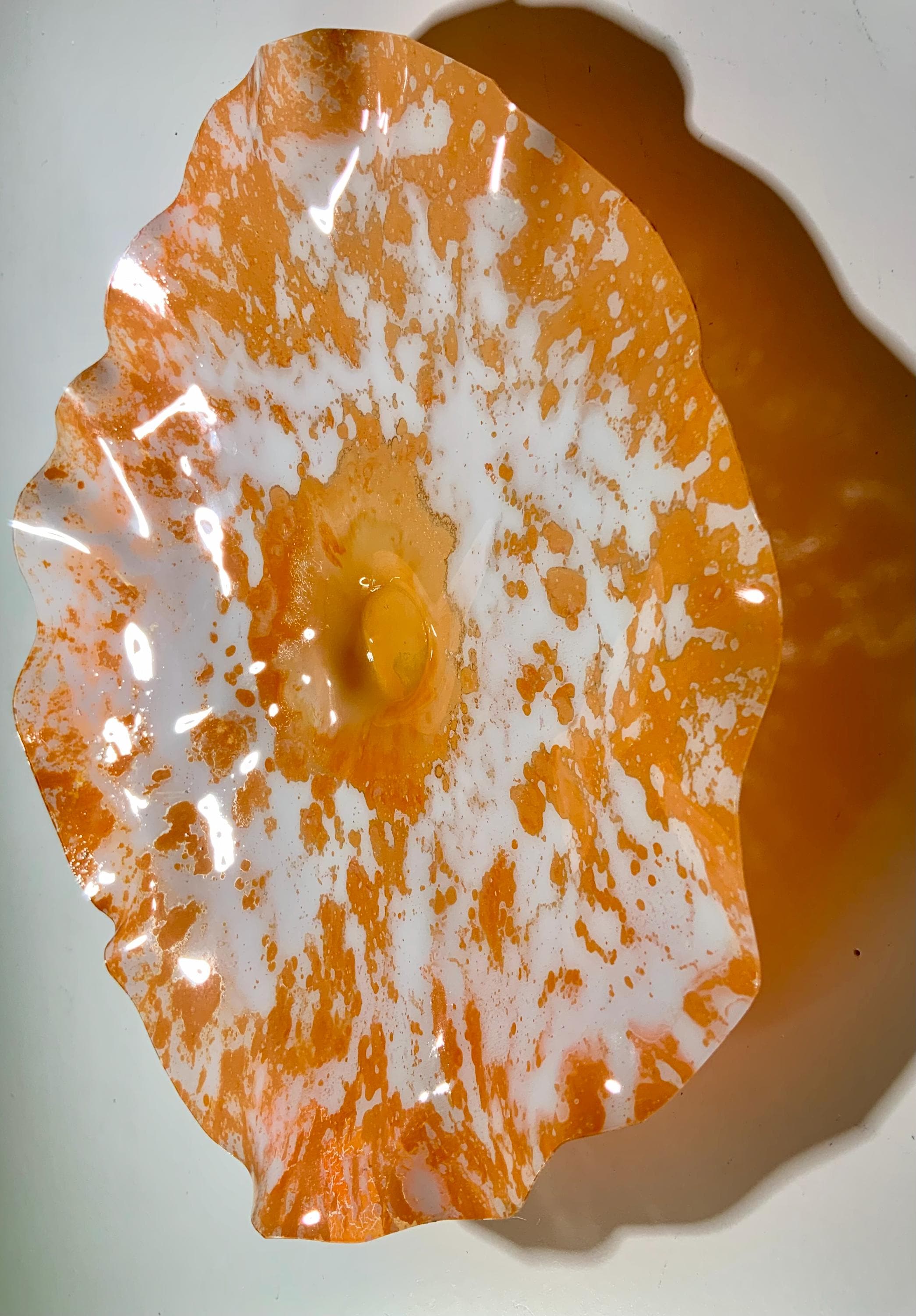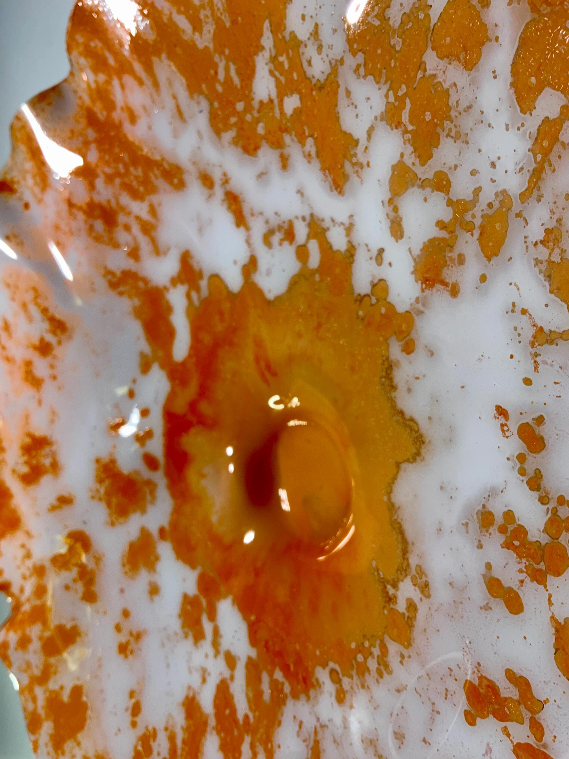Recycled water bottle wall flower accent 12" orange/white handmade eco art boho home decor/outdoor patio art/looks like glass
