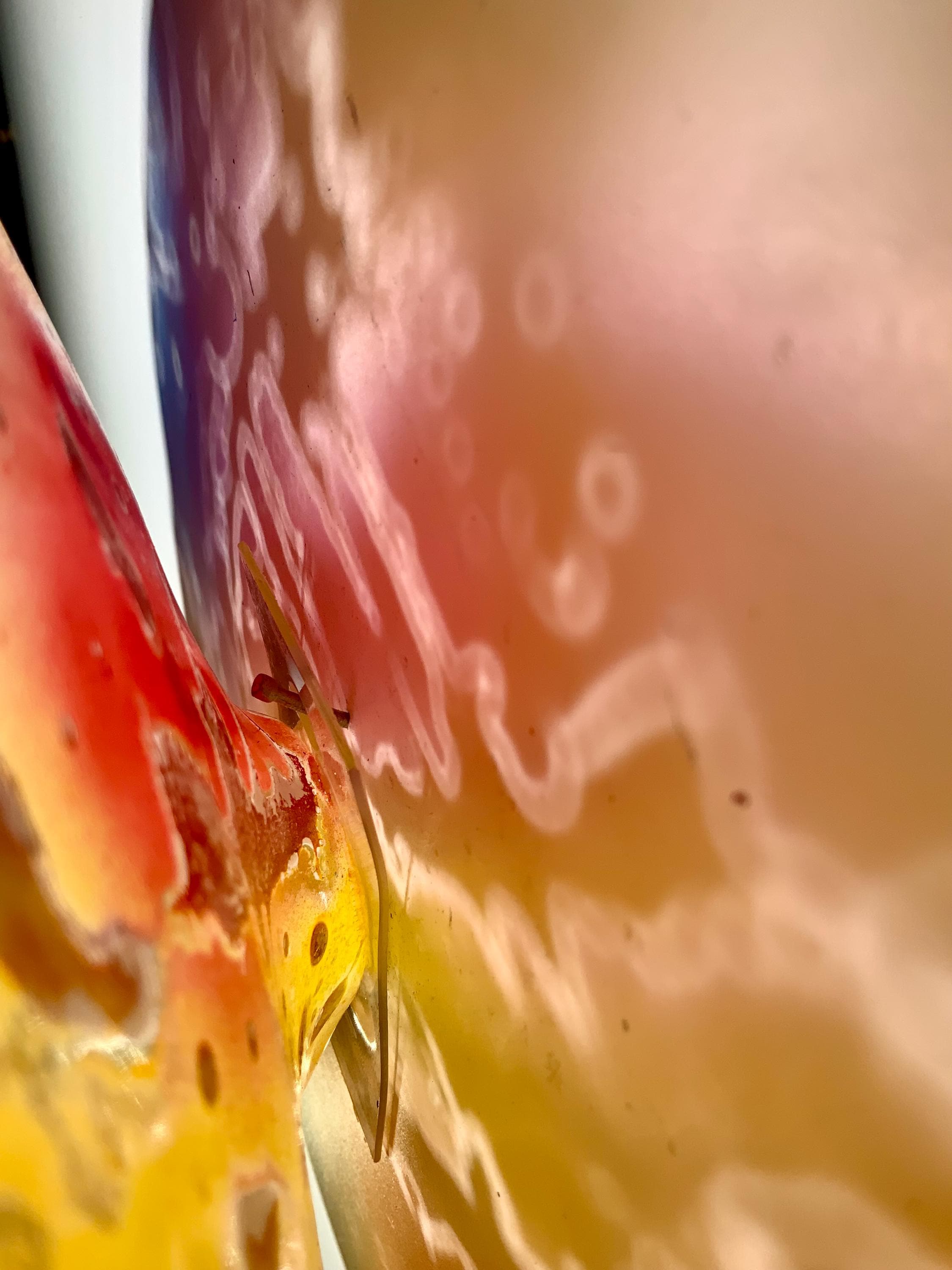 Each collectible piece is unique, no two are alike. This permanent, colorful, eye catching art looks and feels like glass. It shimmers in the light resembling water. They are very DURABLE AND LIGHTWEIGHT. This flower is easy to hang all weather and UV resistant. Great for indoor or outdoor decorating.