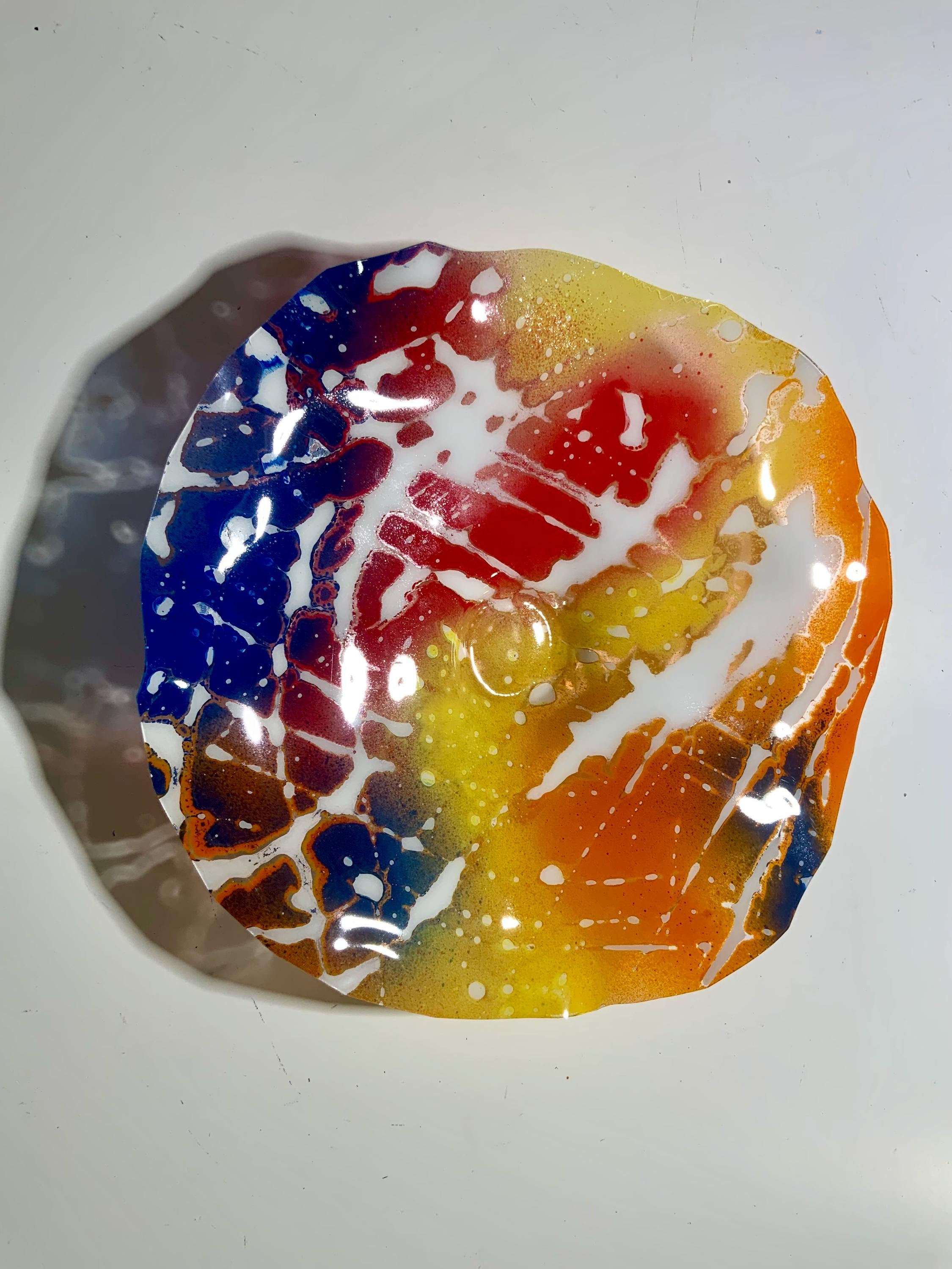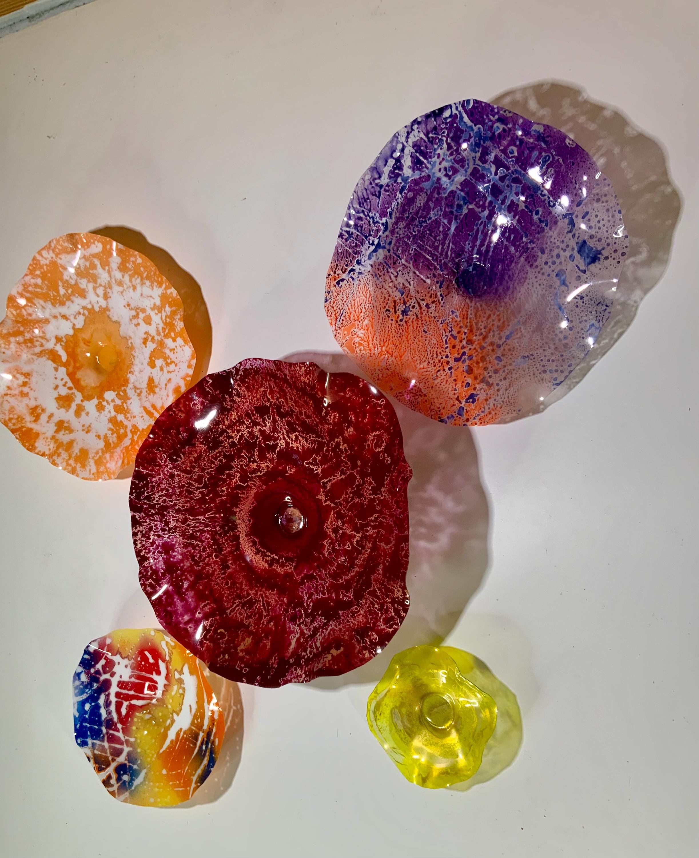Recycled Plastic Wall Flower: red, yellow, white Blue, Orange Boho Decor handmade by Todd Lynd/looks like glass