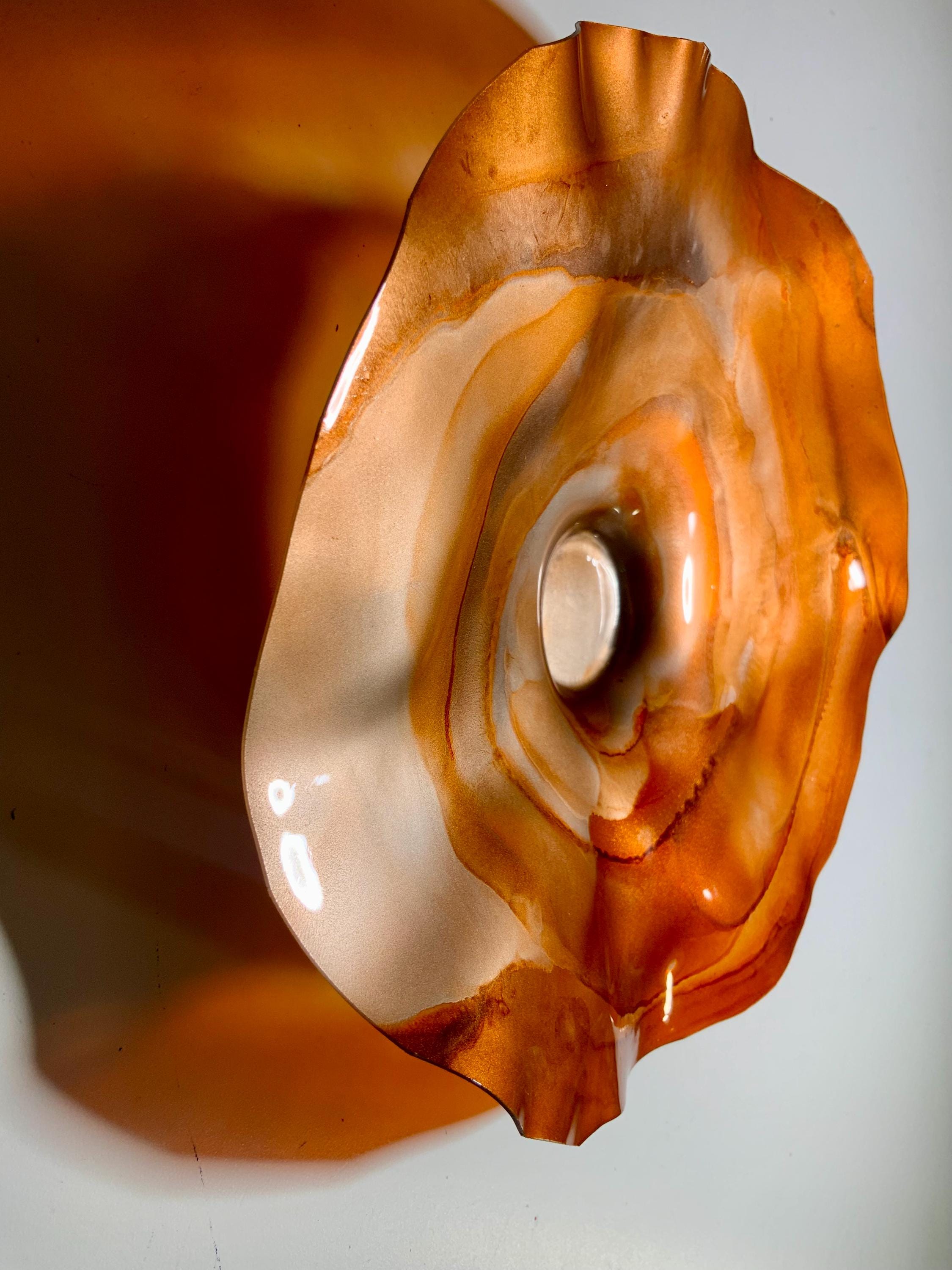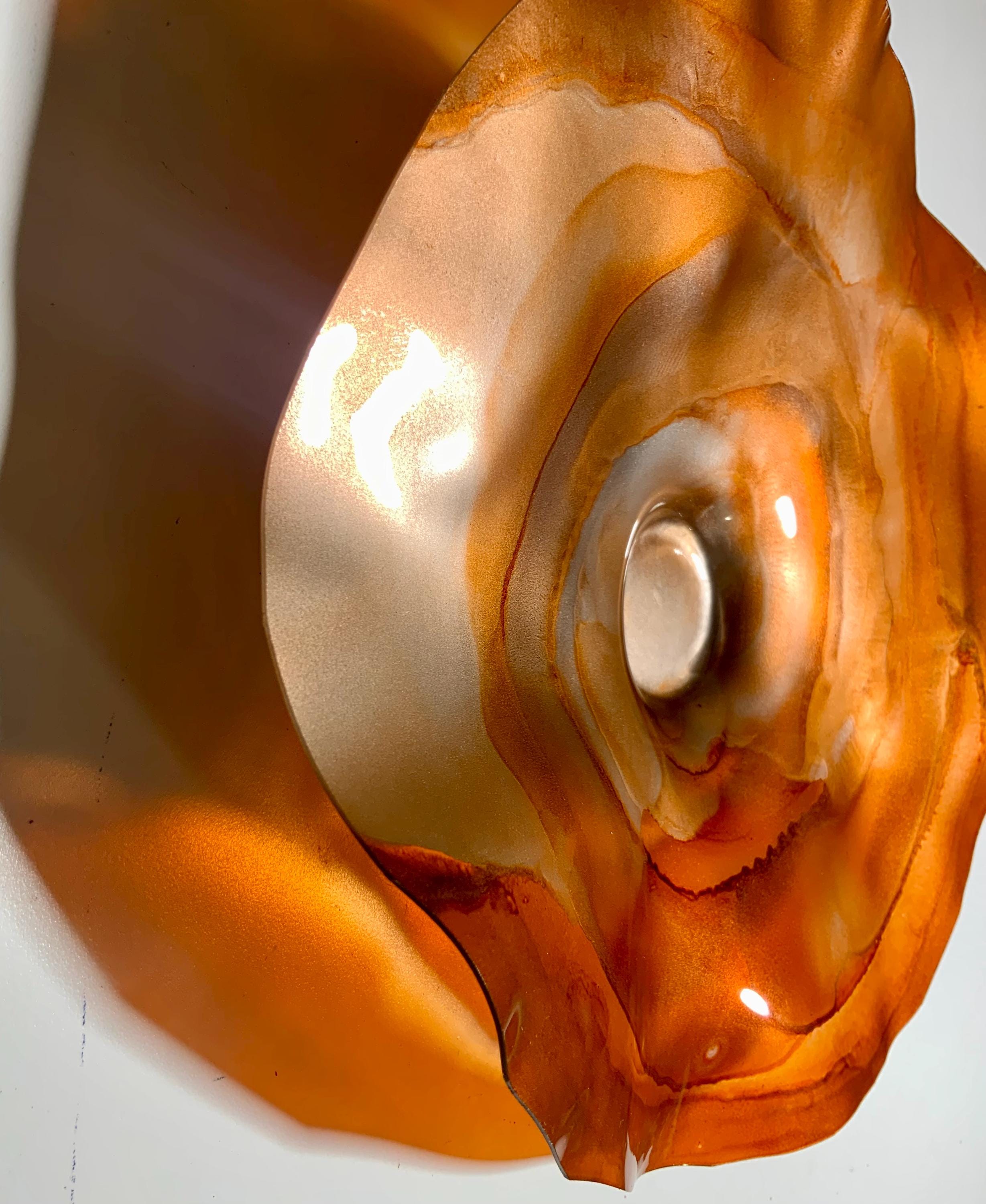 Each flower come with a hanger with a hole in the back for easy hanging. Each piece is light weight and all you will need is a nail or thumb tack to hang it from. If you can hang a picture, you can hang these plates. Each order comes with a set of hanging instructions. For outdoor hanging, please request our free outdoor hardware. For ceiling hanging please request velcro.