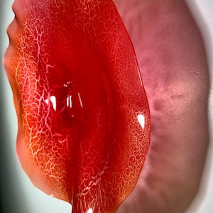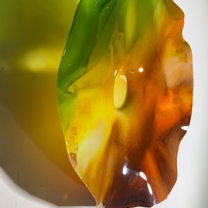 Each collectible piece is unique, no two are alike. This permanent, colorful, eye catching art looks and feels like glass. It shimmers in the light resembling water. They are very DURABLE AND LIGHTWEIGHT. These flowers are easy to hang, all weather and UV resistant. Great for indoor or outdoor decorating.