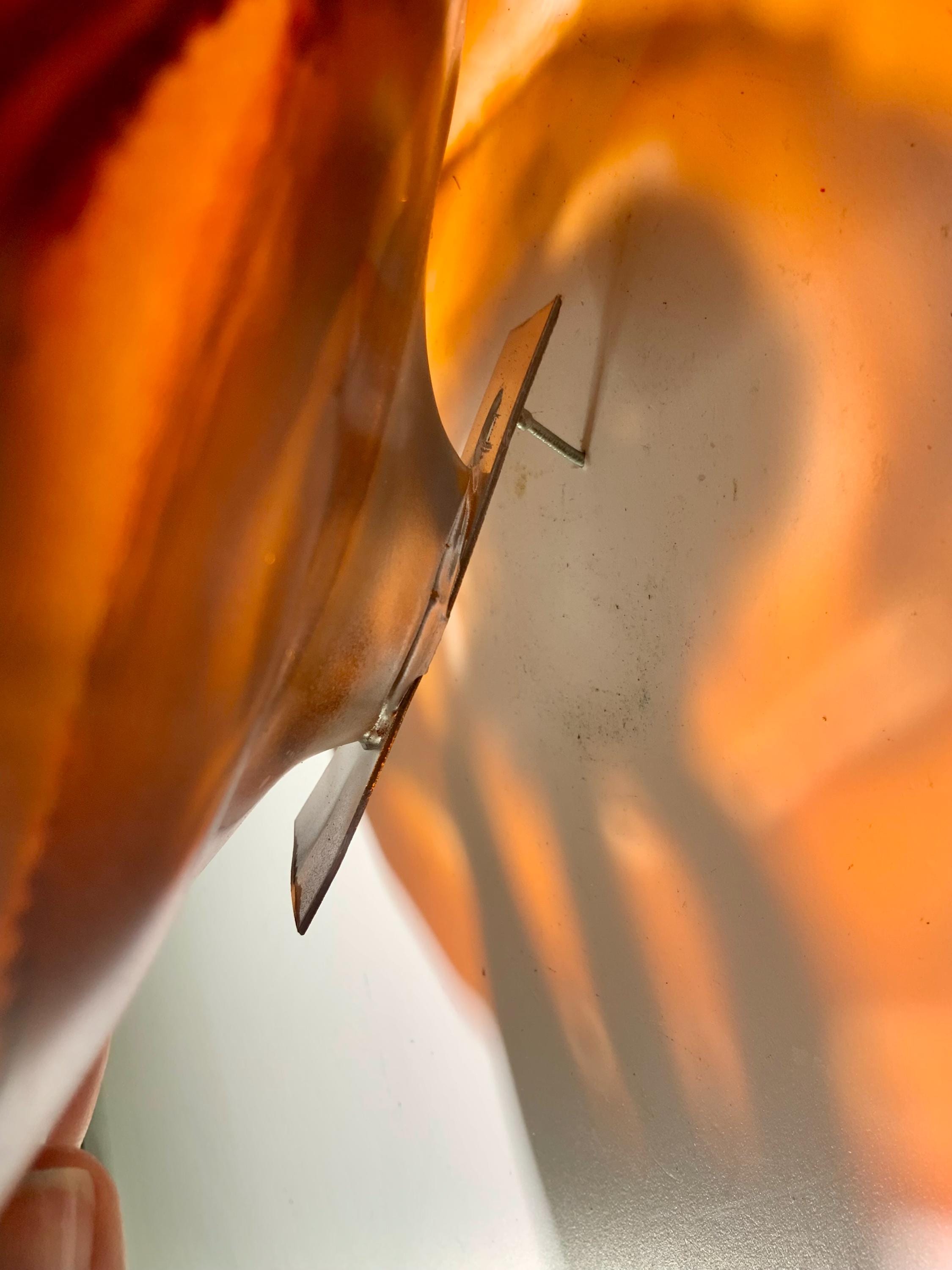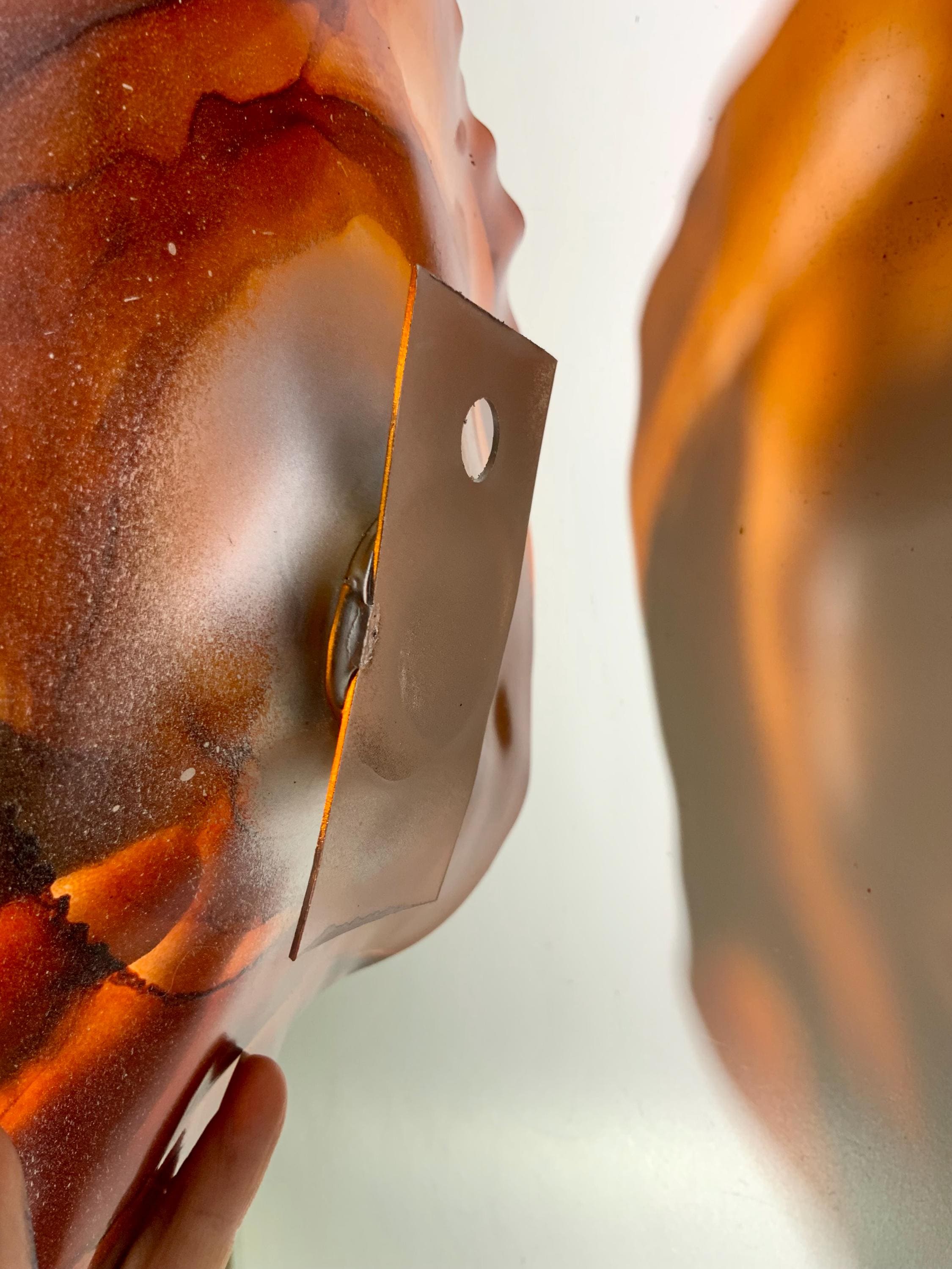 From the wall, they look like glass. The bonuses are that these flowers are light, unbreakable, environmentally friendly, easy to hang, and have no damage to the wall due to drilling for would-be-heavy traditional glass flowers.