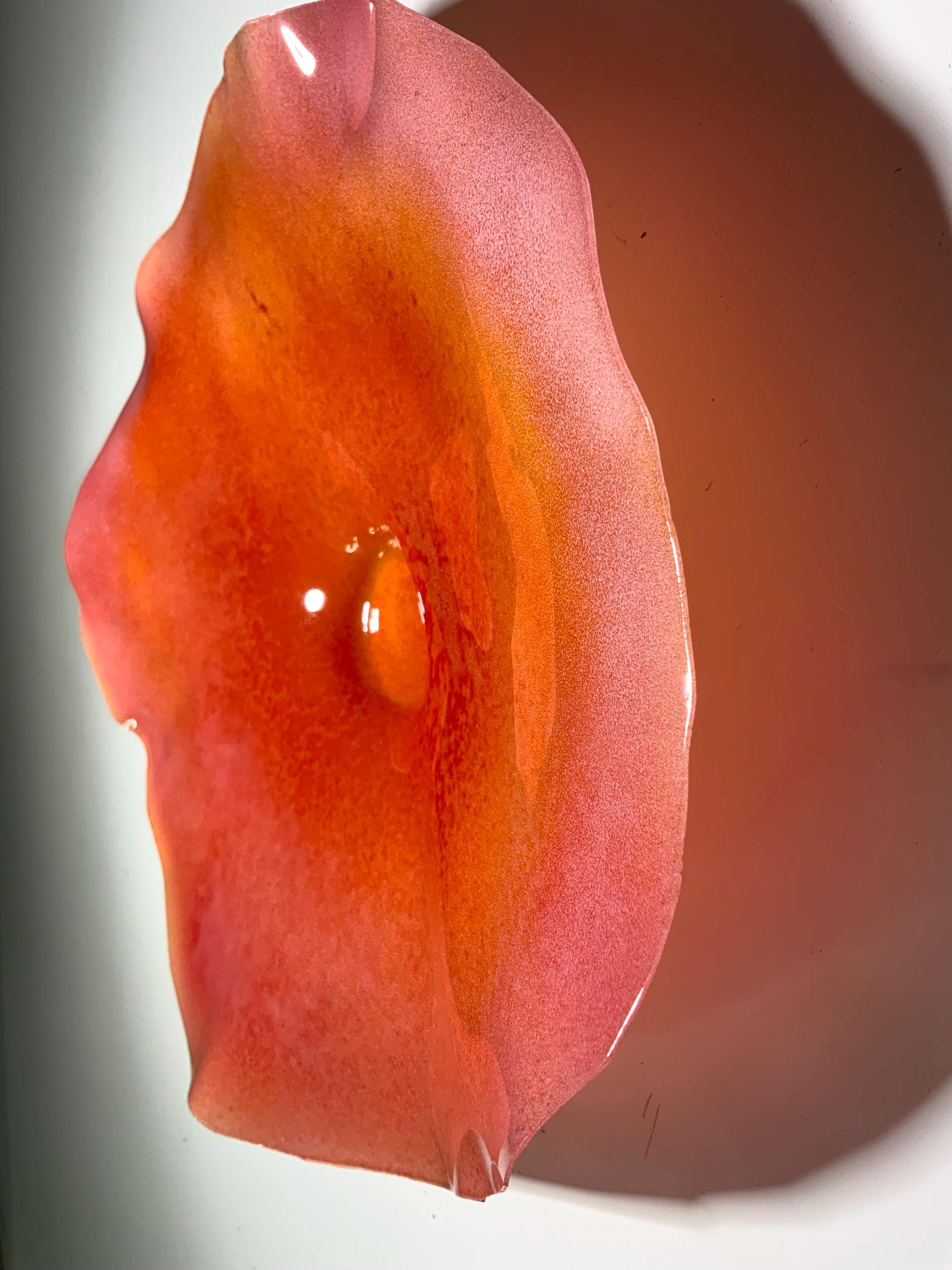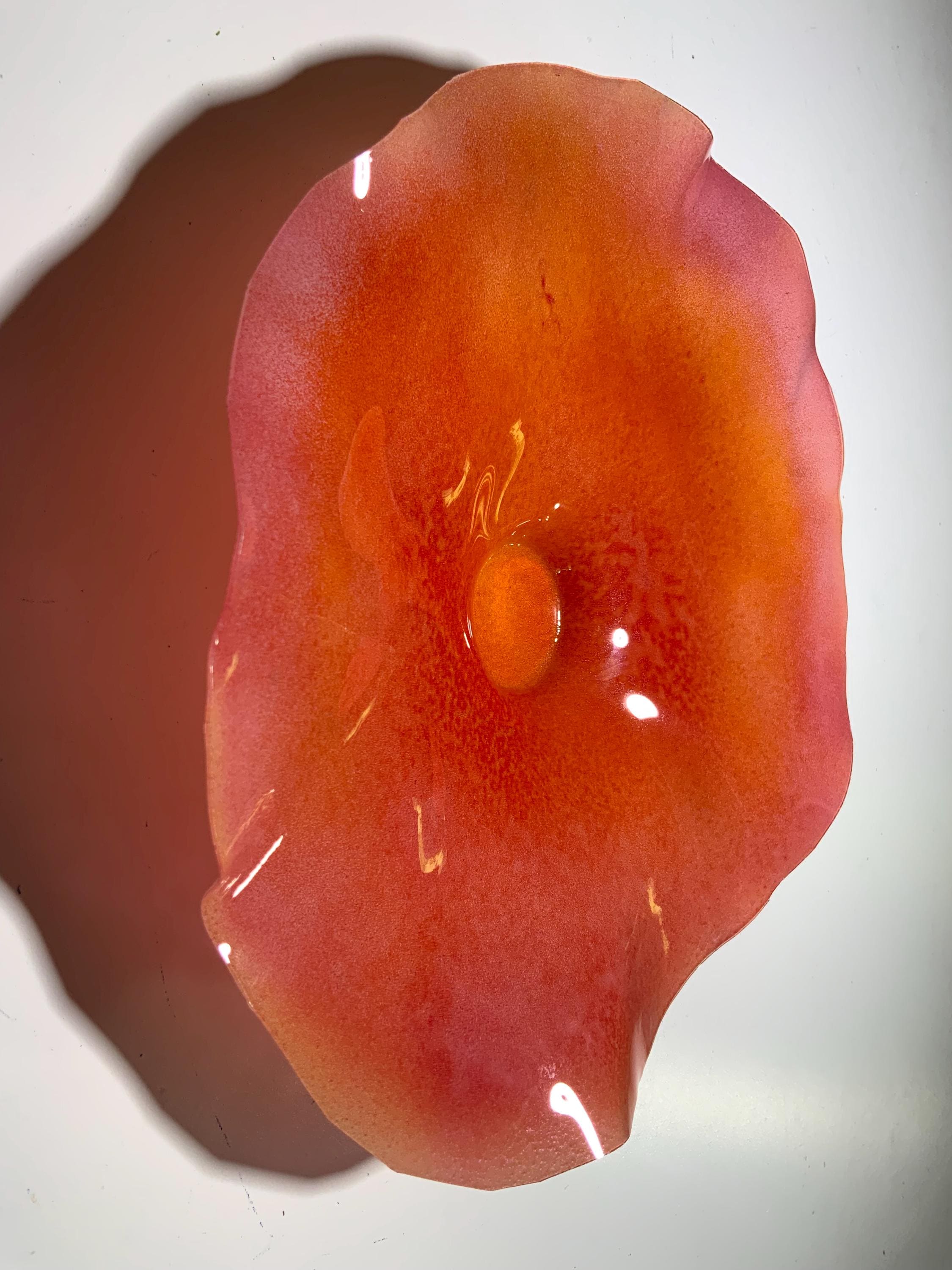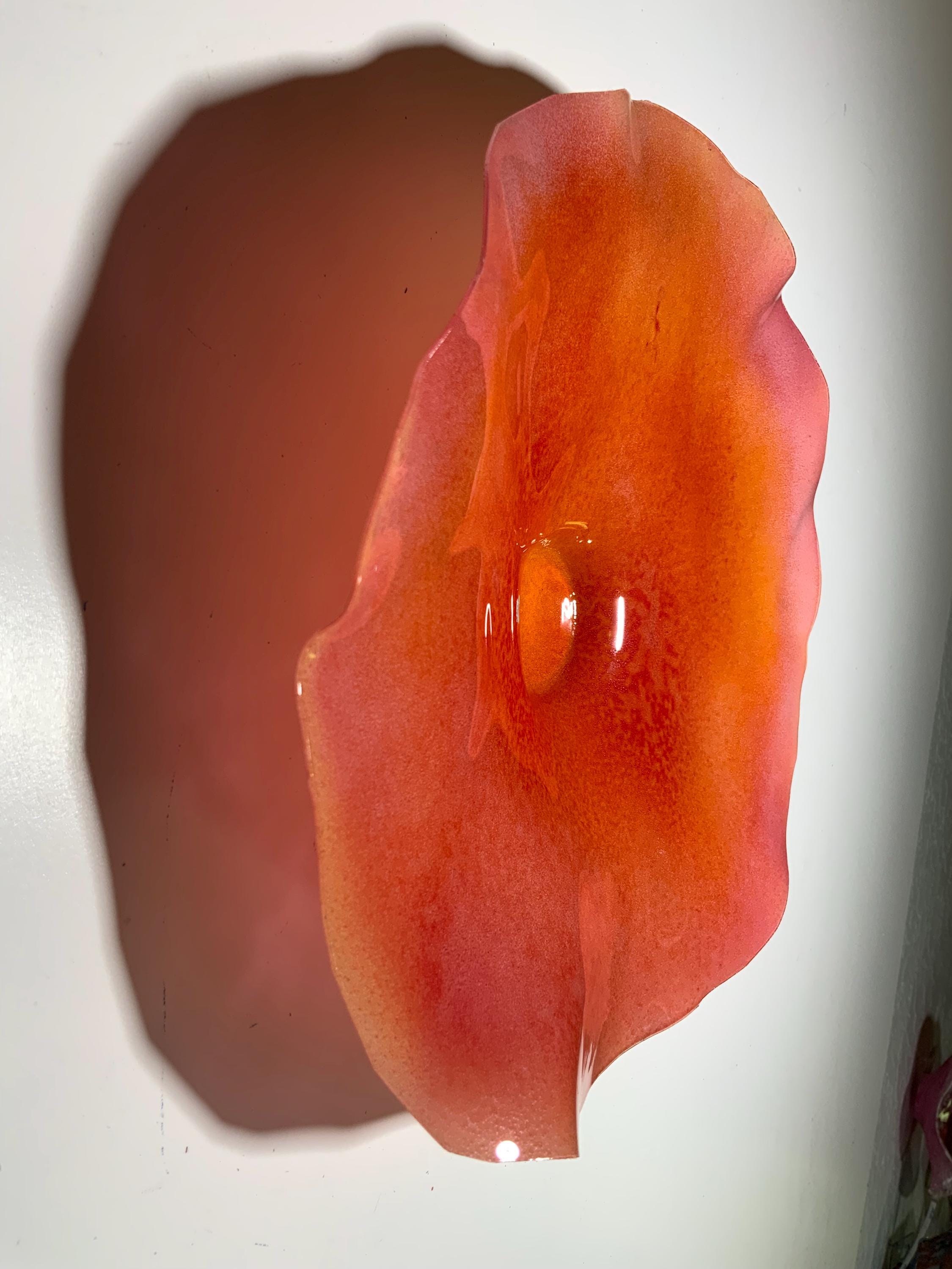 From the wall, they look like glass. The bonuses are that these flowers are light, unbreakable, environmentally friendly, easy to hang, and have no damage to the wall due to drilling for would-be-heavy traditional glass flowers.