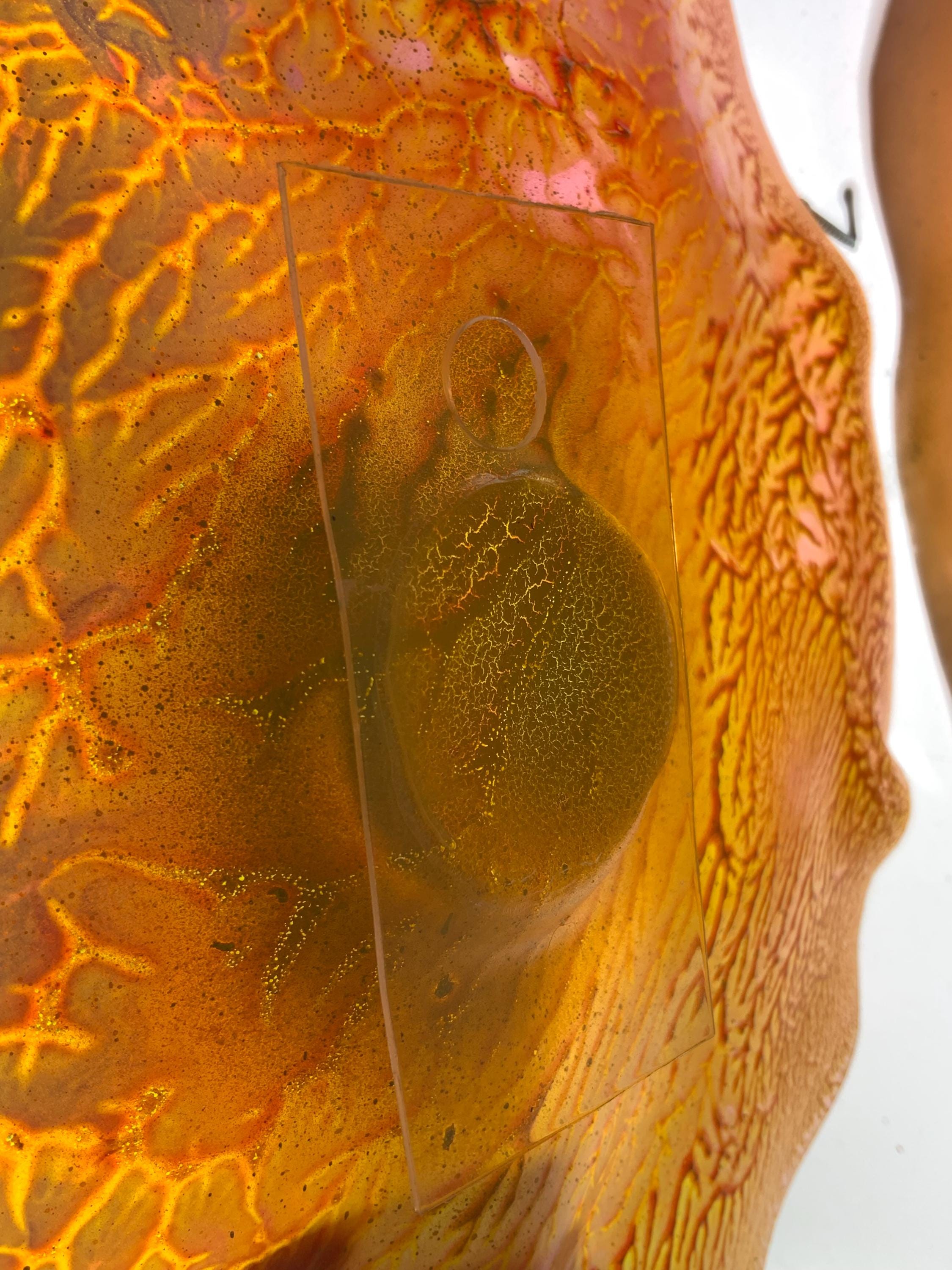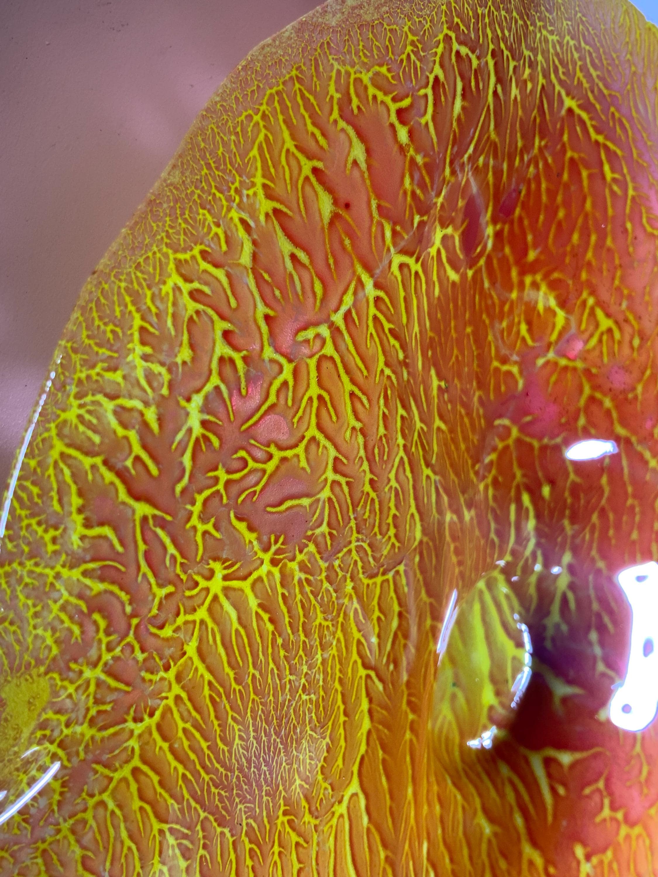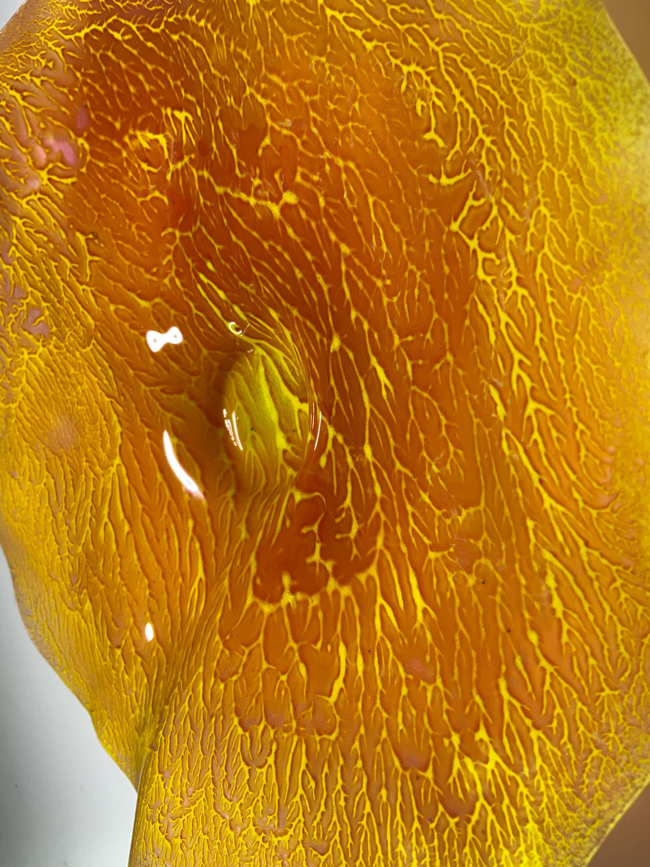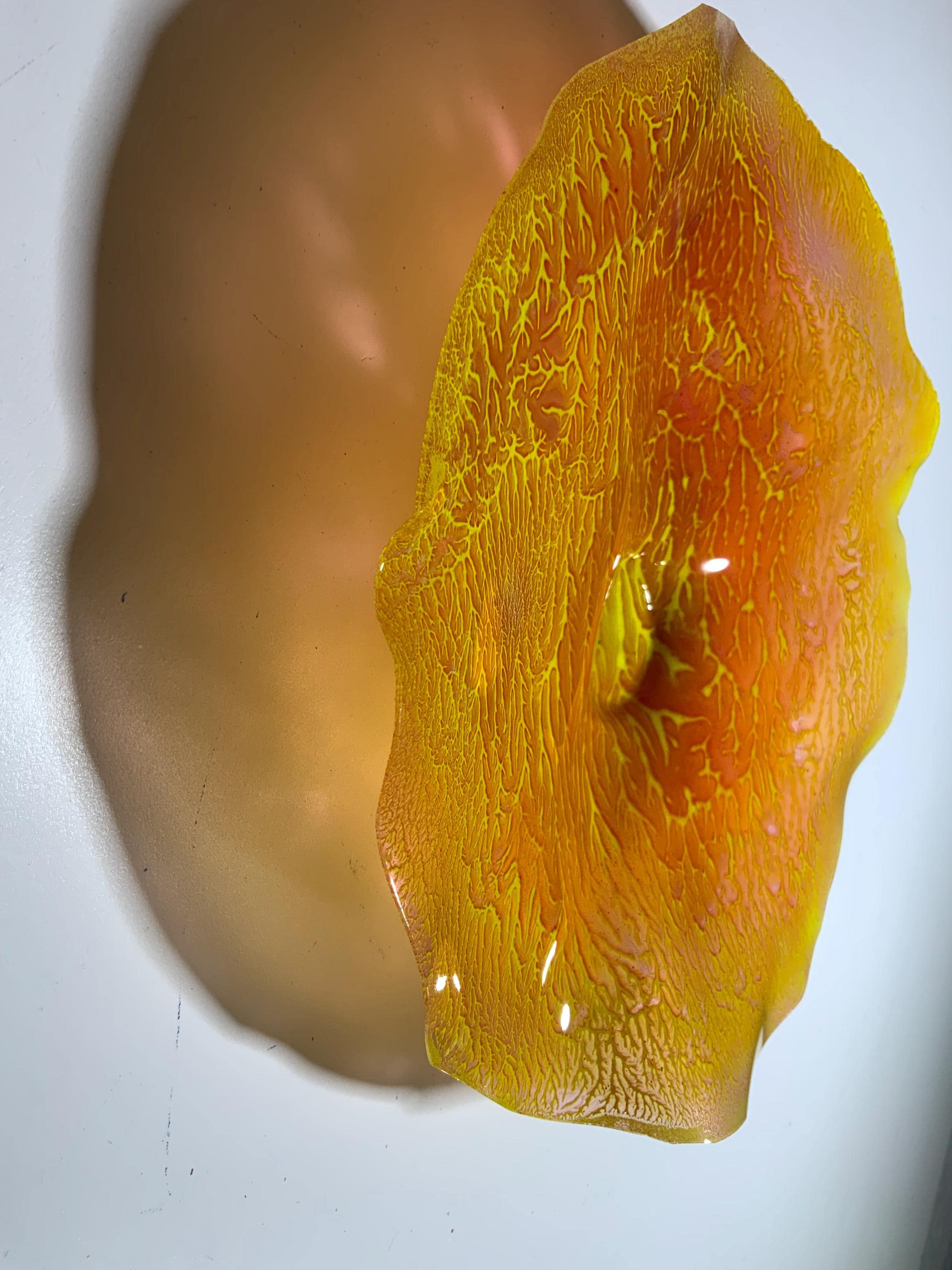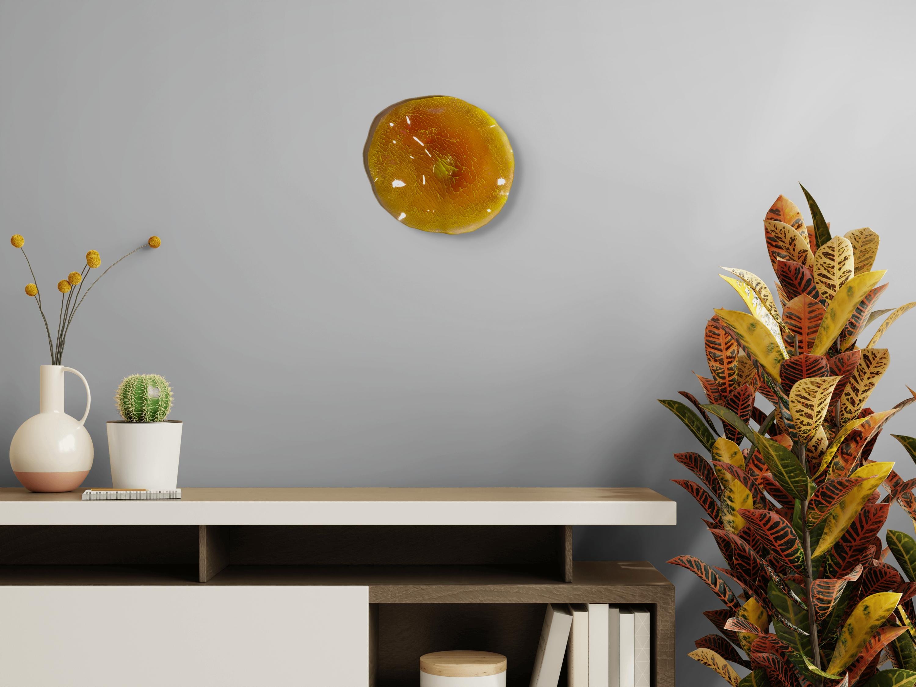 Handmade Recycled Plastic Wall Flower: yellow & orange Ocean Art boho home decor/looks like glass