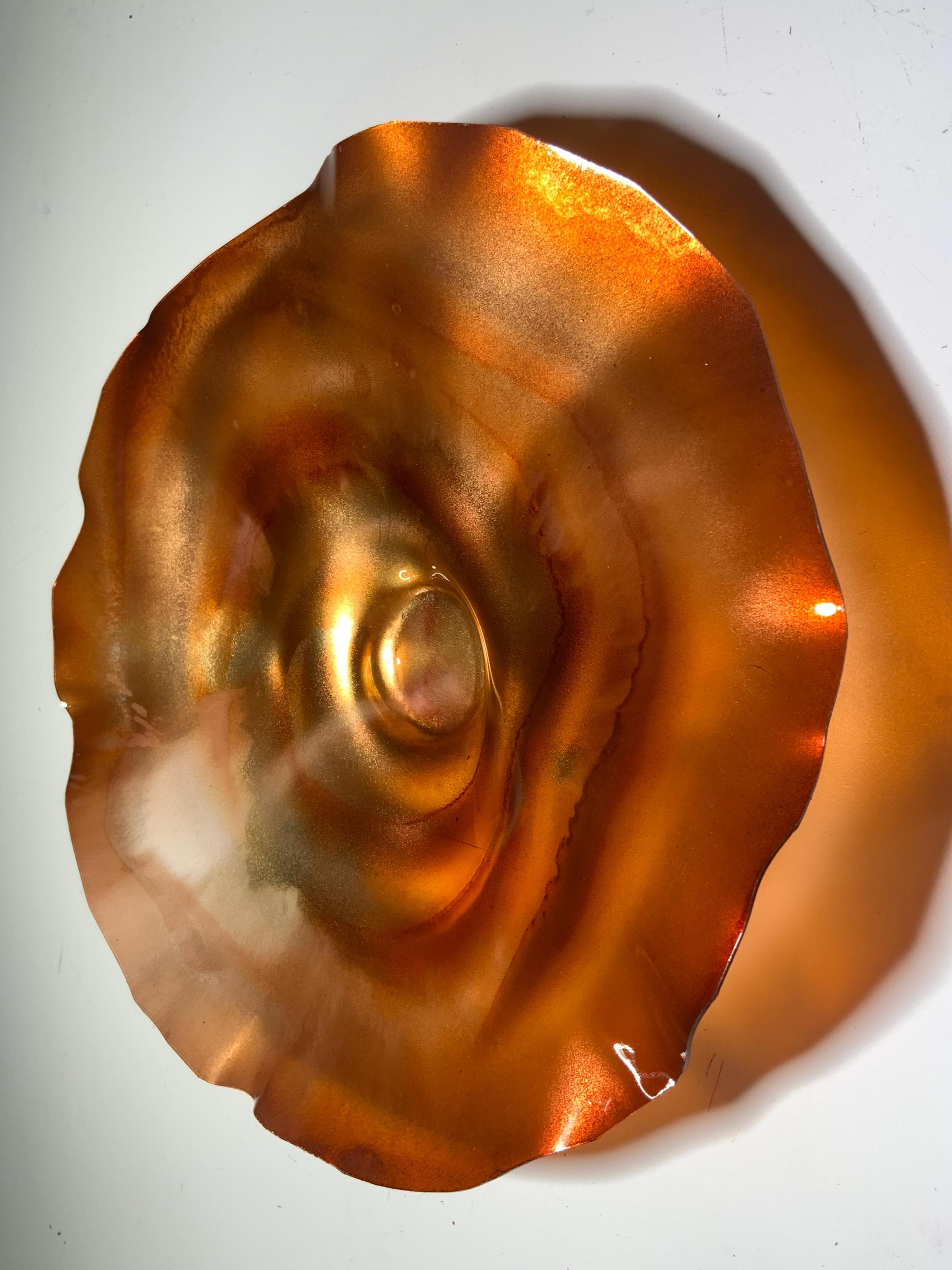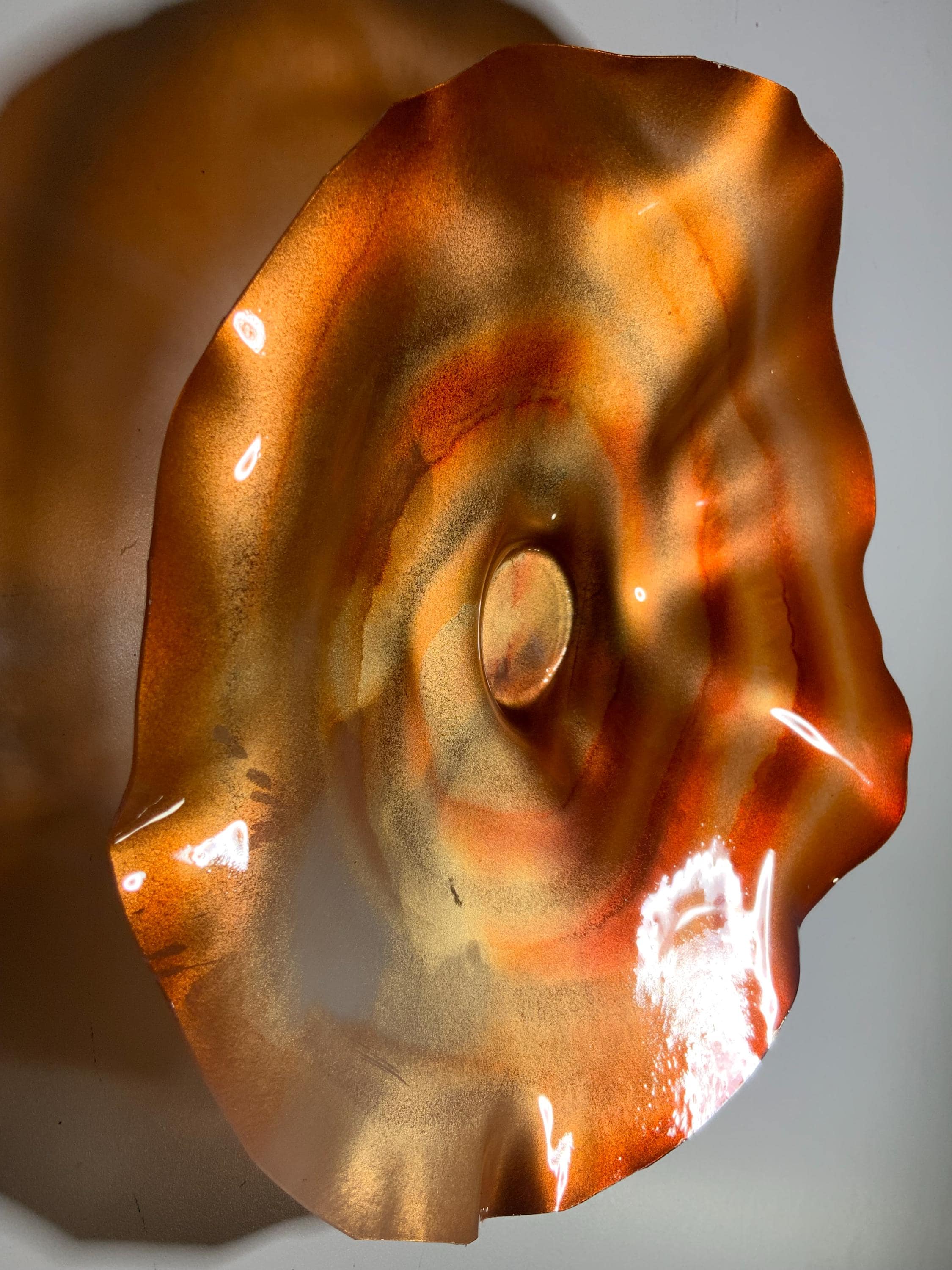 Each flower come with a hanger with a hole in the back for easy hanging. Each piece is light weight and all you will need is a nail or thumb tack to hang it from. If you can hang a picture, you can hang these plates. Each order comes with a set of hanging instructions. For outdoor hanging, please request our free outdoor hardware. For ceiling hanging please request velcro.