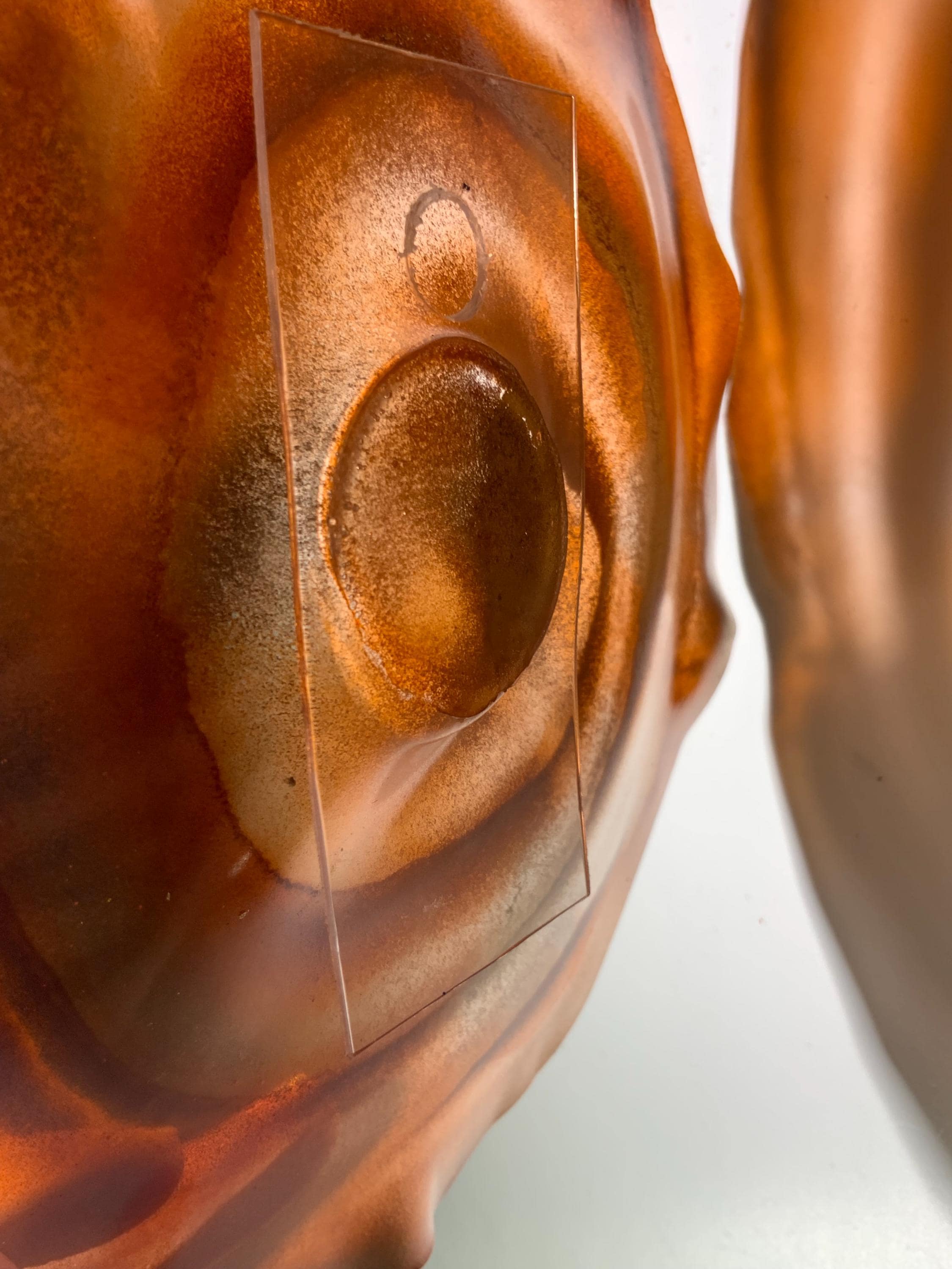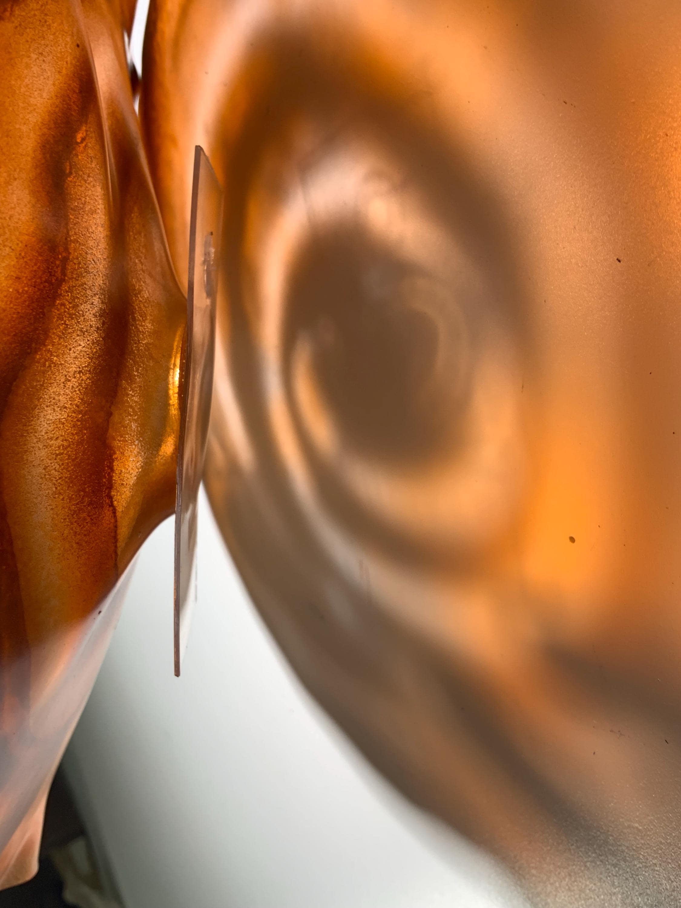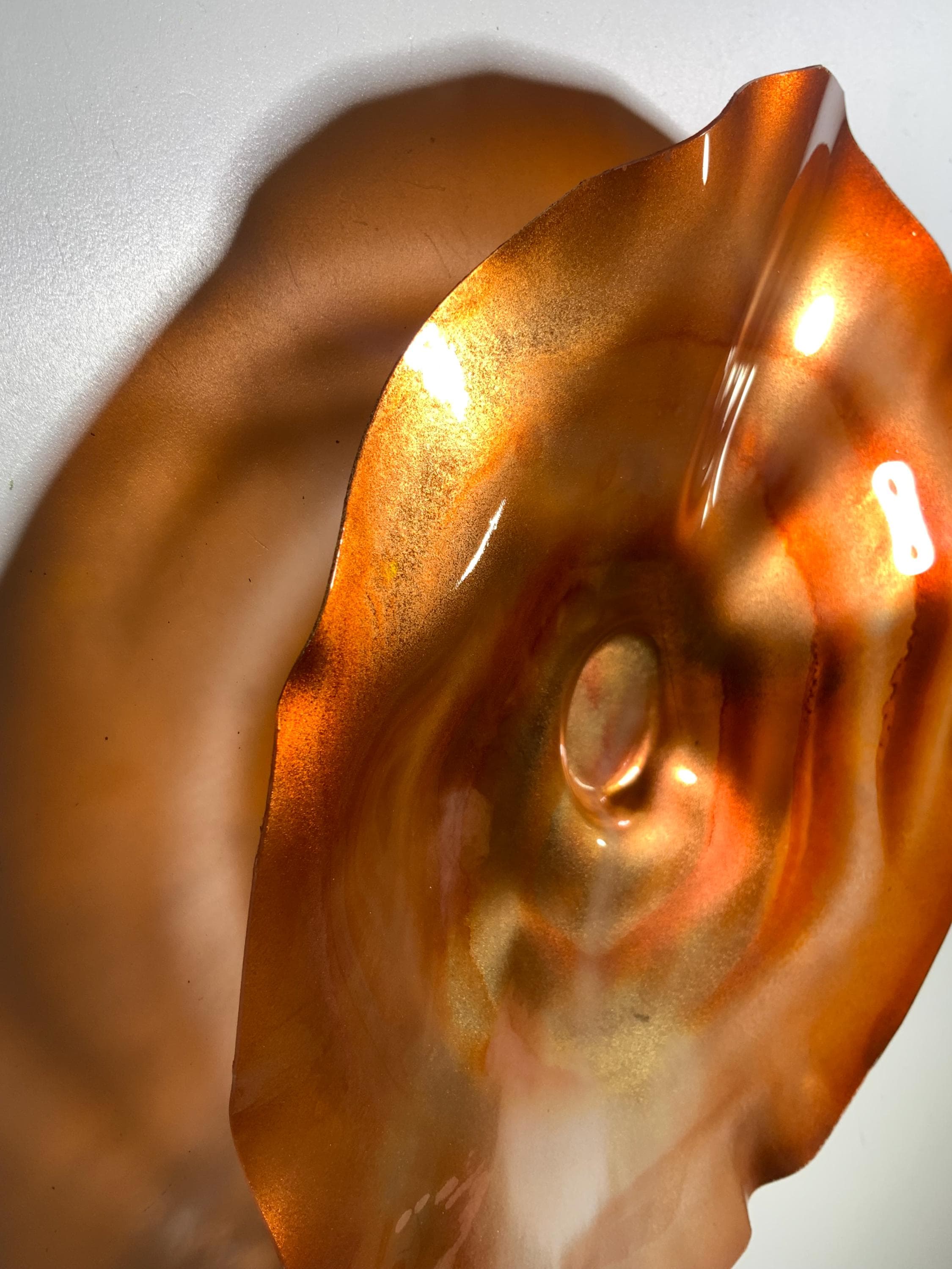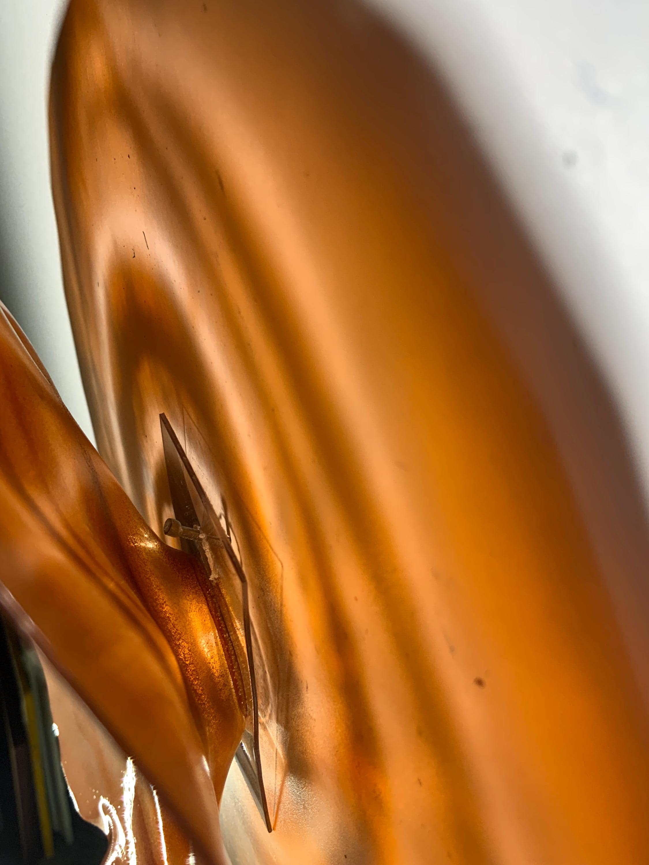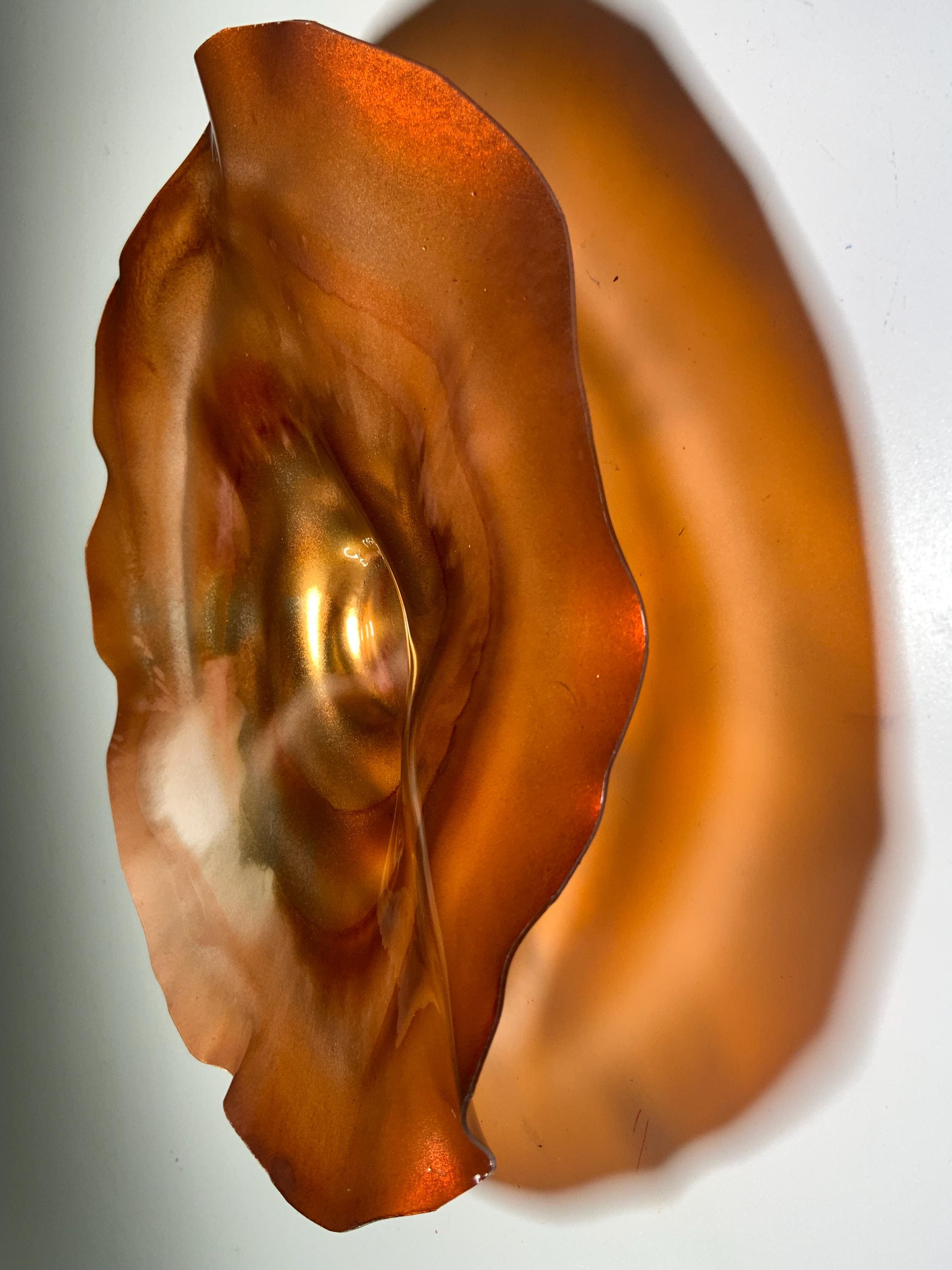 From the wall, they look like glass. The bonuses are that these flowers are light, unbreakable, environmentally friendly, easy to hang, and have no damage to the wall due to drilling for would-be-heavy traditional glass flowers.