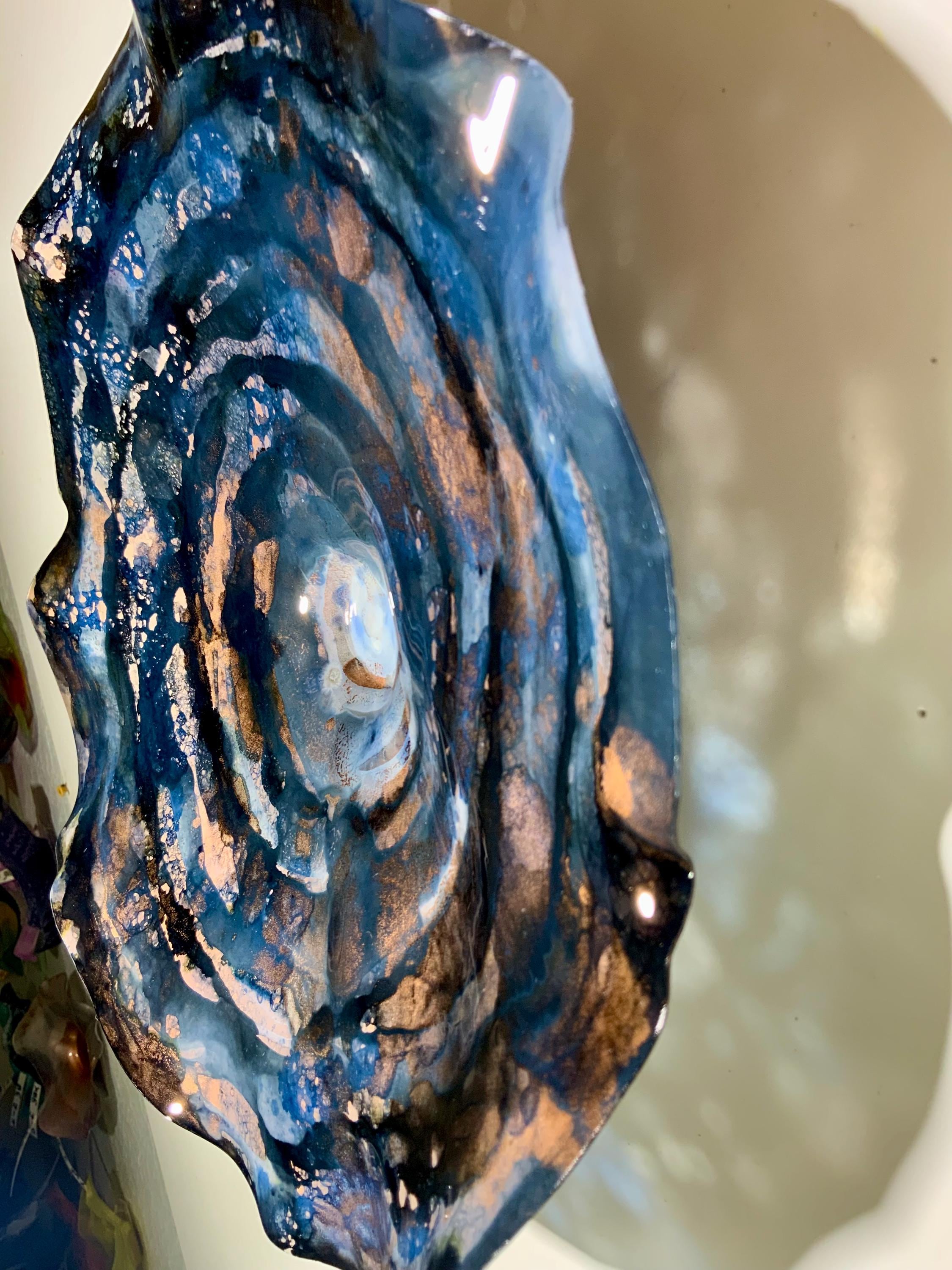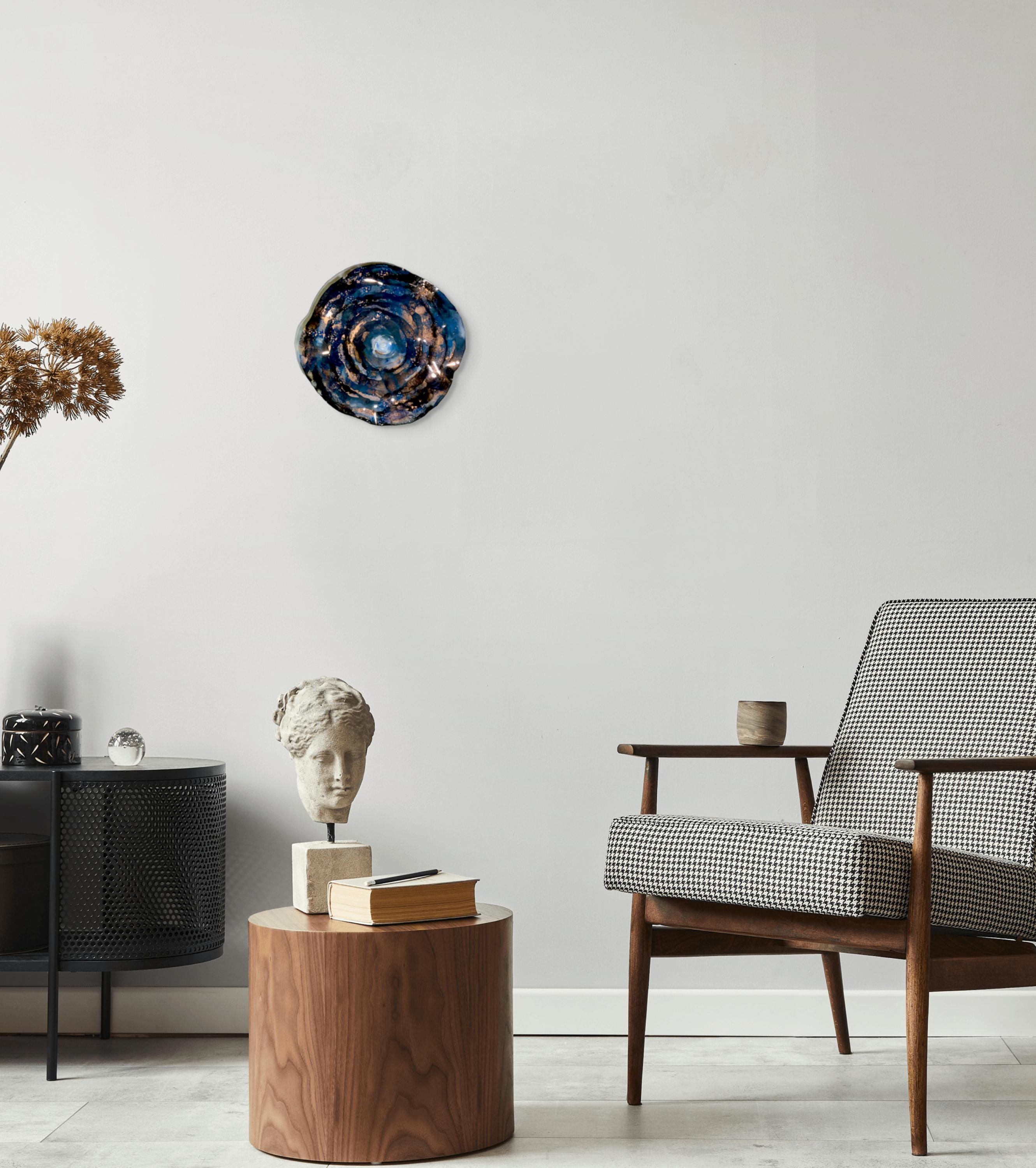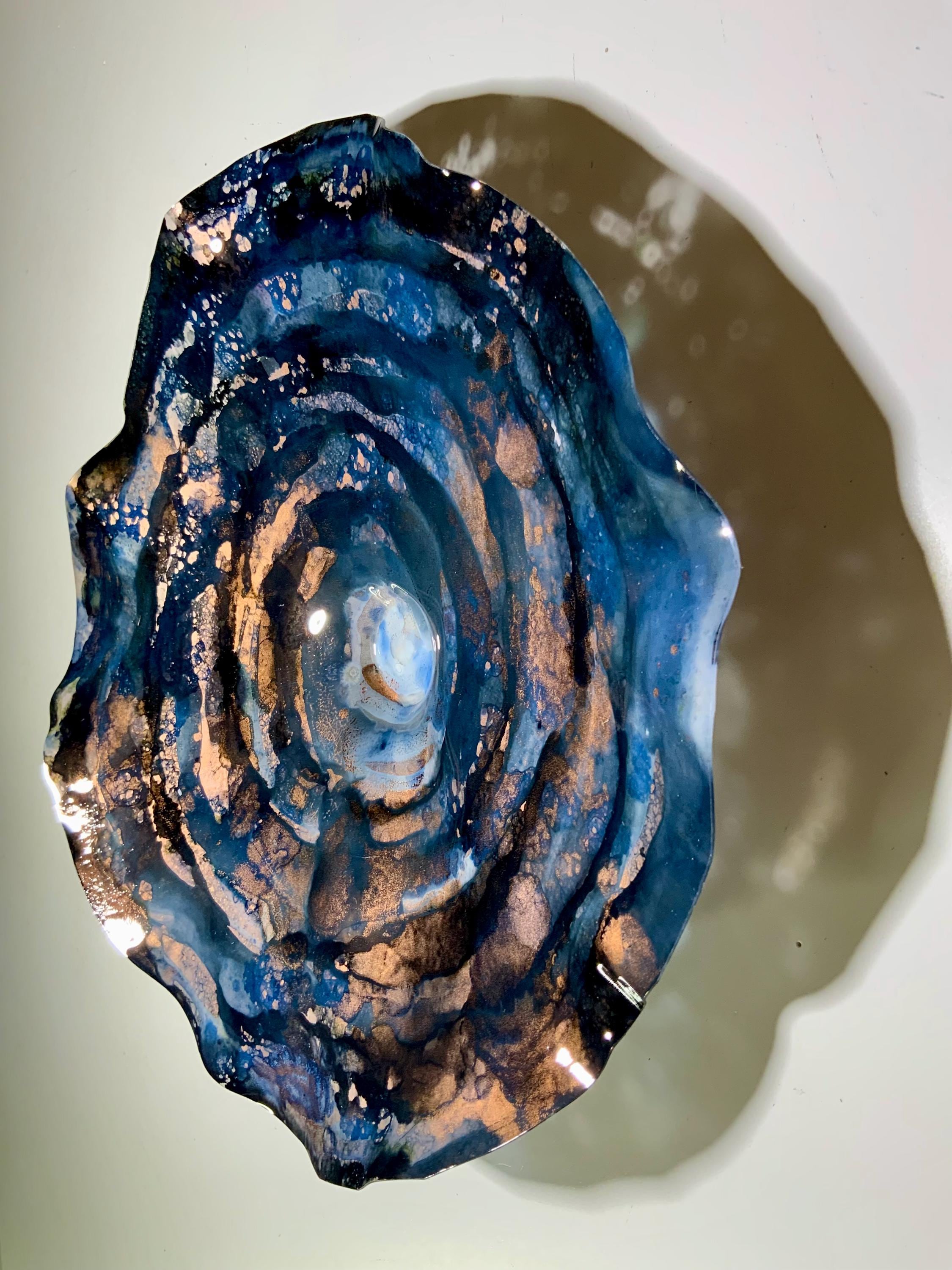 Original creative reuse Wall flower home decor art 13” black & copper handmade Todd Lynd art eco friendly plastic/looks like glass
