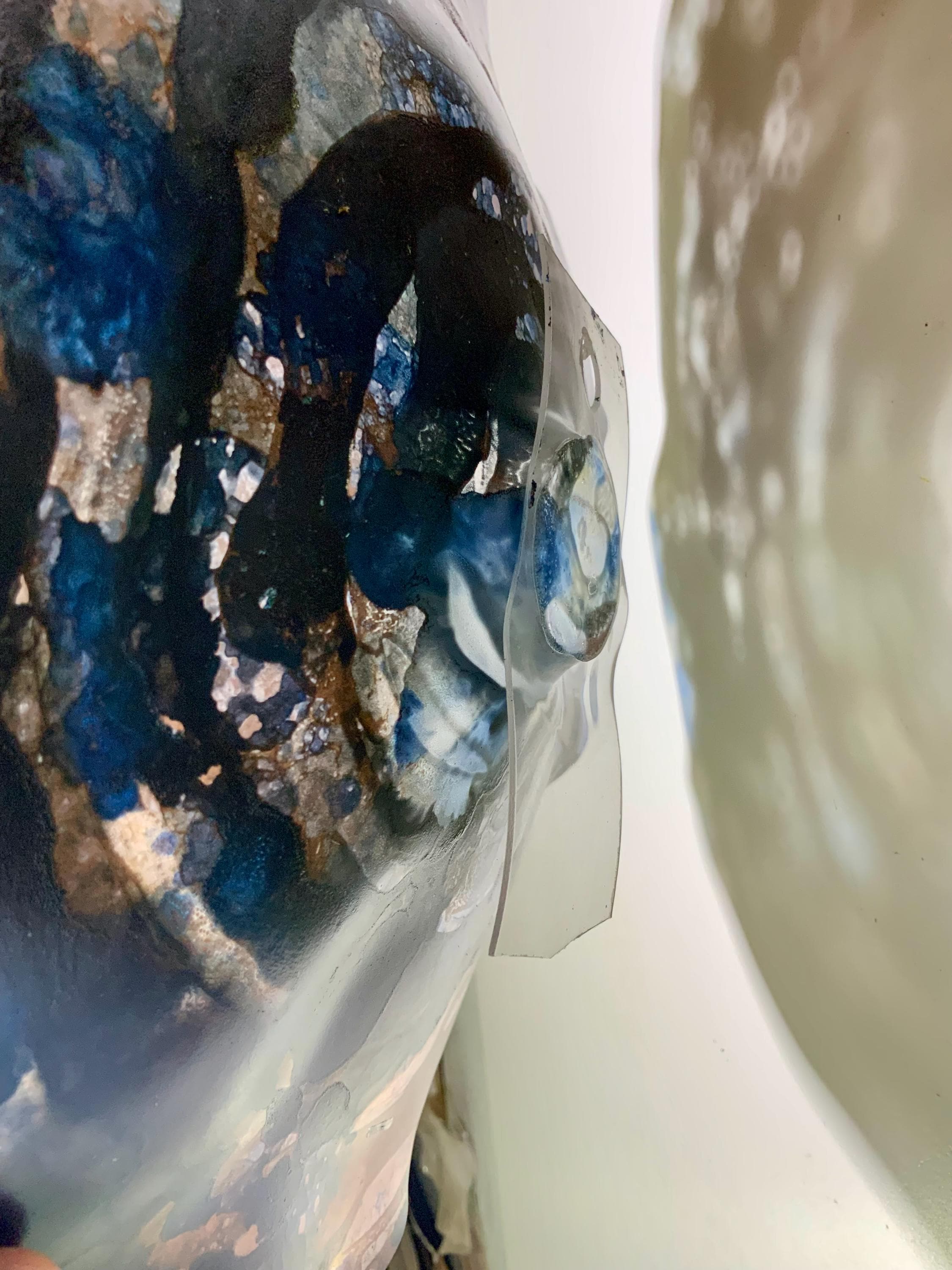 Each collectible piece is unique, no two are alike. This permanent, colorful, eye catching art looks and feels like glass. It shimmers in the light resembling water. They are very DURABLE AND LIGHTWEIGHT. This flower is easy to hang all weather and UV resistant. Great for indoor or outdoor decorating.