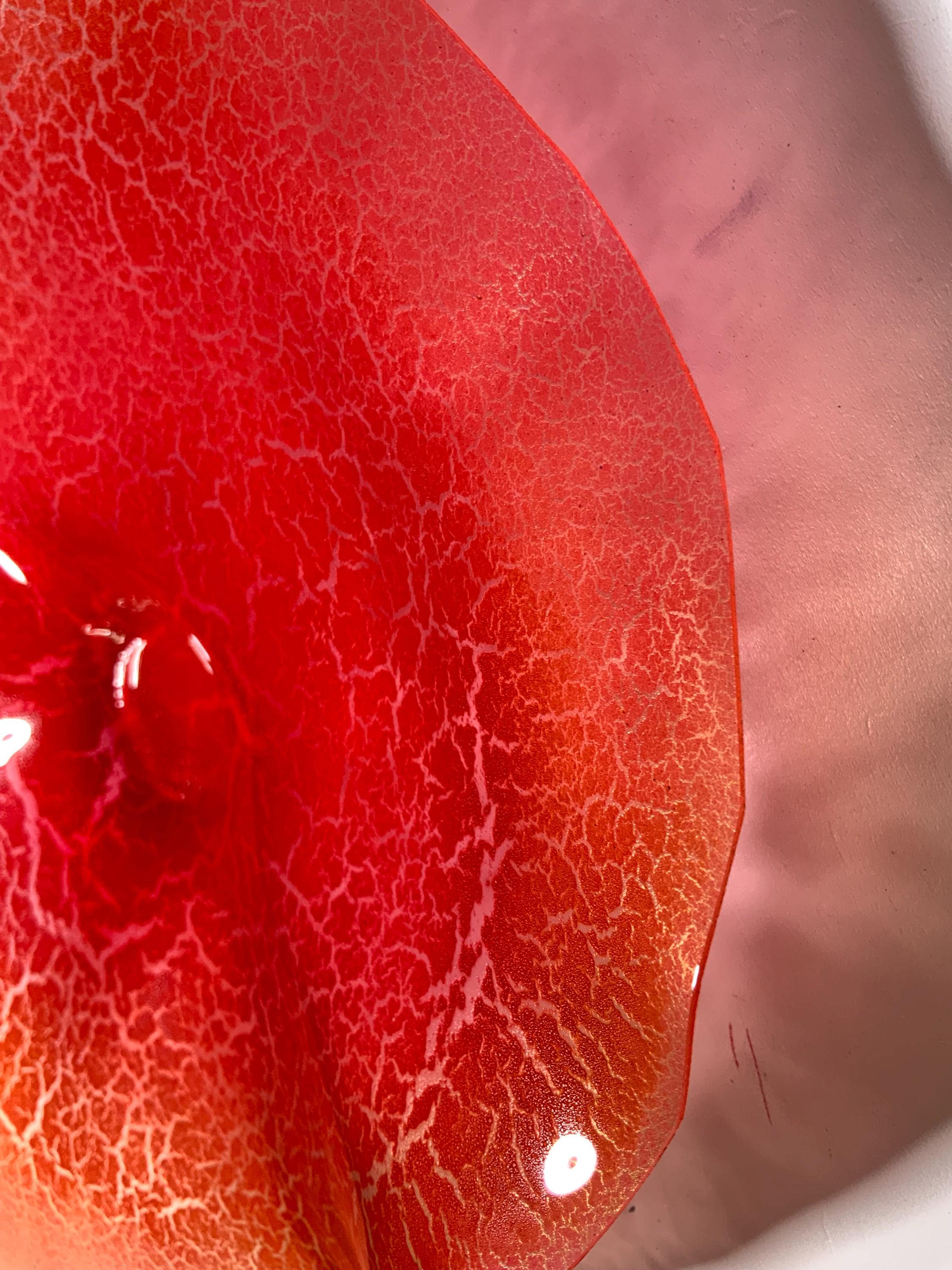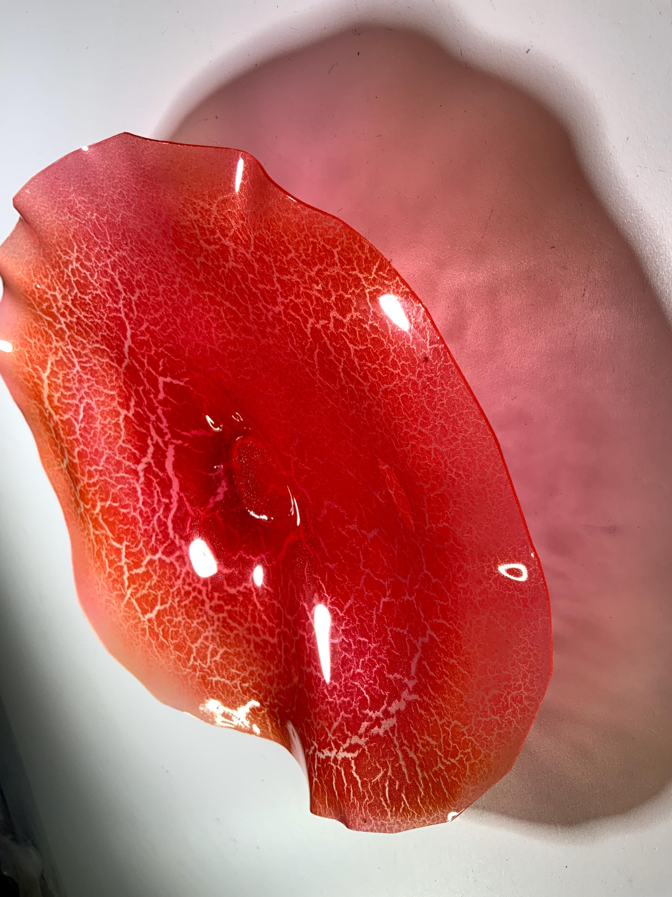 Handmade recycled plastic home decor Small Wall flower 9” pink funky wall hanging/looks like glass/Todd Lynd art/patio decor