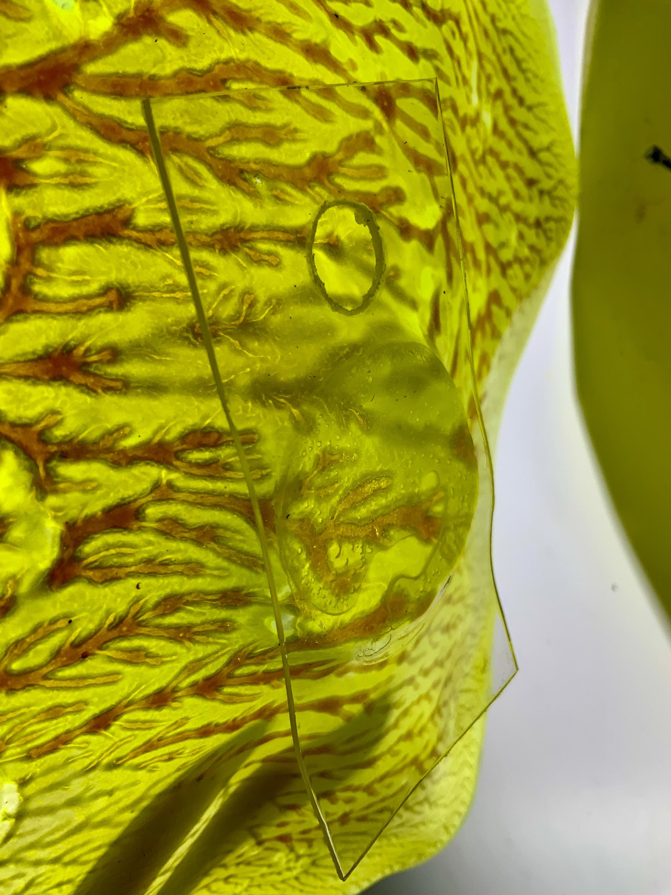 From the wall, they look like glass. The bonuses are that these flowers are light, unbreakable, environmentally friendly, easy to hang, and have no damage to the wall due to drilling for would-be-heavy traditional glass flowers.