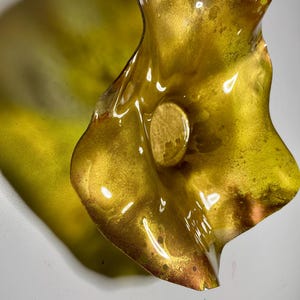 Each collectible piece is unique, no two are alike. This permanent, colorful, eye catching art looks and feels like glass. It shimmers in the light resembling water. They are very DURABLE AND LIGHTWEIGHT. These flowers are easy to hang ,are all weather and UV resistant. Great for indoor or outdoor decorating.