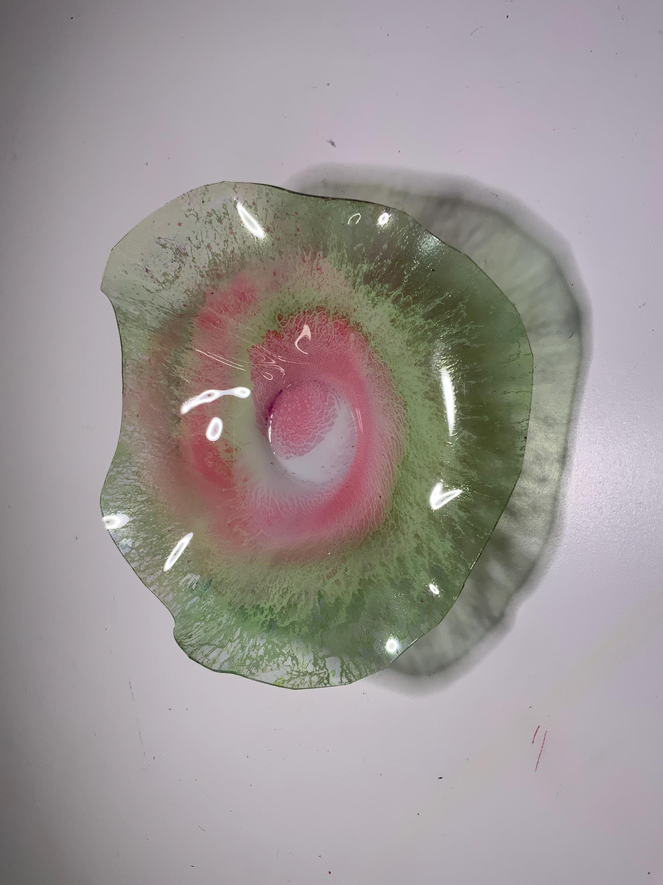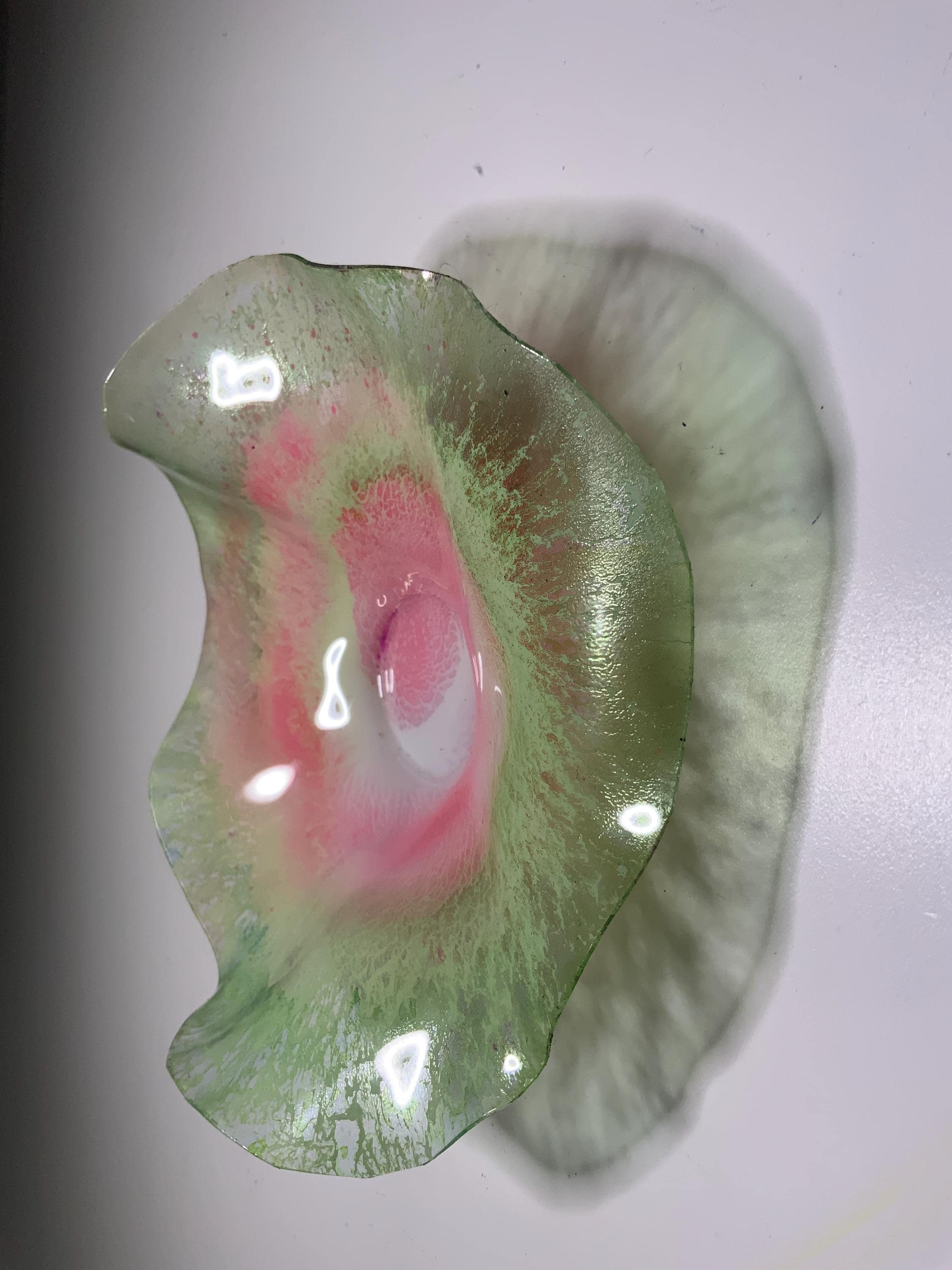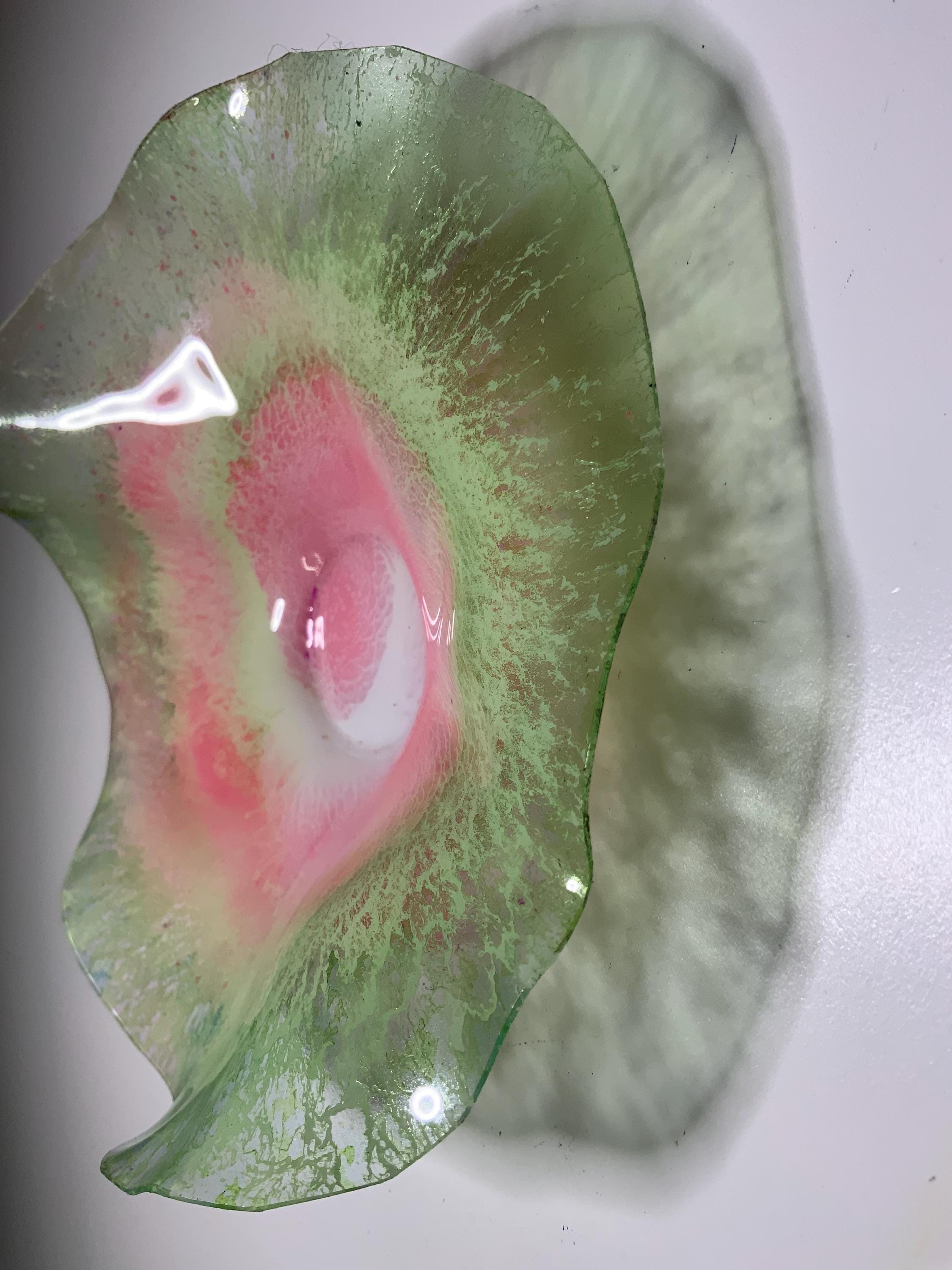 Extra Small Wall flower Sculpture original Coralreeflections 5” green/pink/white handmade eco-friendly plastic/home decor/looks like glass