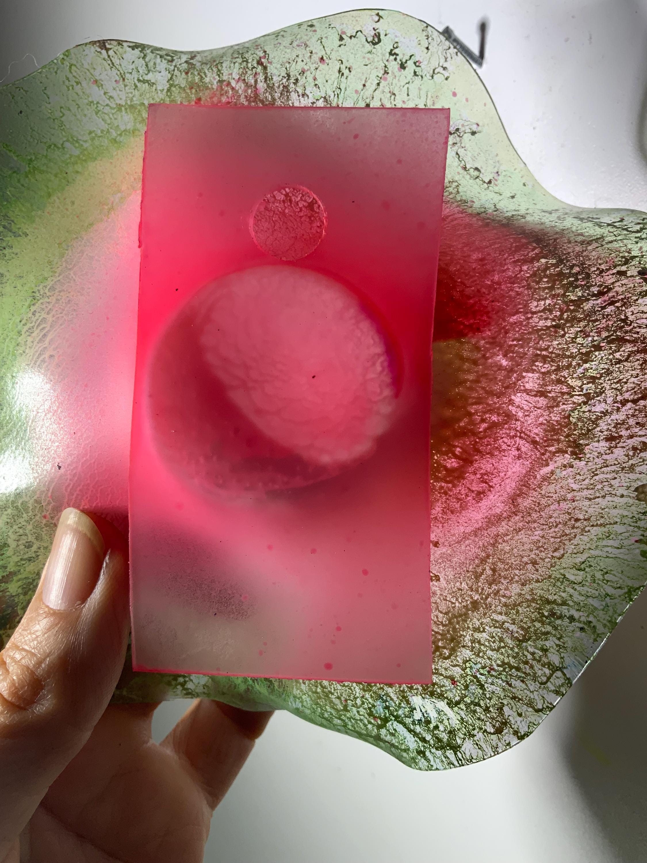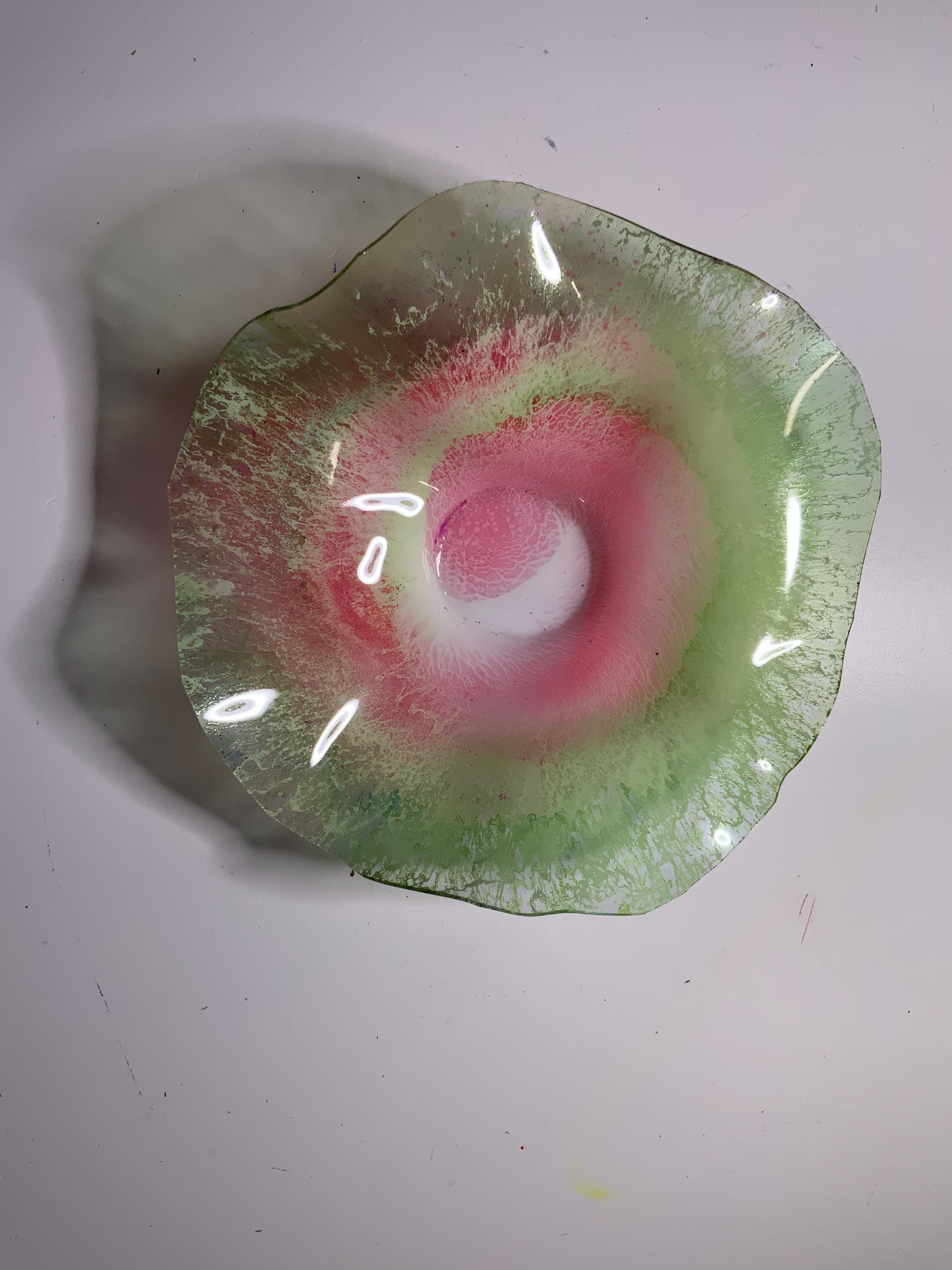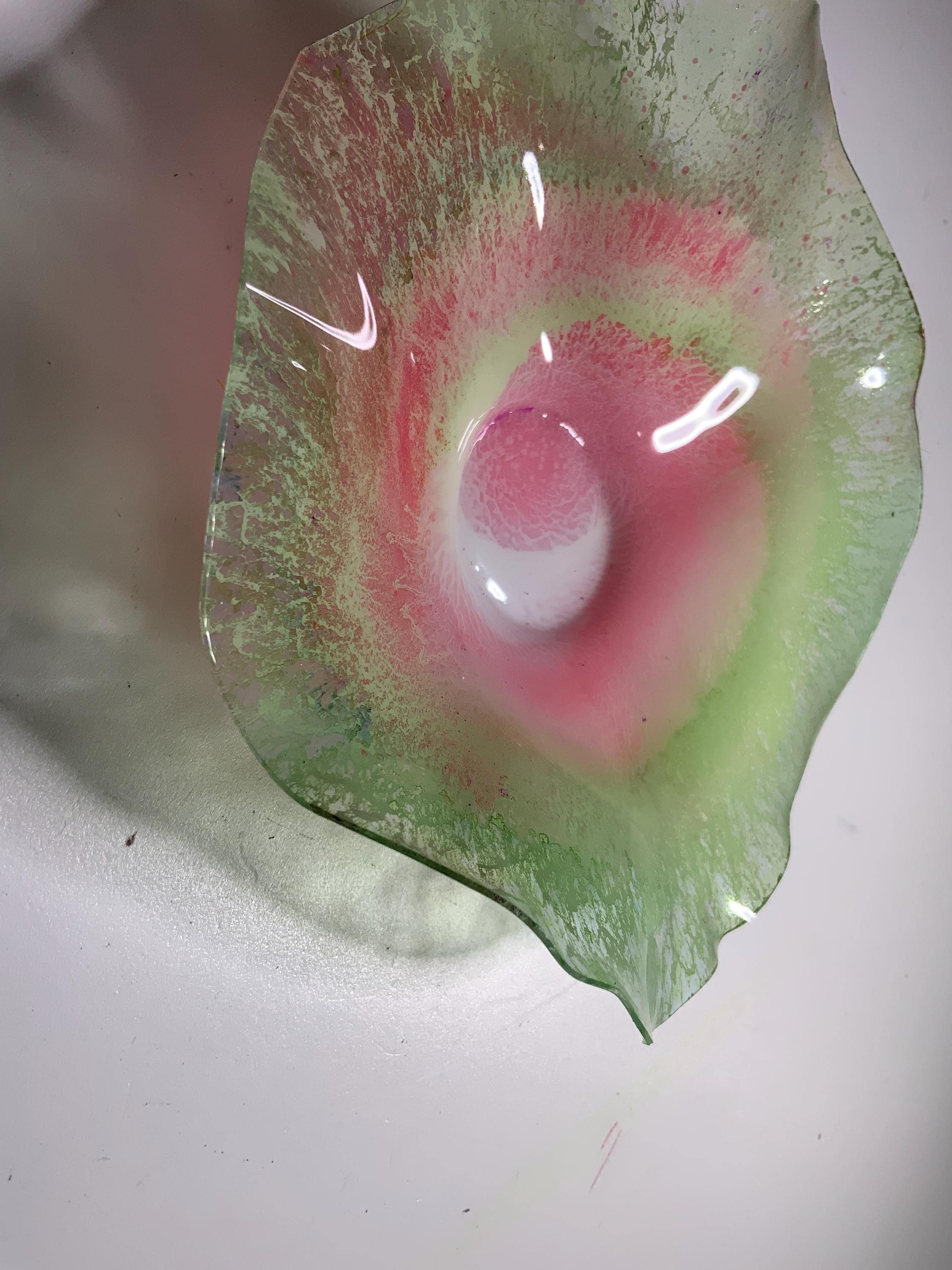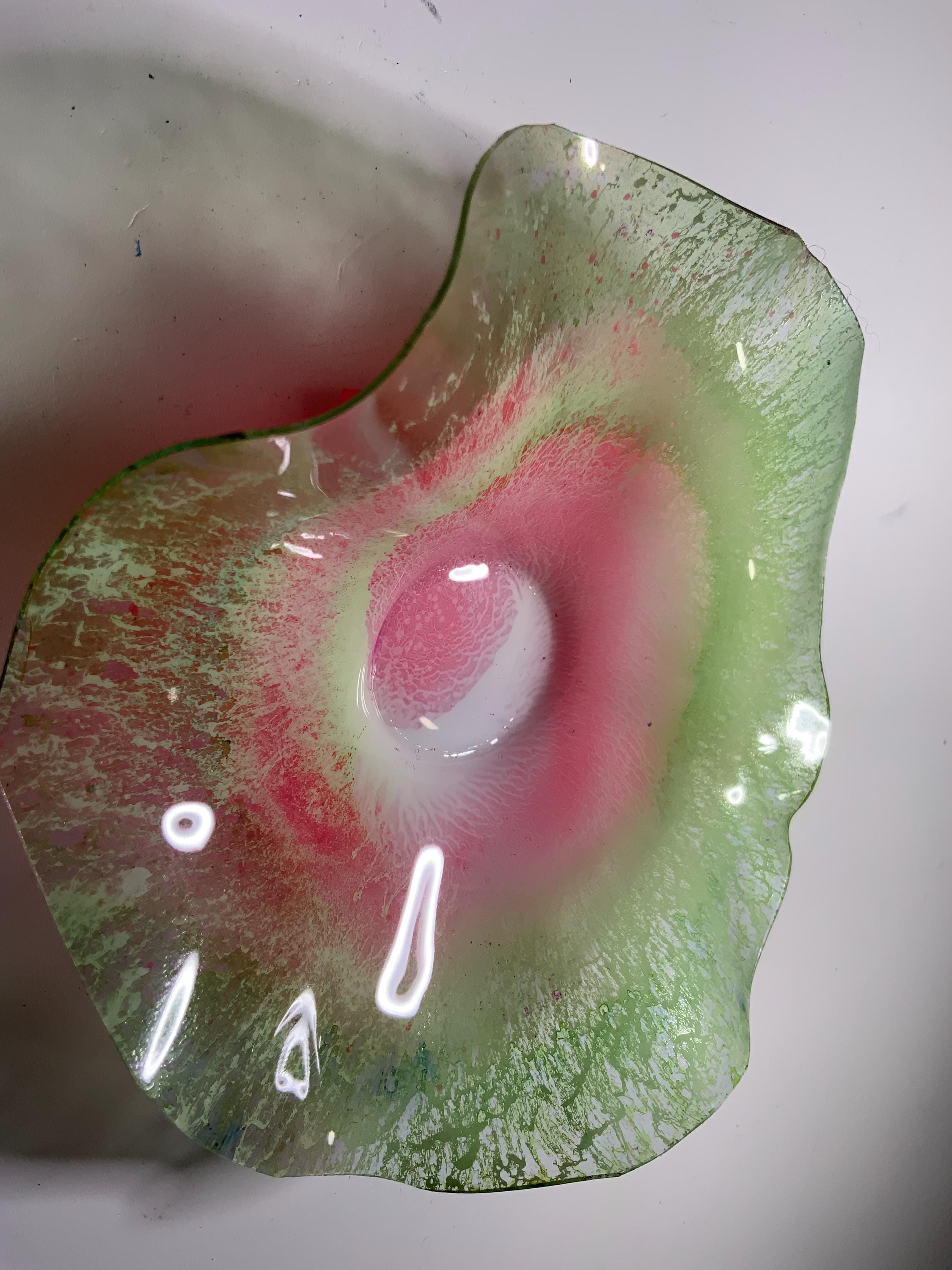 Extra Small Wall flower Sculpture original Coralreeflections 5” green/pink/white handmade eco-friendly plastic/home decor/looks like glass