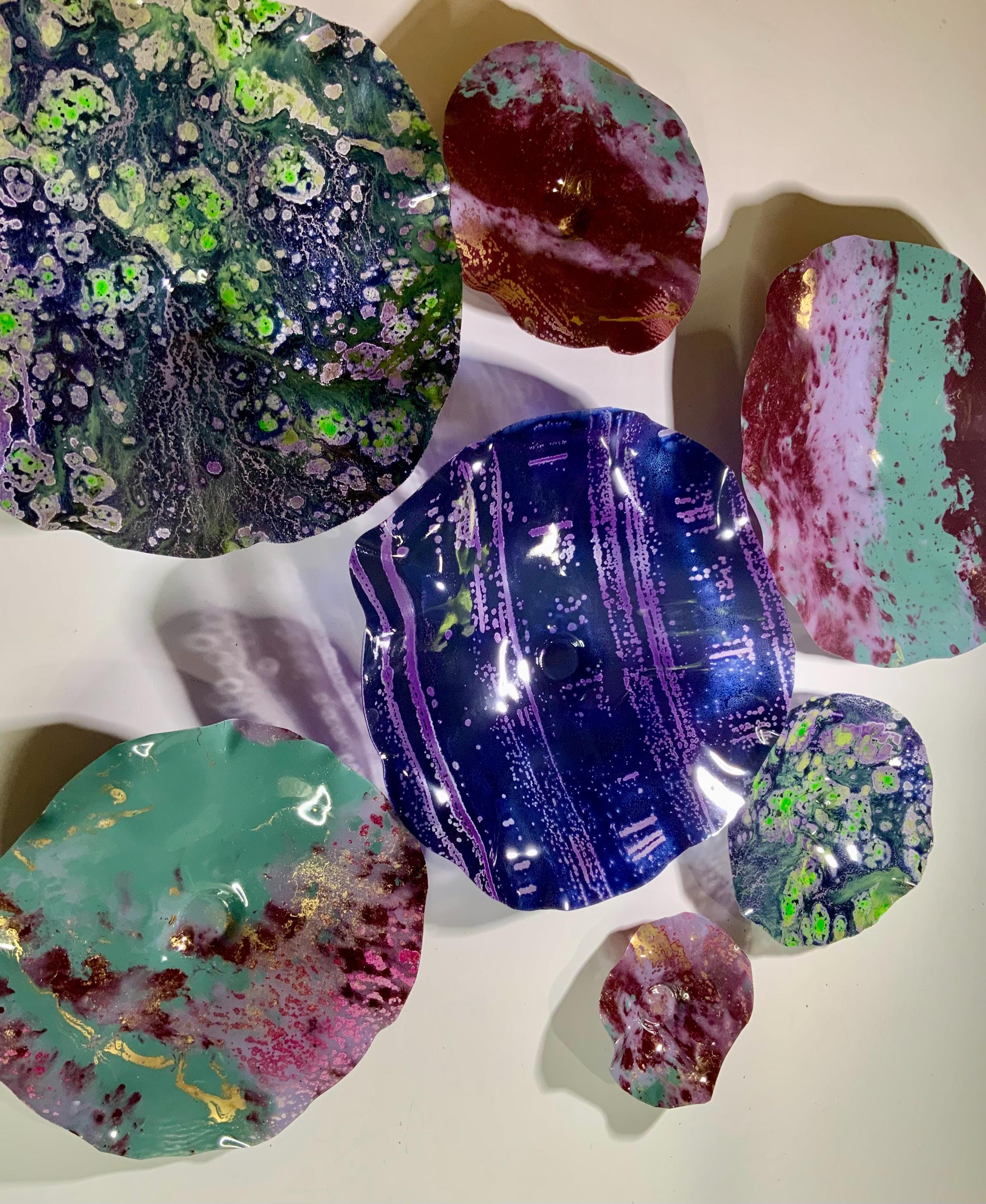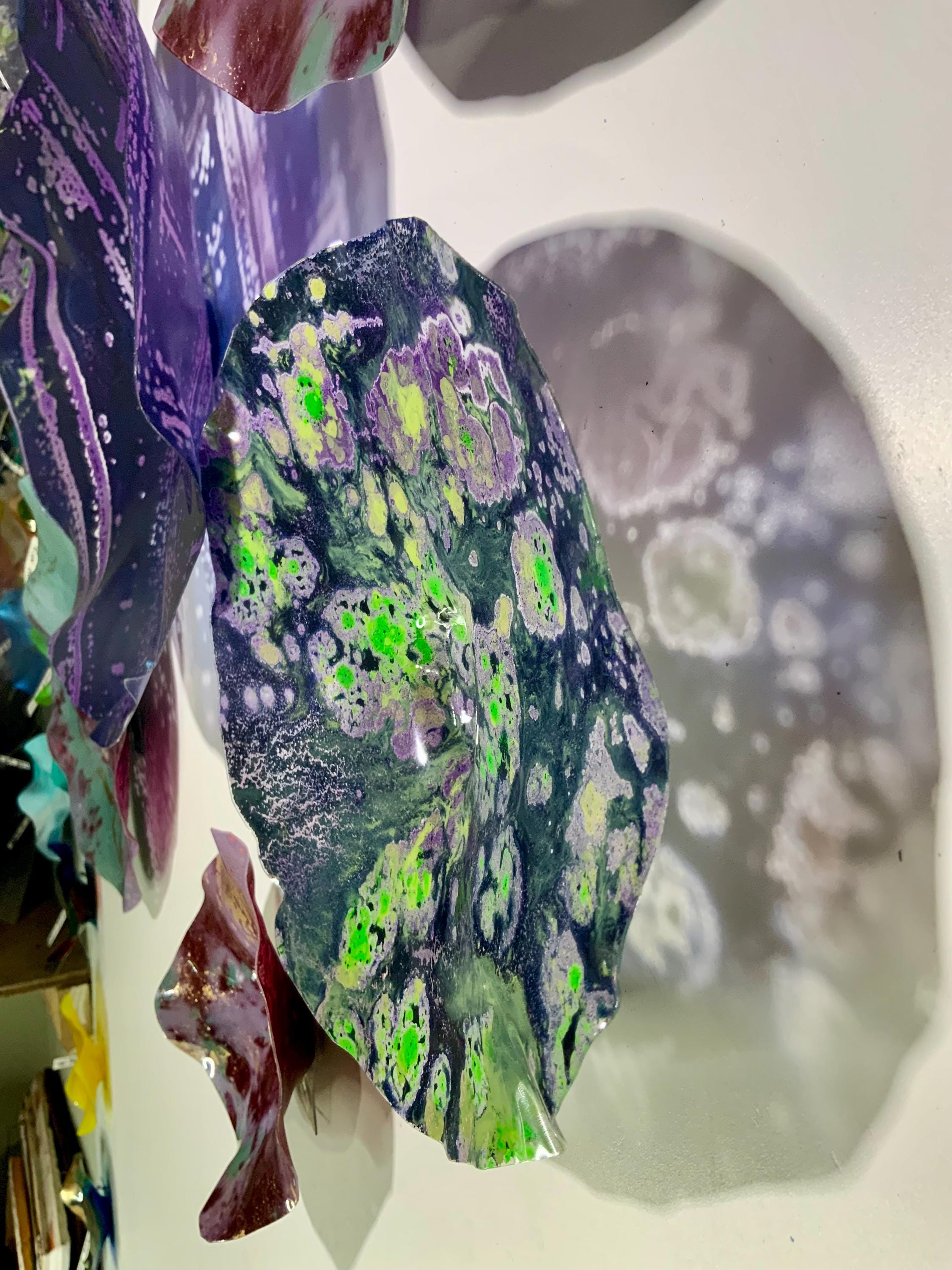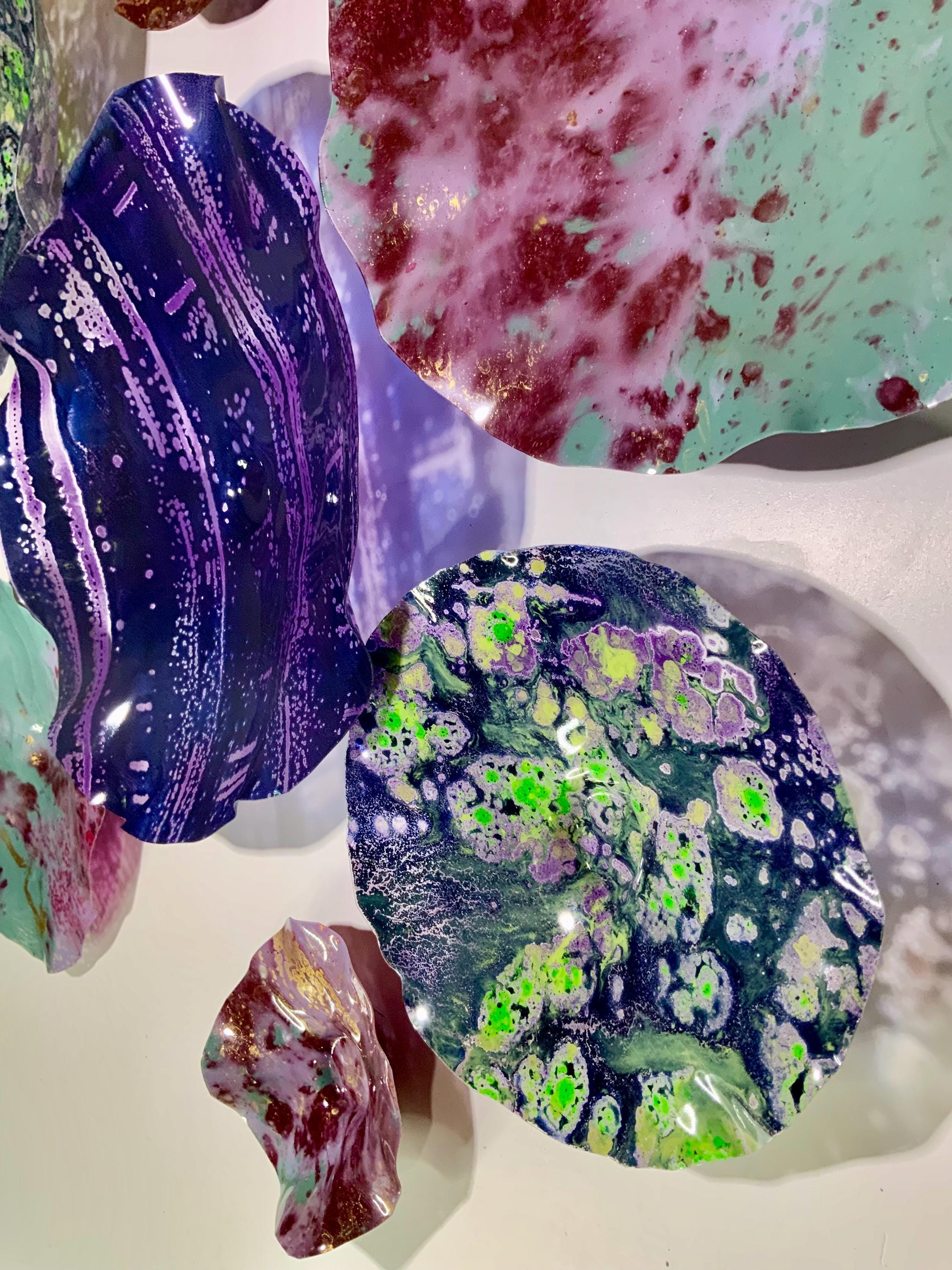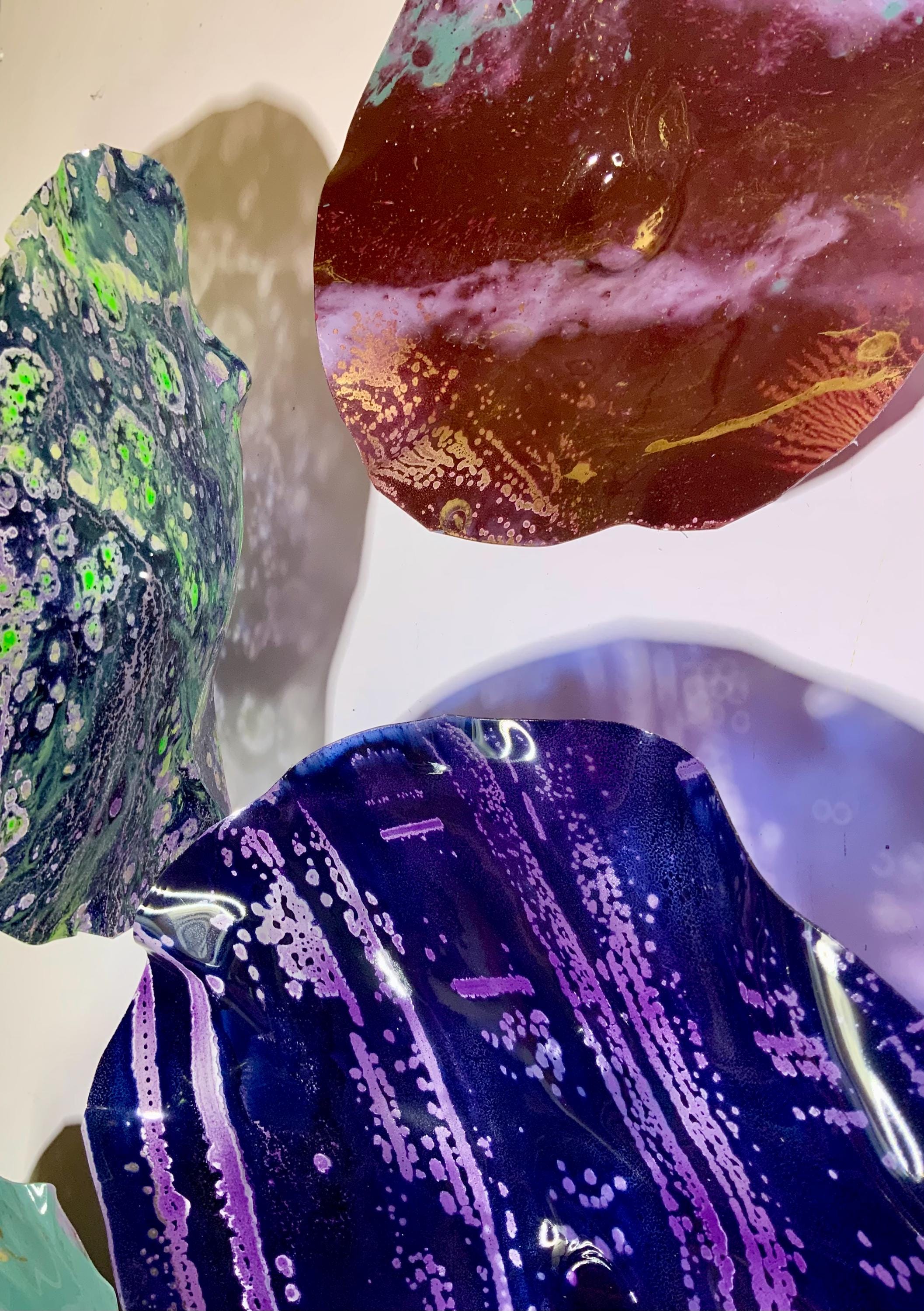 Our wall flowers are made from sustainable recycled PET as in a water bottle. Each piece contains at least 50% recycled polyethylene terphalate (rPET)