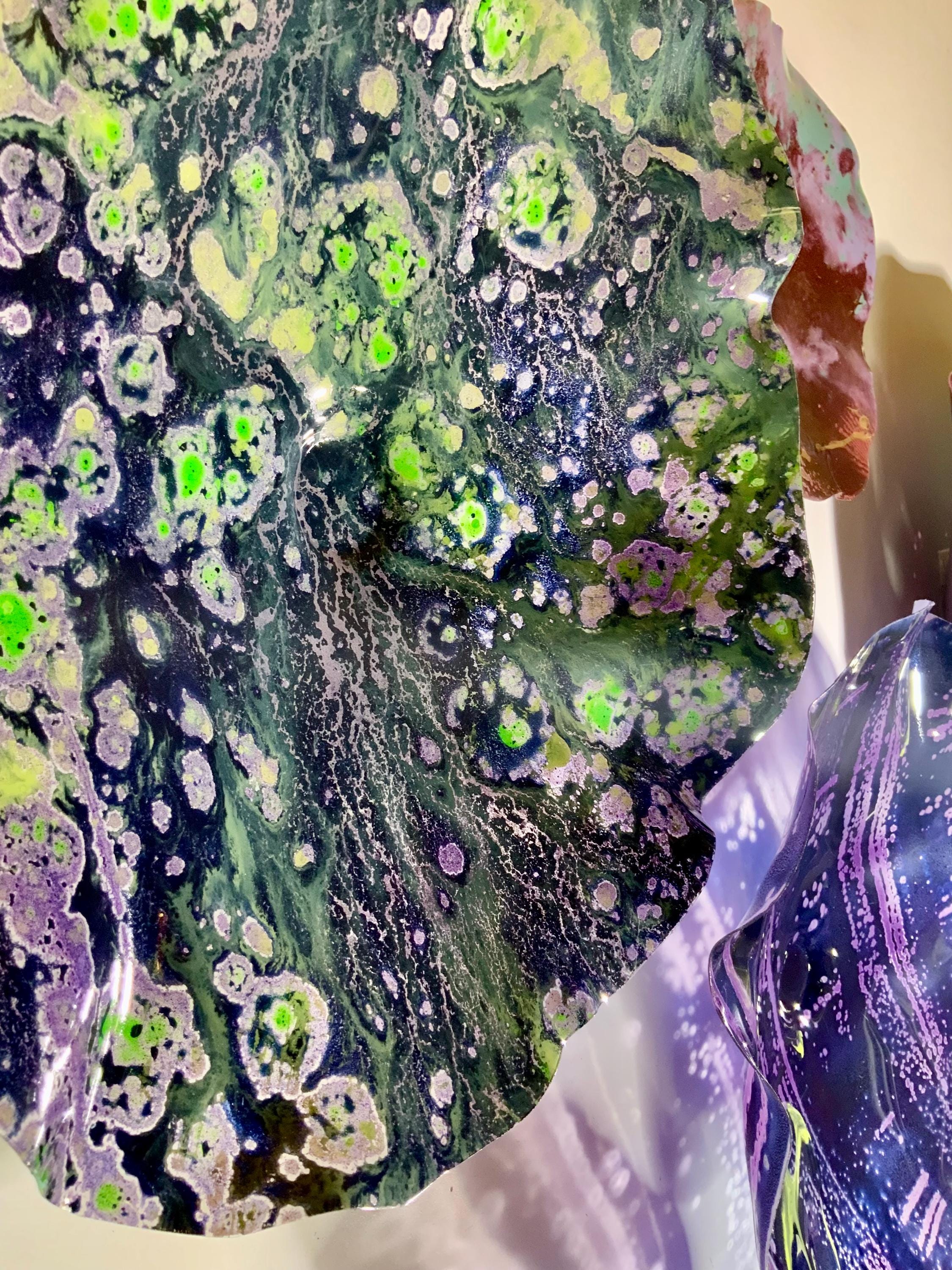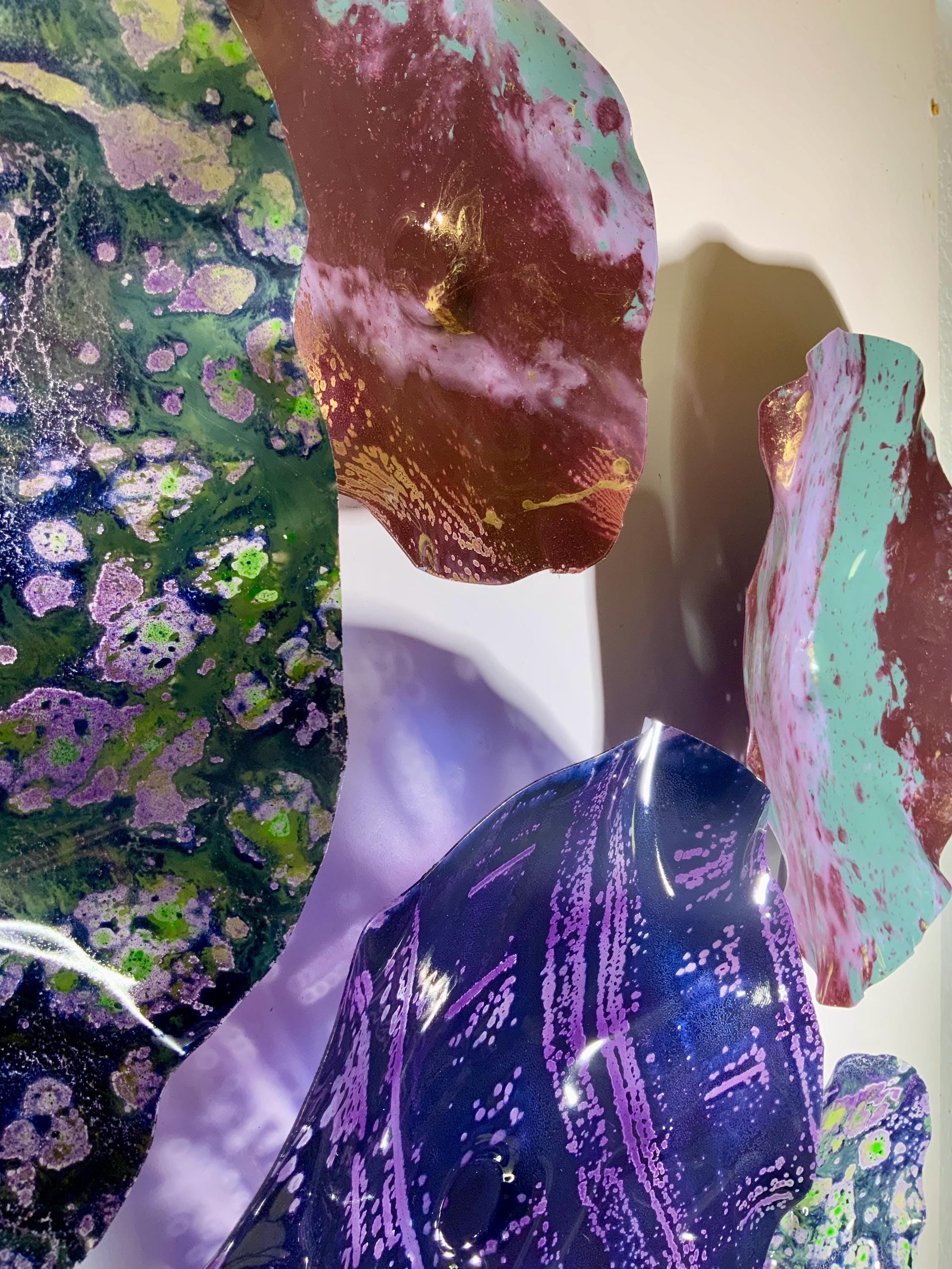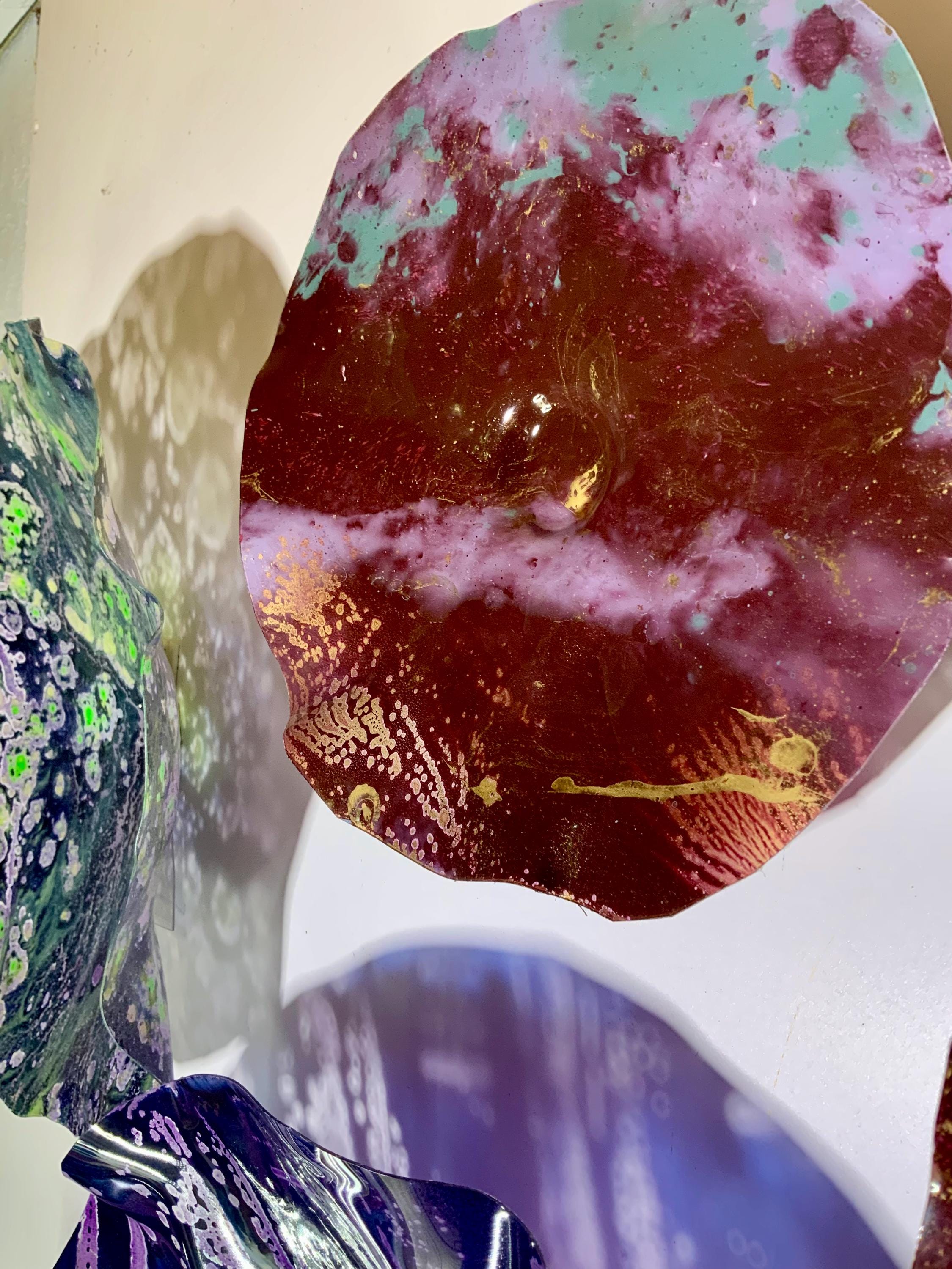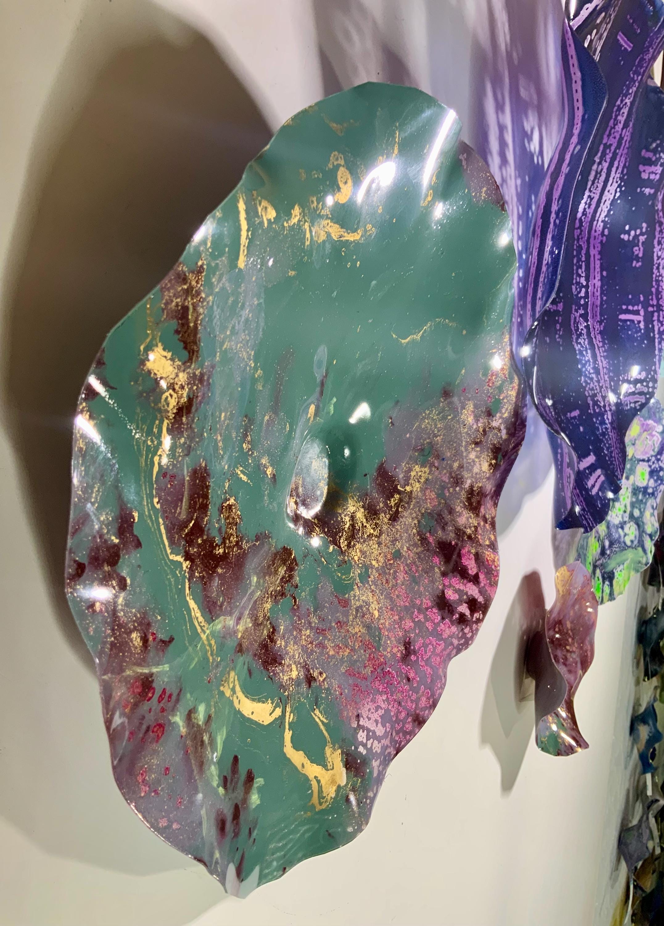 Our wall flowers are made from sustainable recycled PET as in a water bottle. Each piece contains at least 50% recycled polyethylene terphalate (rPET)
