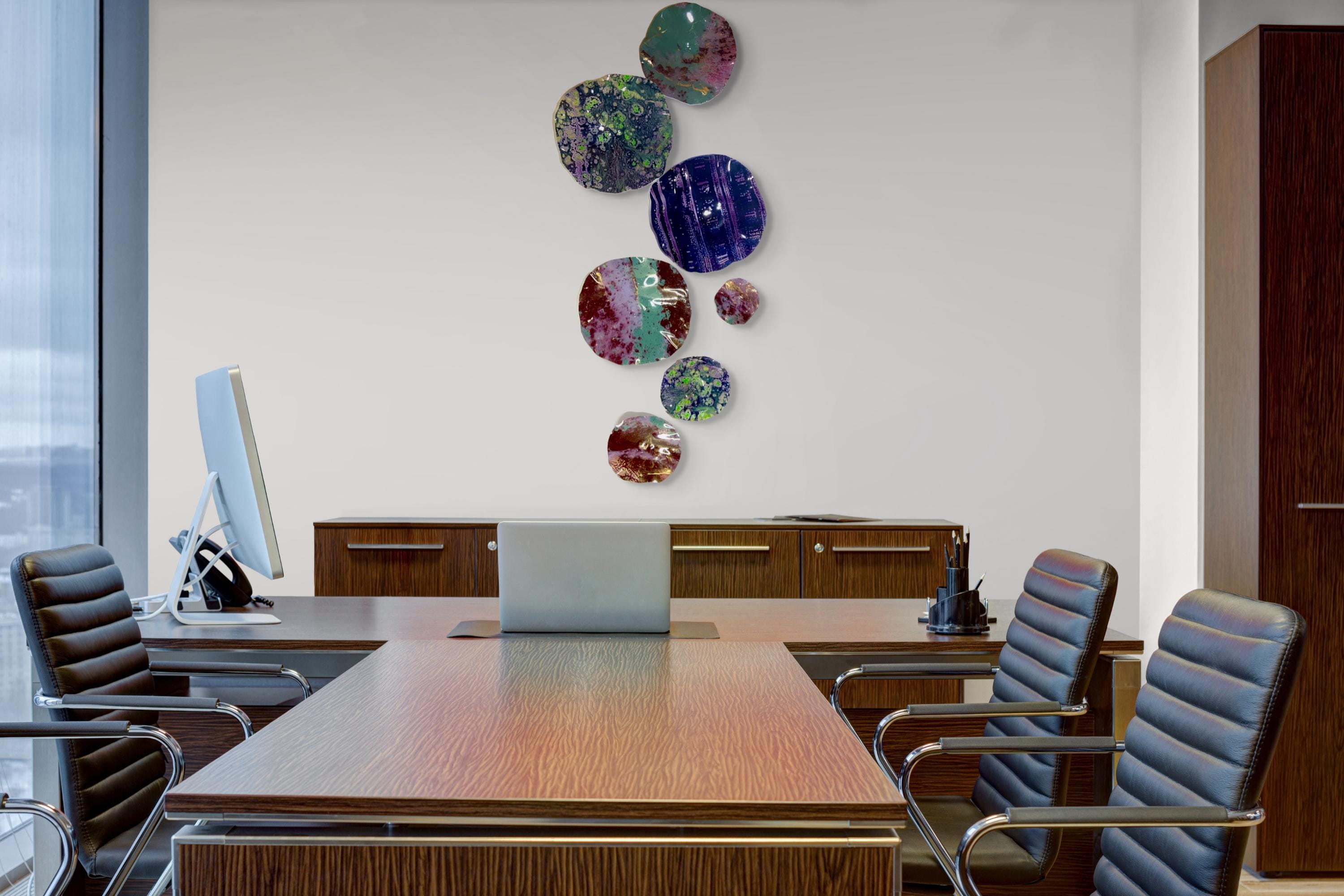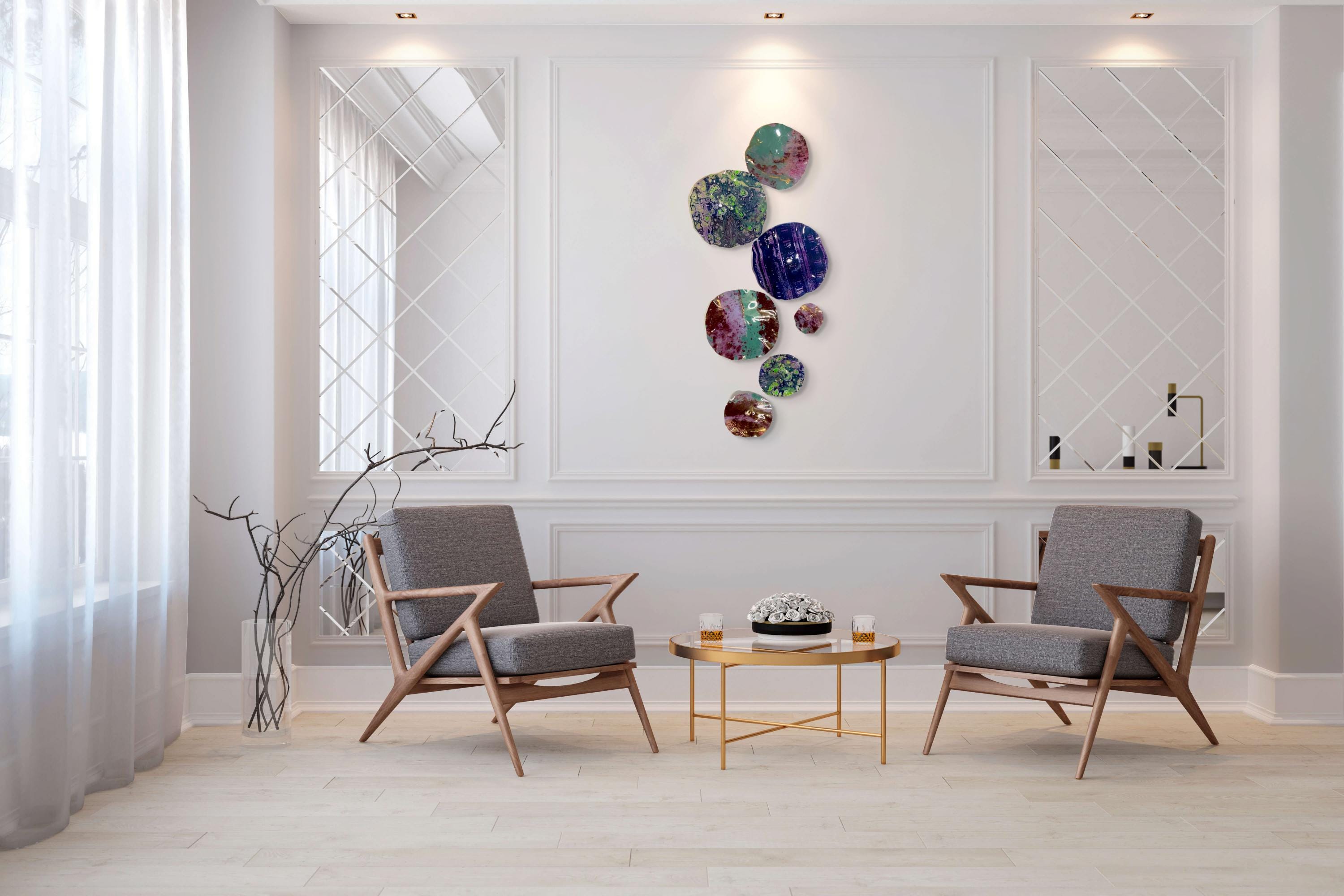 From the wall, they look like glass. The bonuses are that these flowers are light, unbreakable, environmentally friendly, easy to hang, and have no damage to the wall due to drilling for would-be-heavy traditional glass flowers.