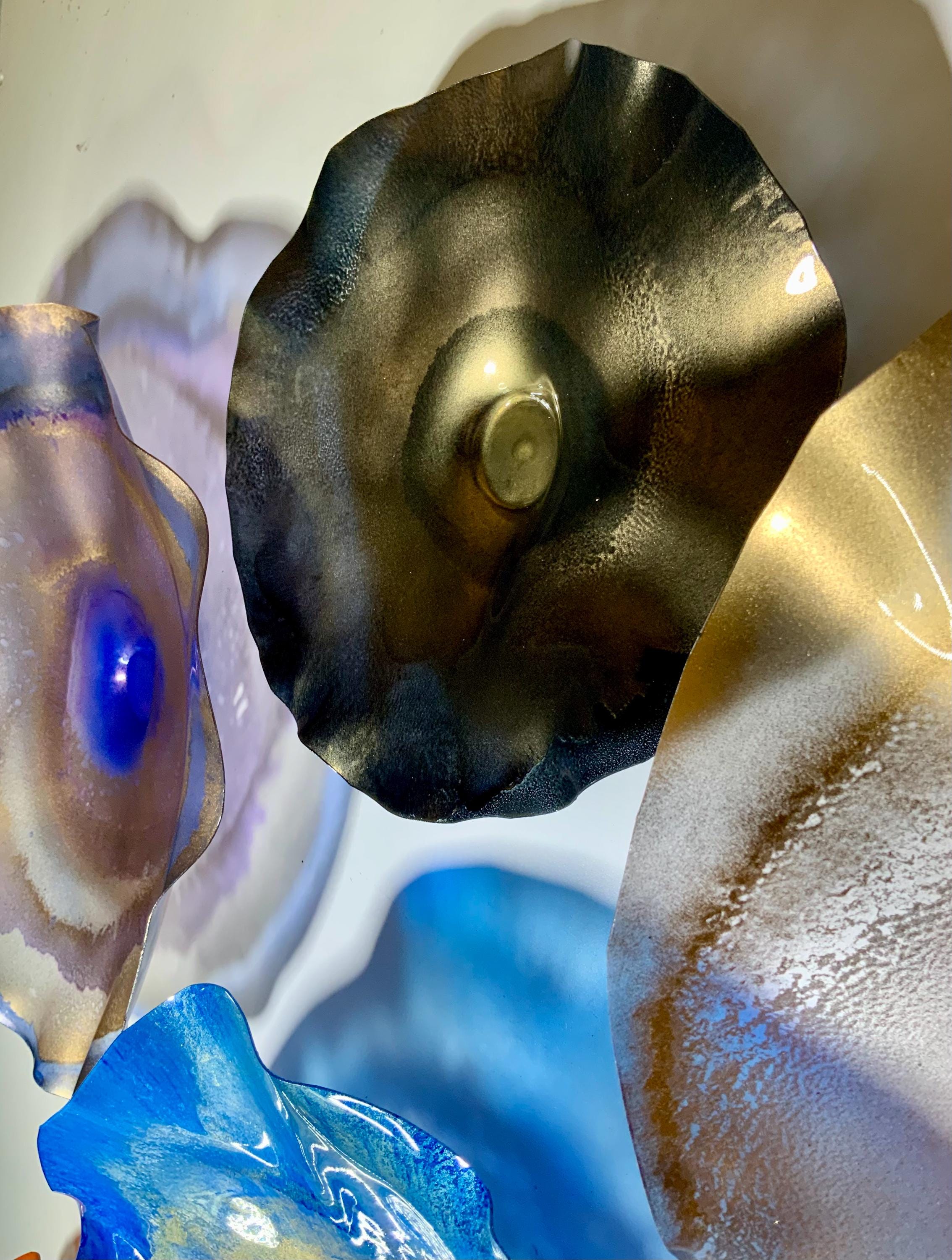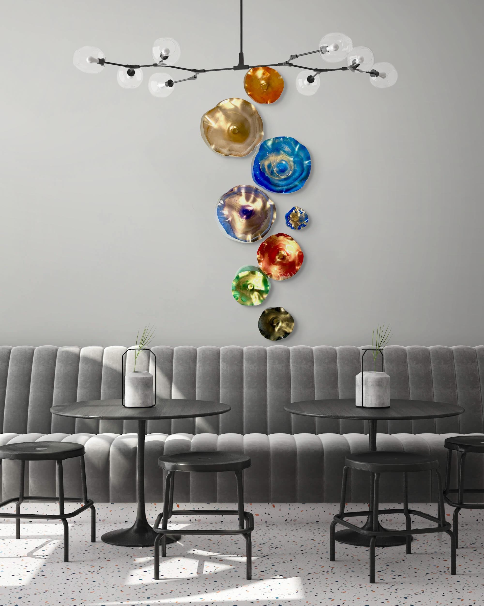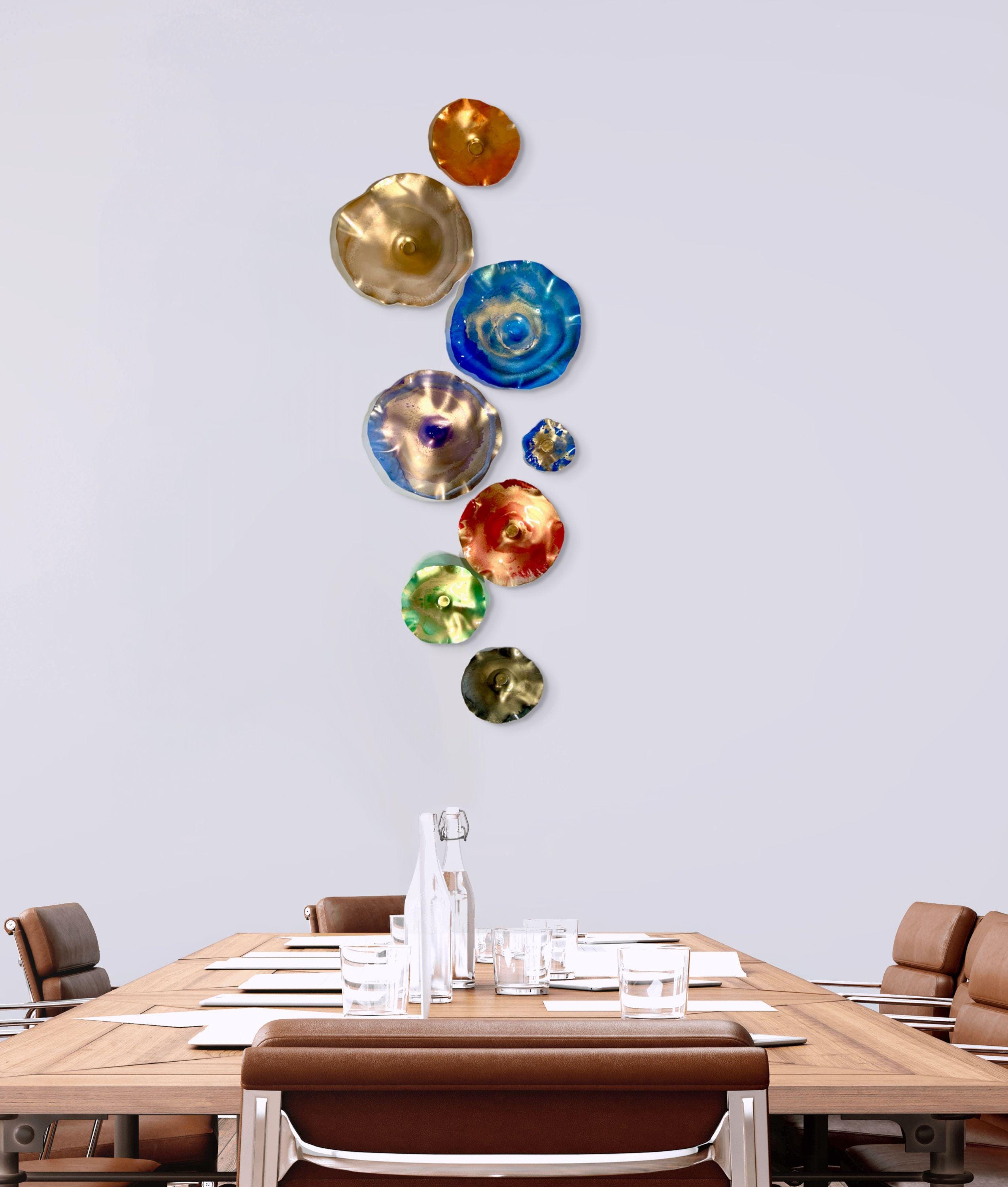 From the wall, they look like glass. The bonuses are that these flowers are light, unbreakable, environmentally friendly, easy to hang, and have no damage to the wall due to drilling for would-be-heavy traditional glass flowers.
