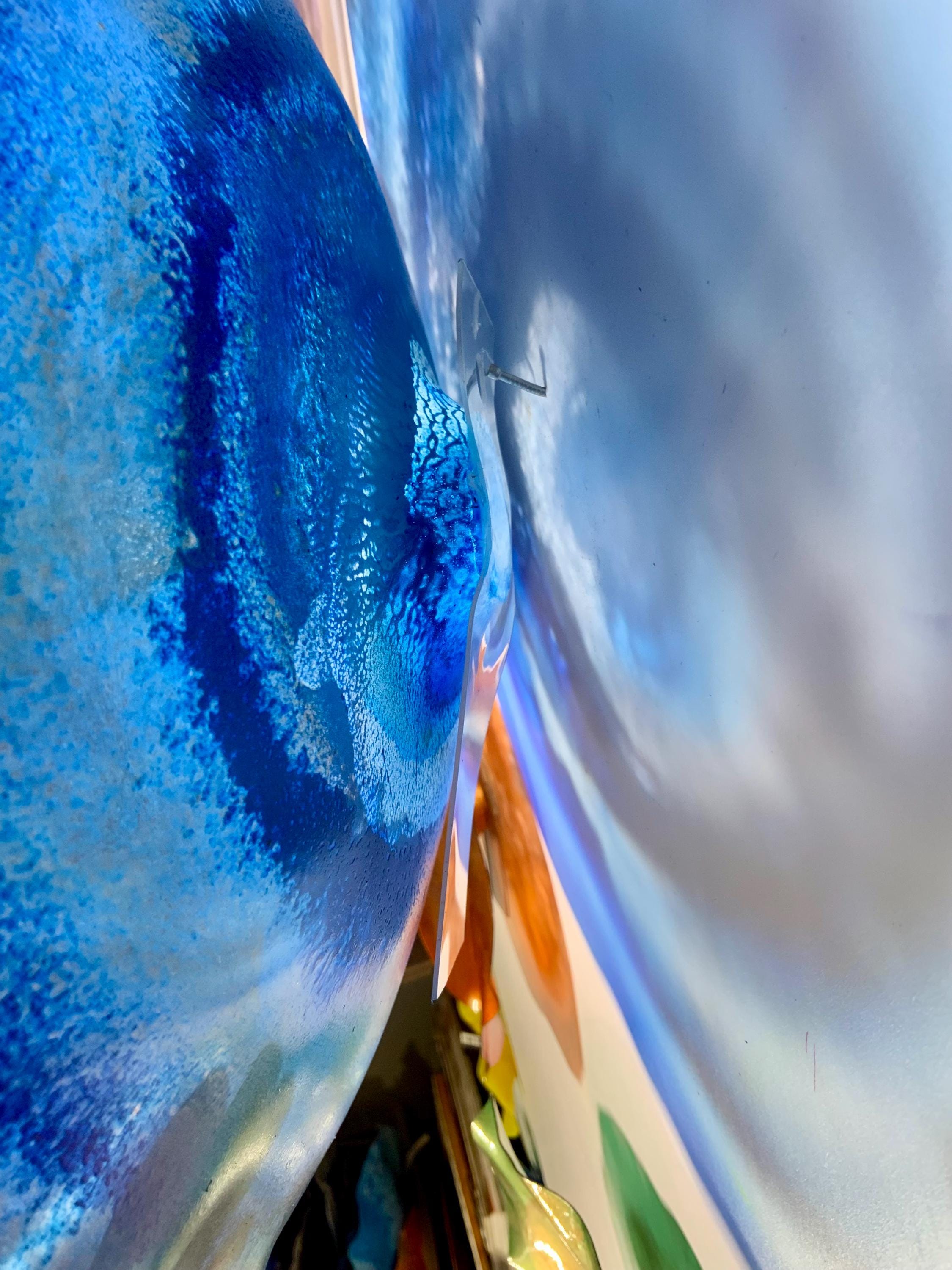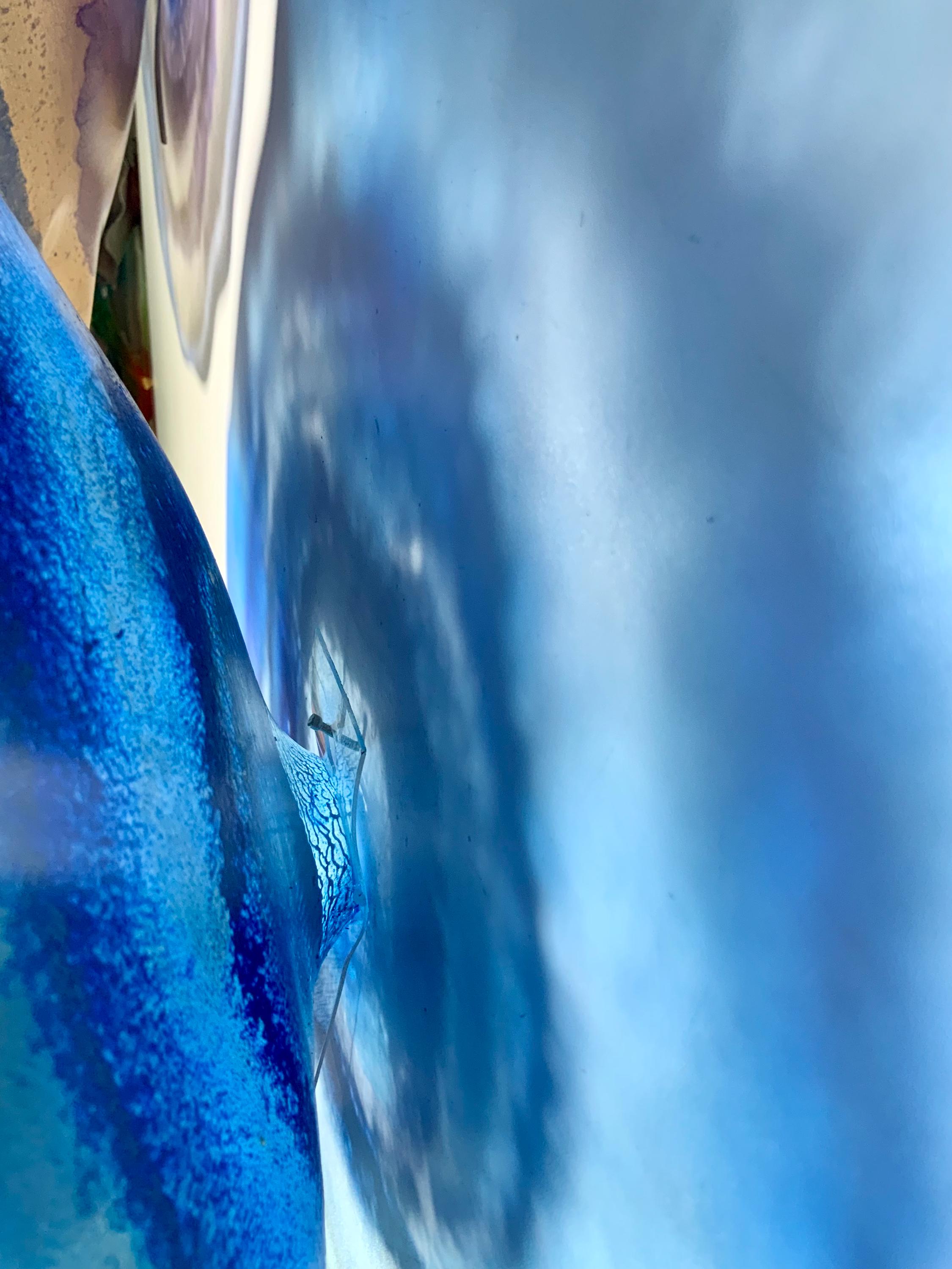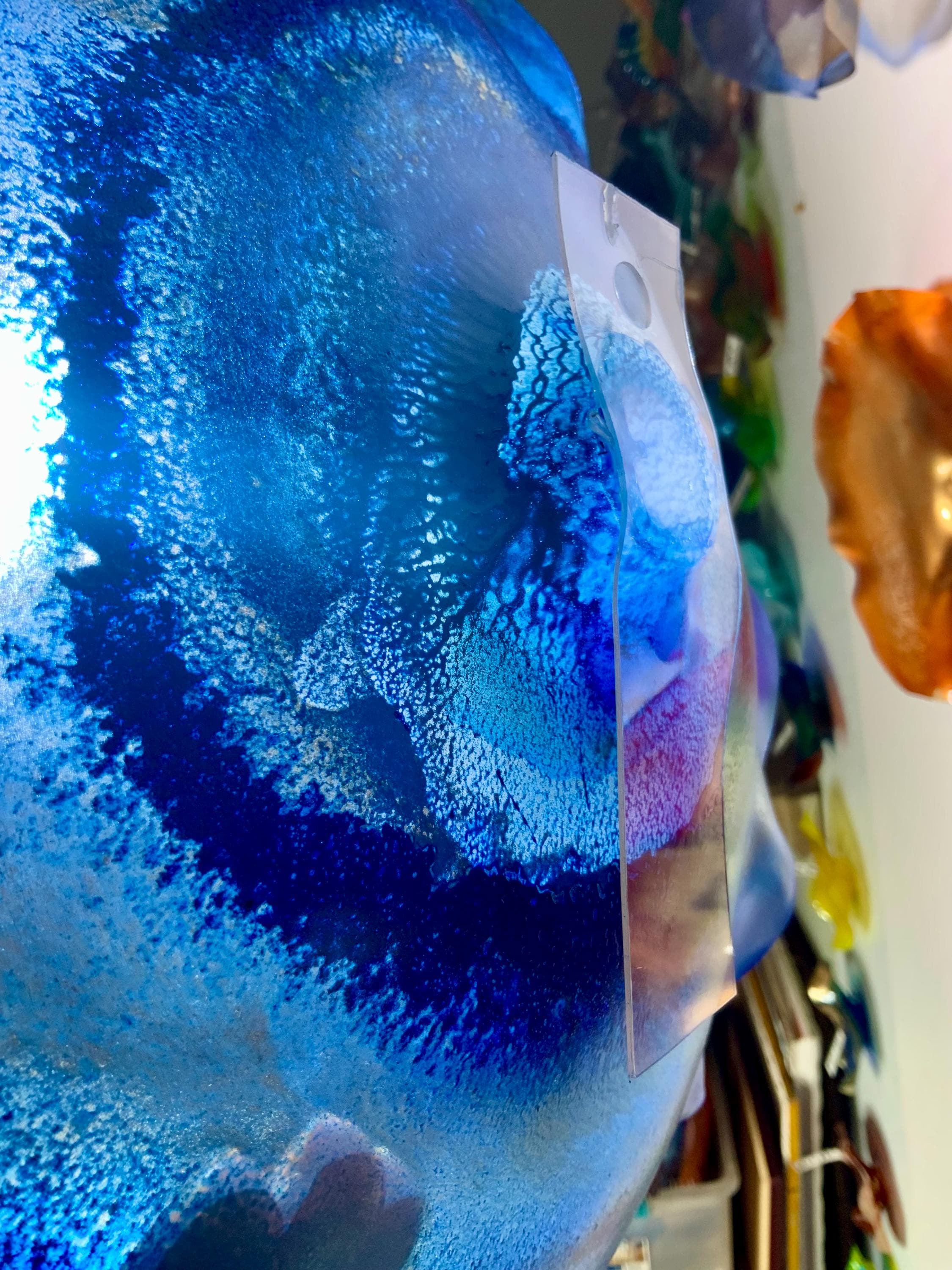 From the wall, they look like glass. The bonuses are that these flowers are light, unbreakable, environmentally friendly, easy to hang, and have no damage to the wall due to drilling for would-be-heavy traditional glass flowers.