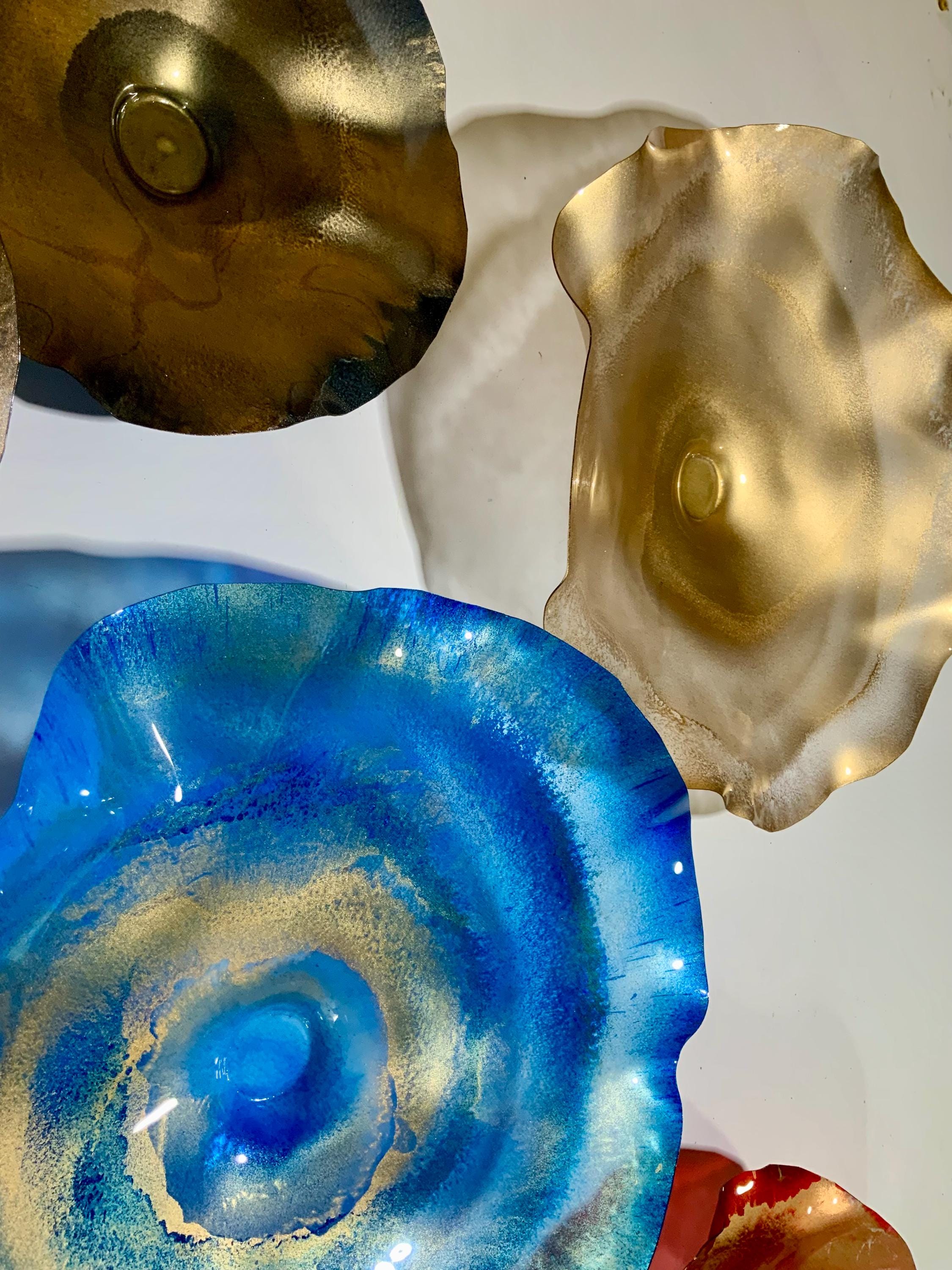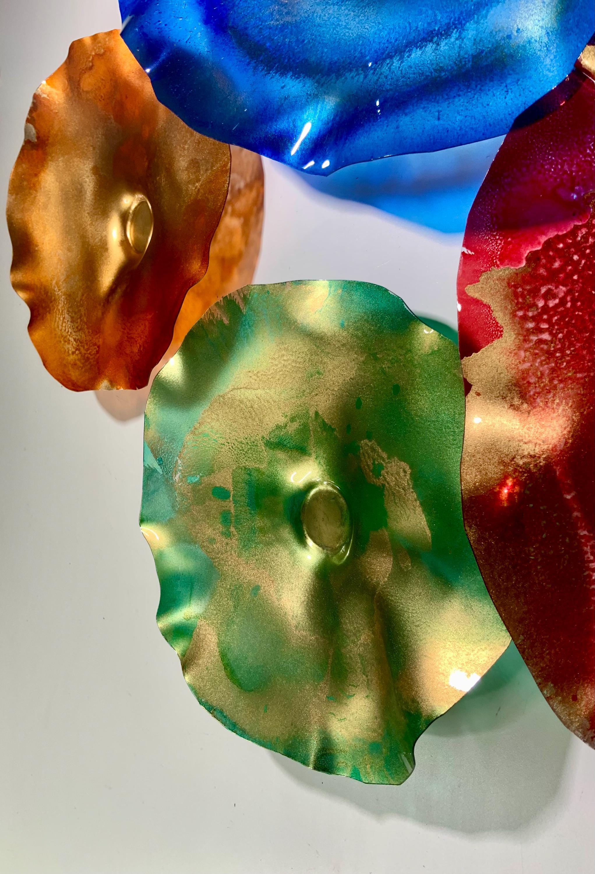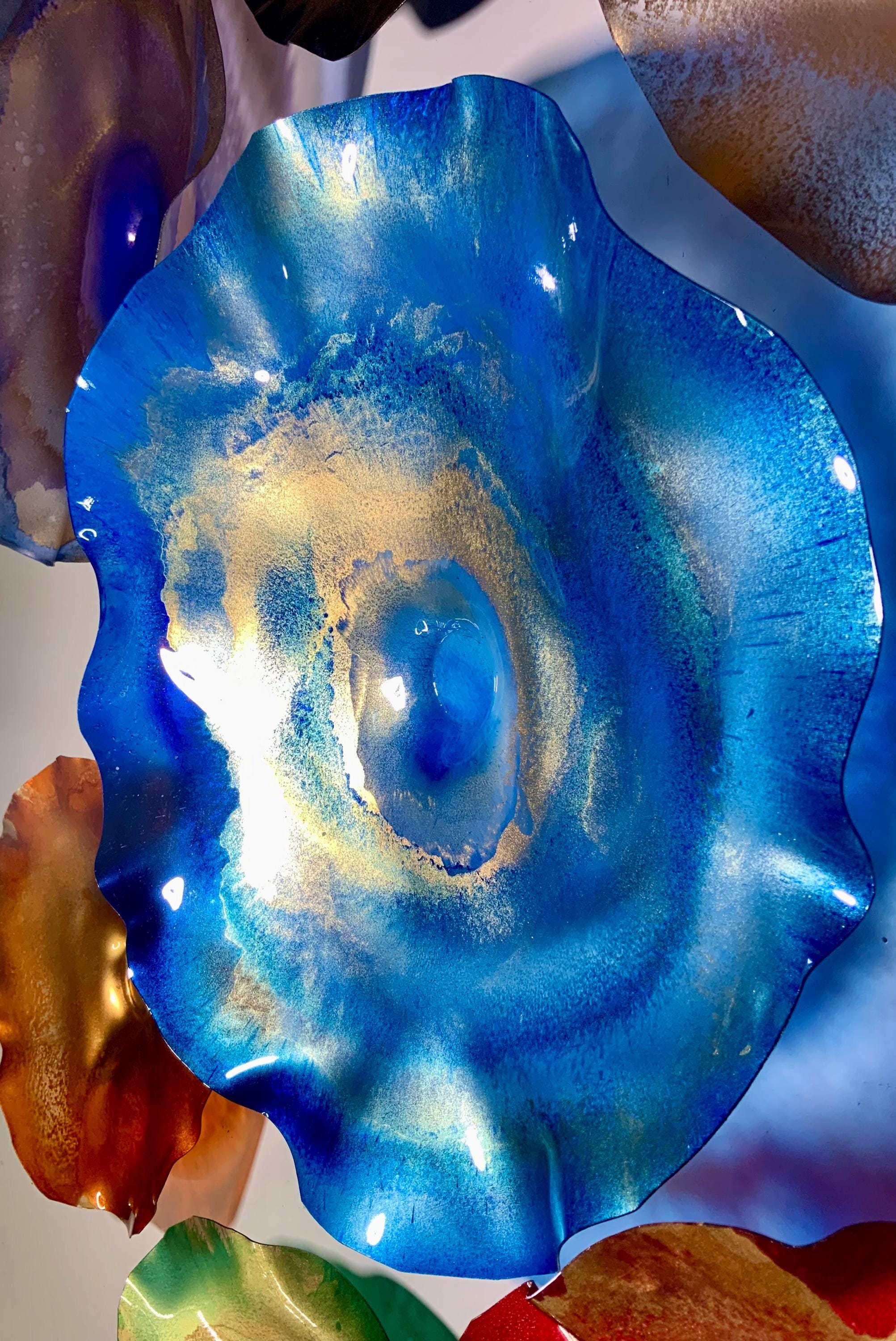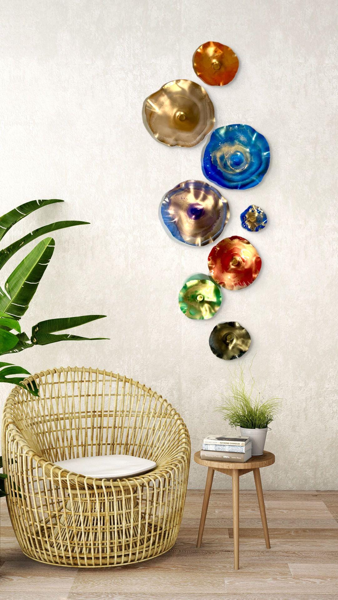 Each flower come with a hanger with a hole in the back for easy hanging. Each piece is light weight and all you will need is a nail or thumb tack to hang it from. If you can hang a picture, you can hang these plates. Each order comes with a set of hanging instructions. For outdoor hanging, please request our free outdoor hardware. For ceiling hanging please request velcro.