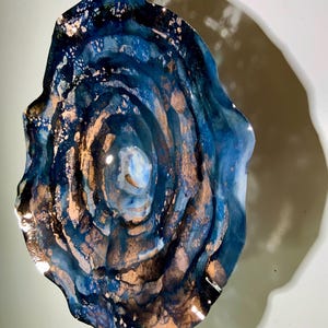 Each collectible piece is unique, no two are alike. This permanent, colorful, eye catching art looks and feels like glass. It shimmers in the light resembling water. They are very DURABLE, AND LIGHTWEIGHT. These flowers are easy to hang, all weather and UV resistant. Great for indoor or outdoor decorating.