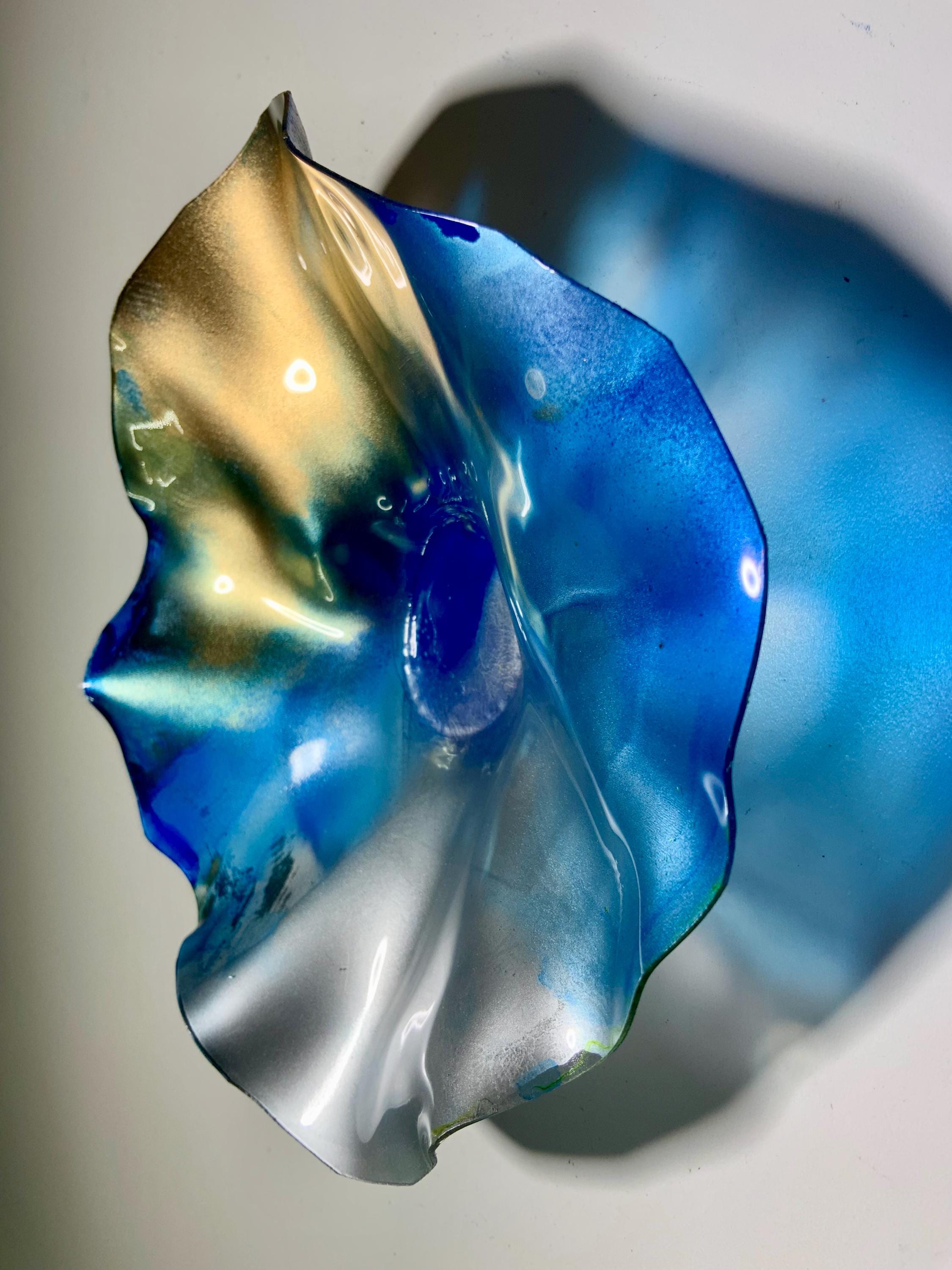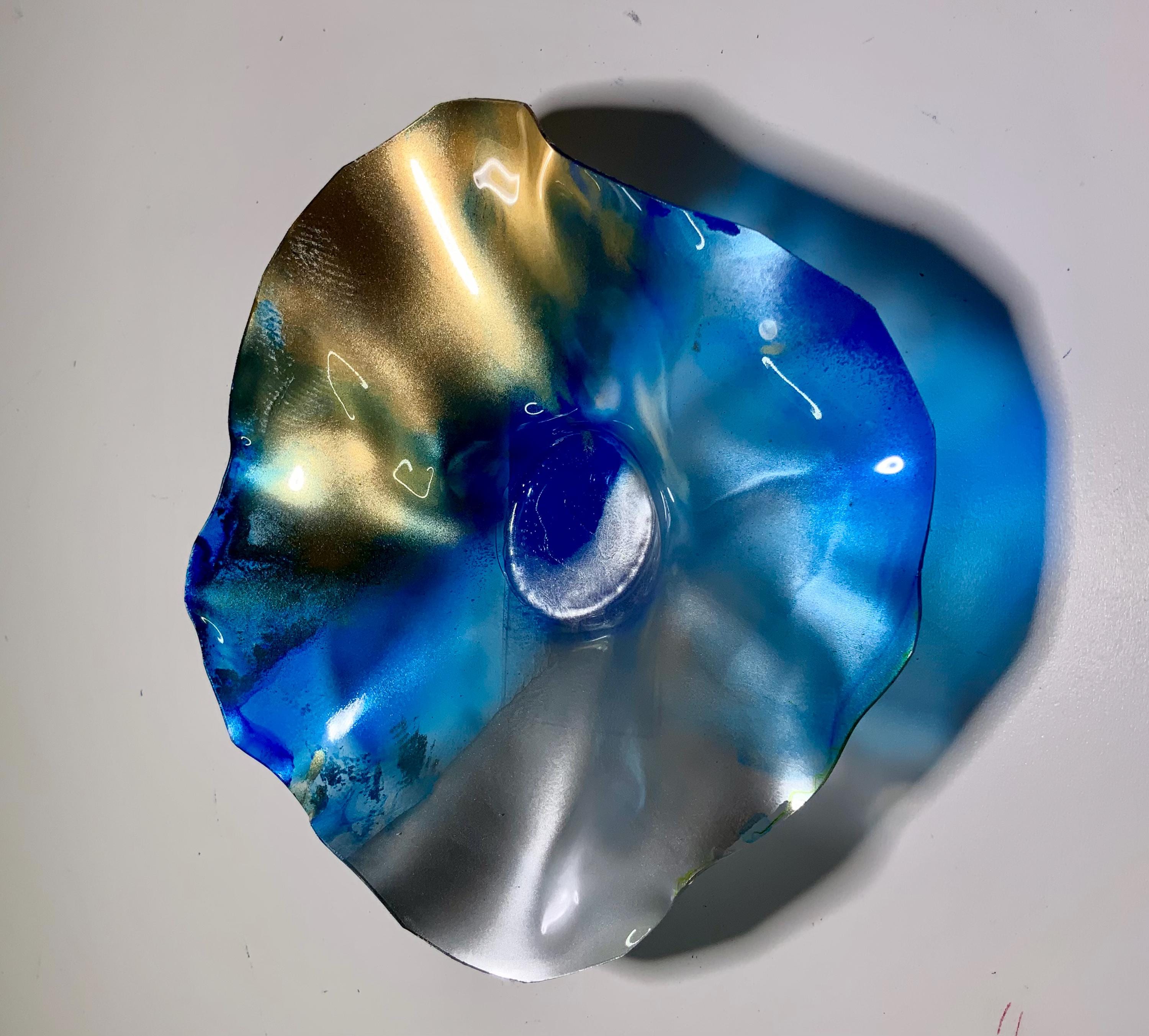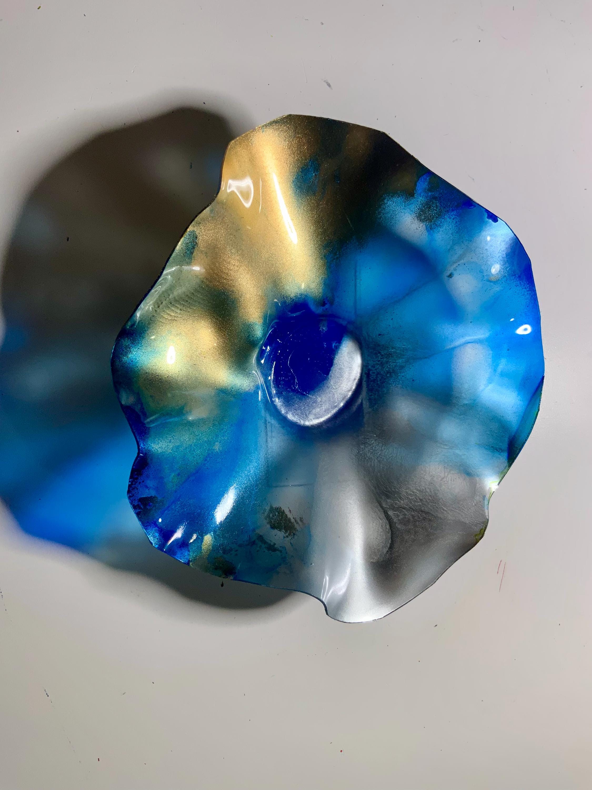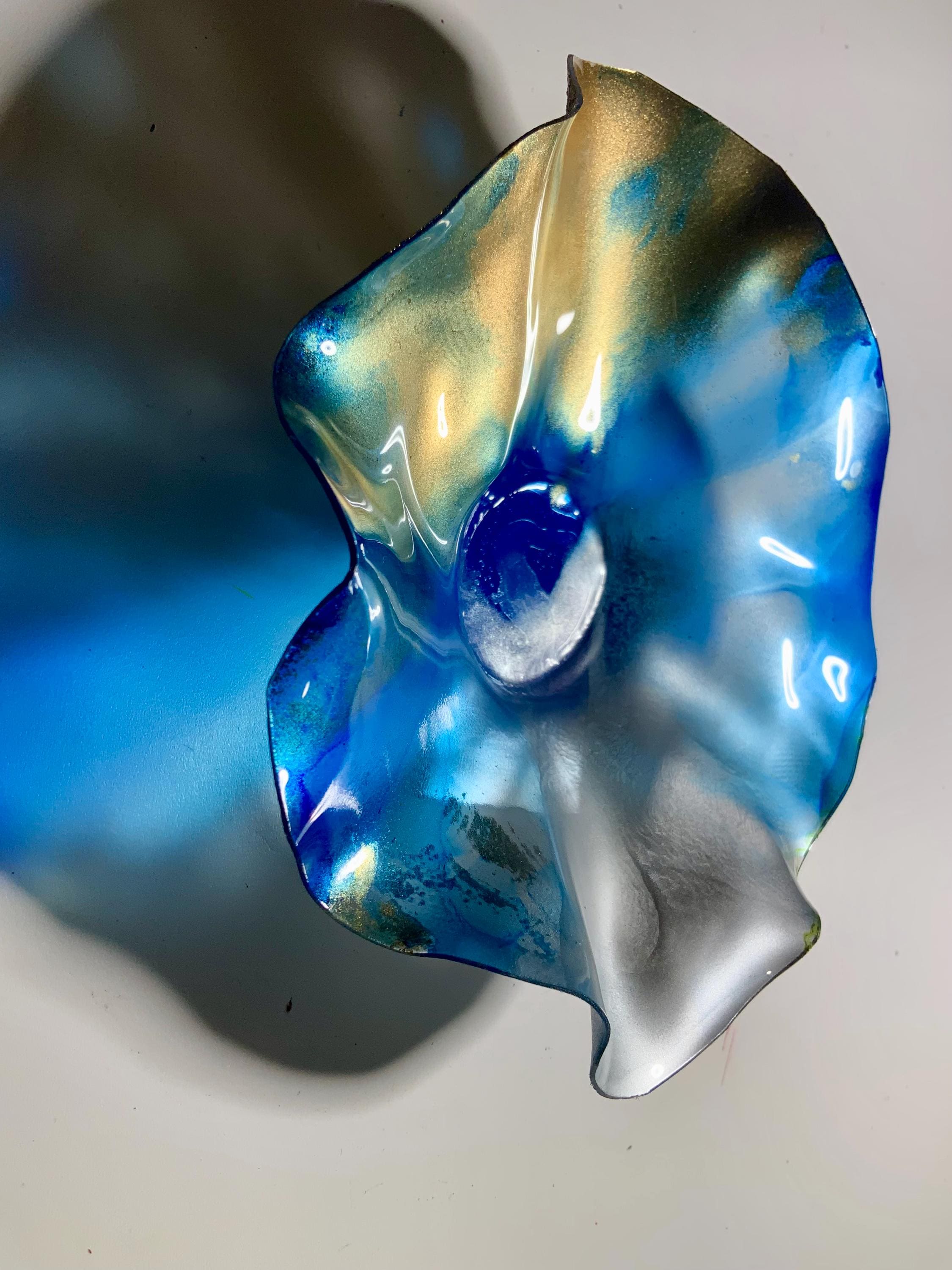 One of a kind Artisan 6” Wall Flower - Blue & Gold Silver Eco Art Decor