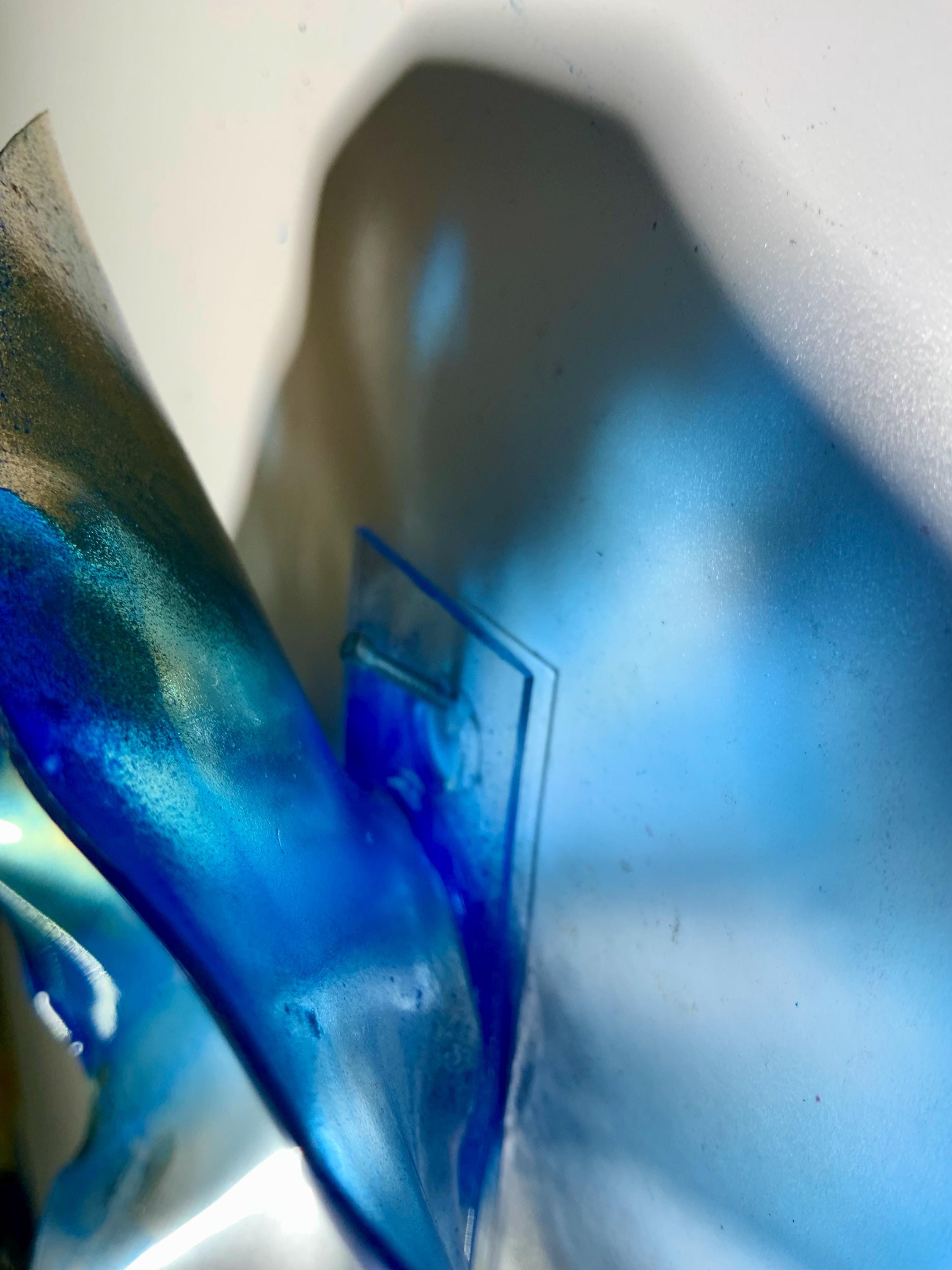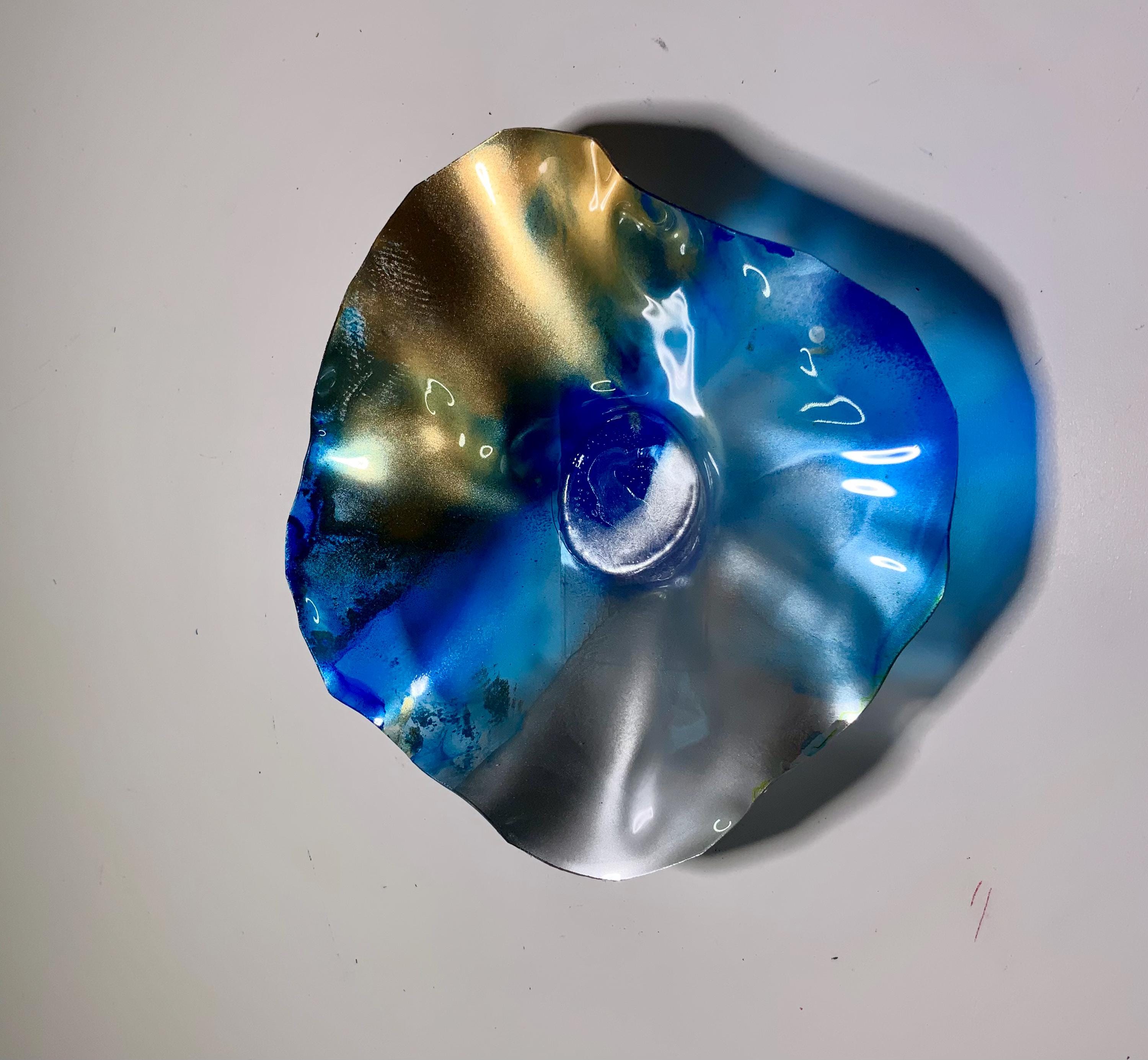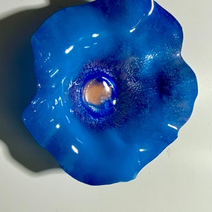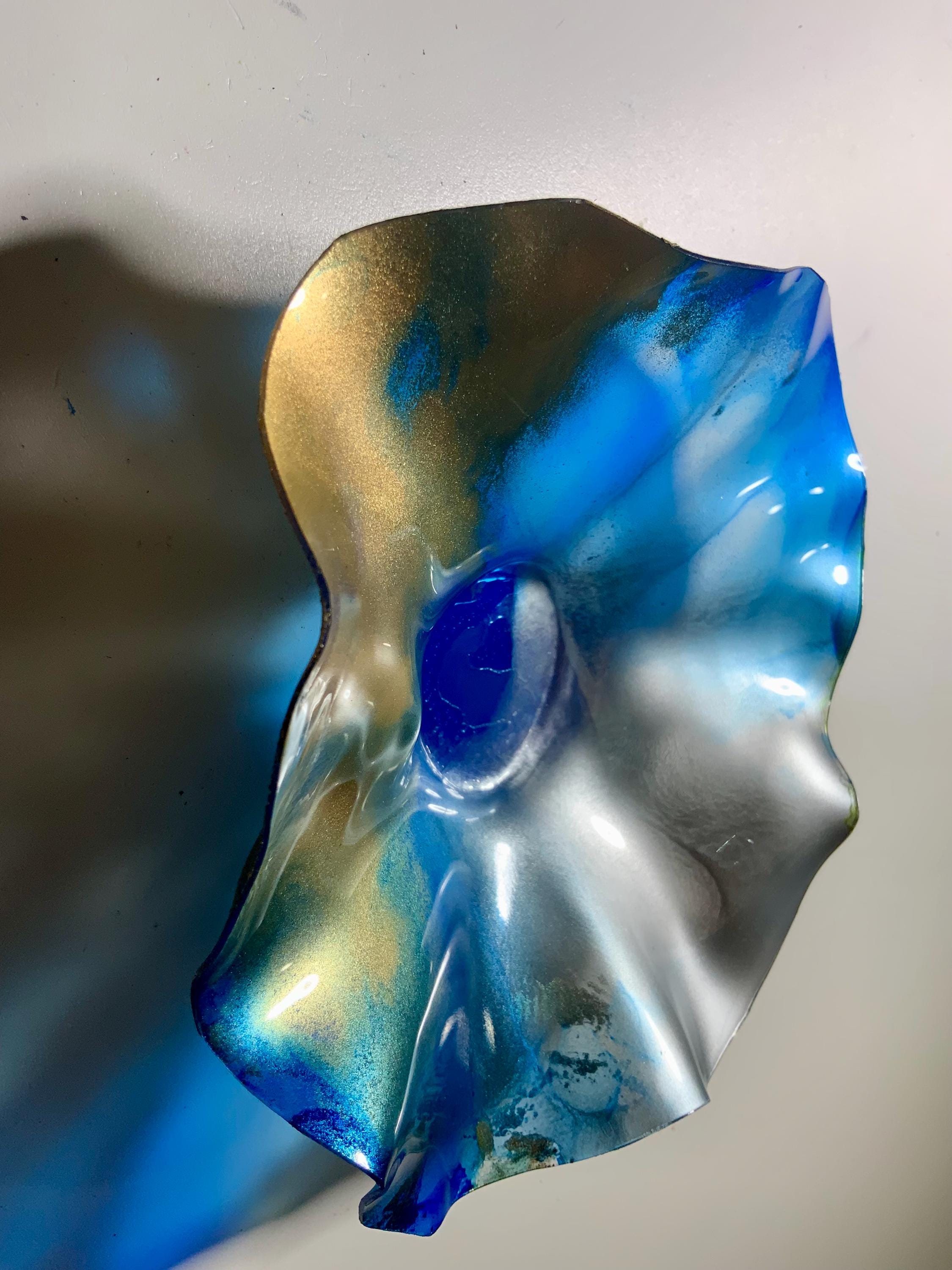 One of a kind Artisan 6” Wall Flower - Blue & Gold Silver Eco Art Decor