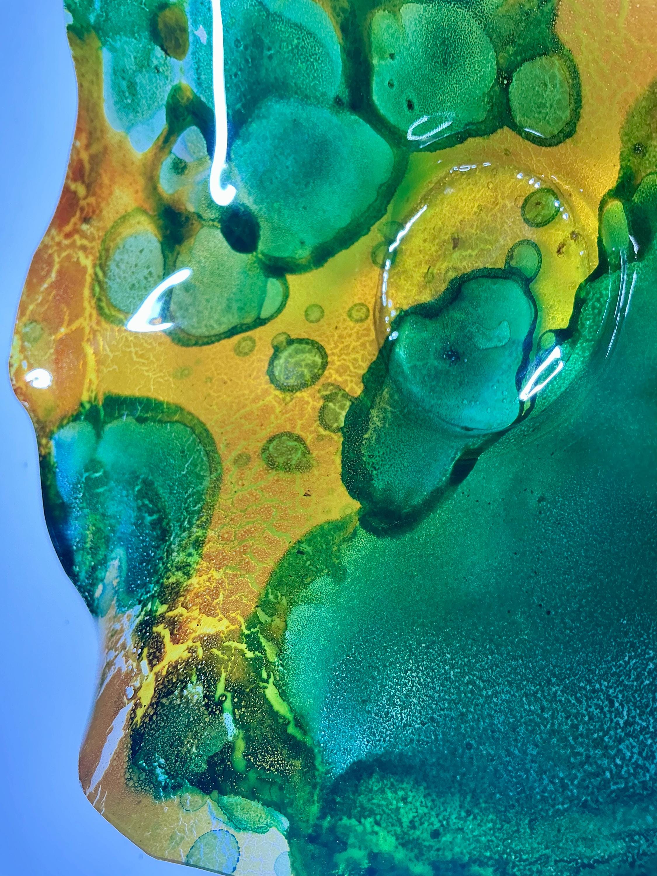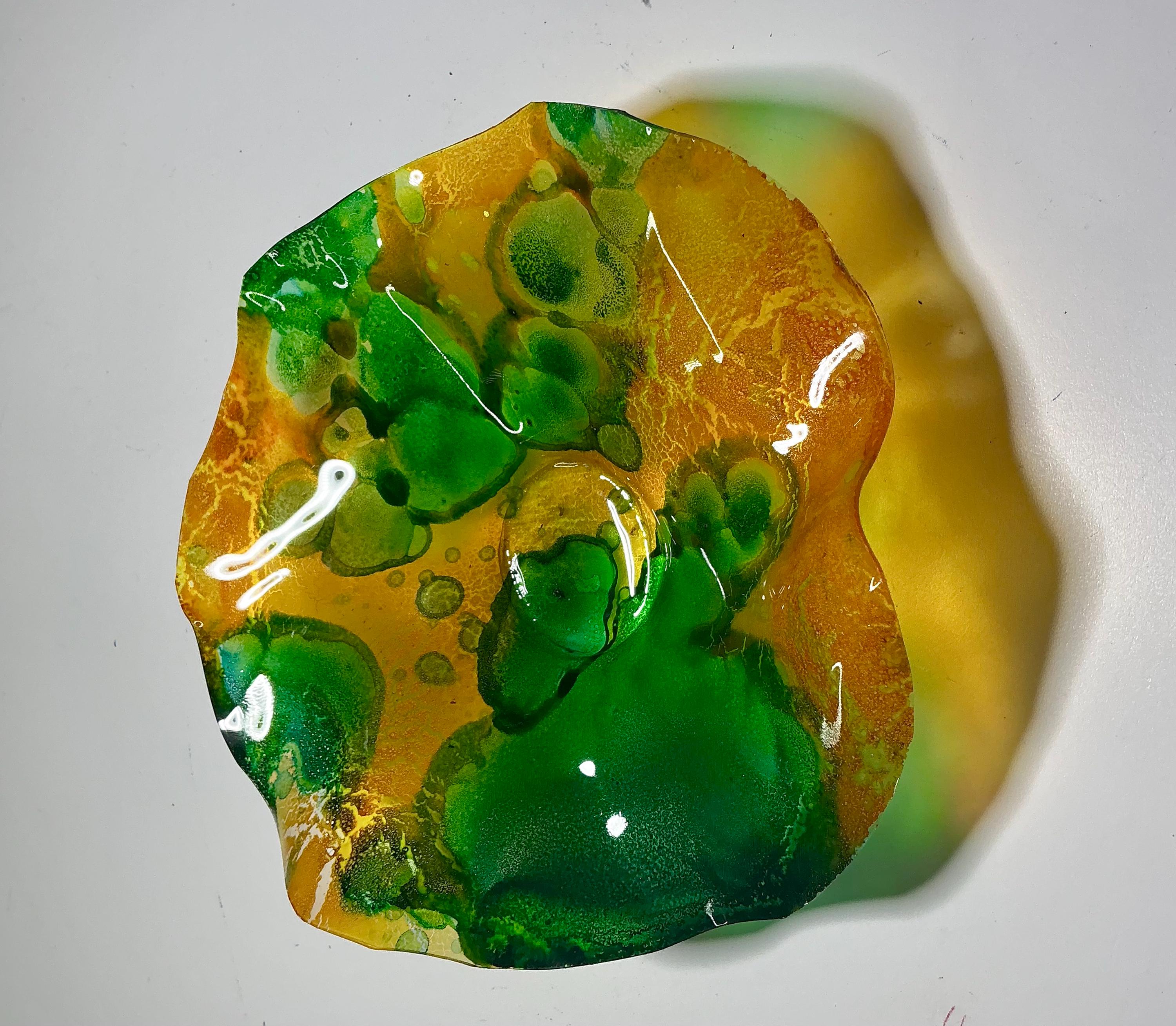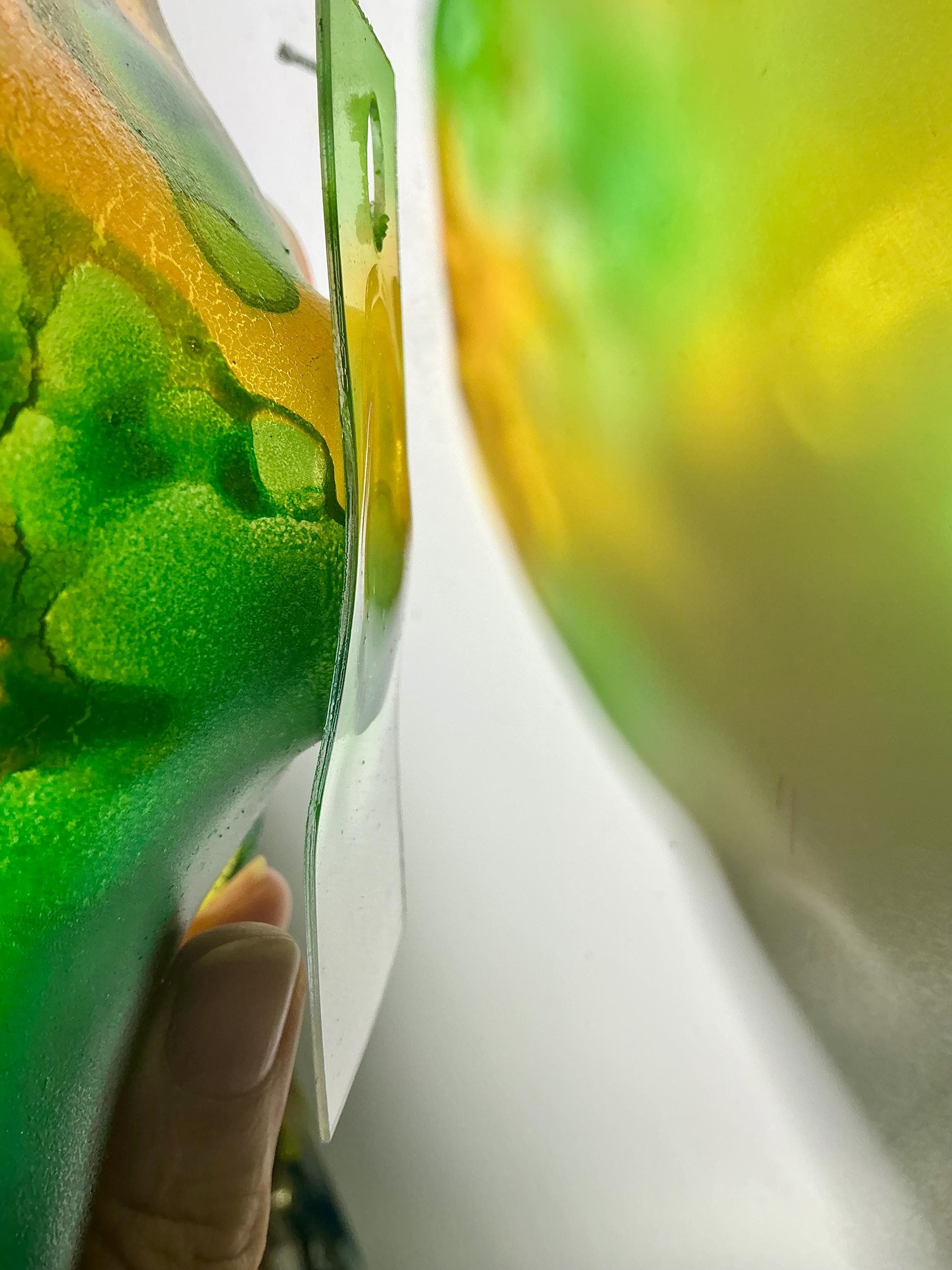 Each collectible piece is unique, no two are alike. This permanent, colorful, eye catching art looks and feels like glass. It shimmers in the light resembling water. They are very DURABLE AND LIGHTWEIGHT. These flowers are easy to hang, are all weather and UV resistant. Great for indoor or outdoor decorating.