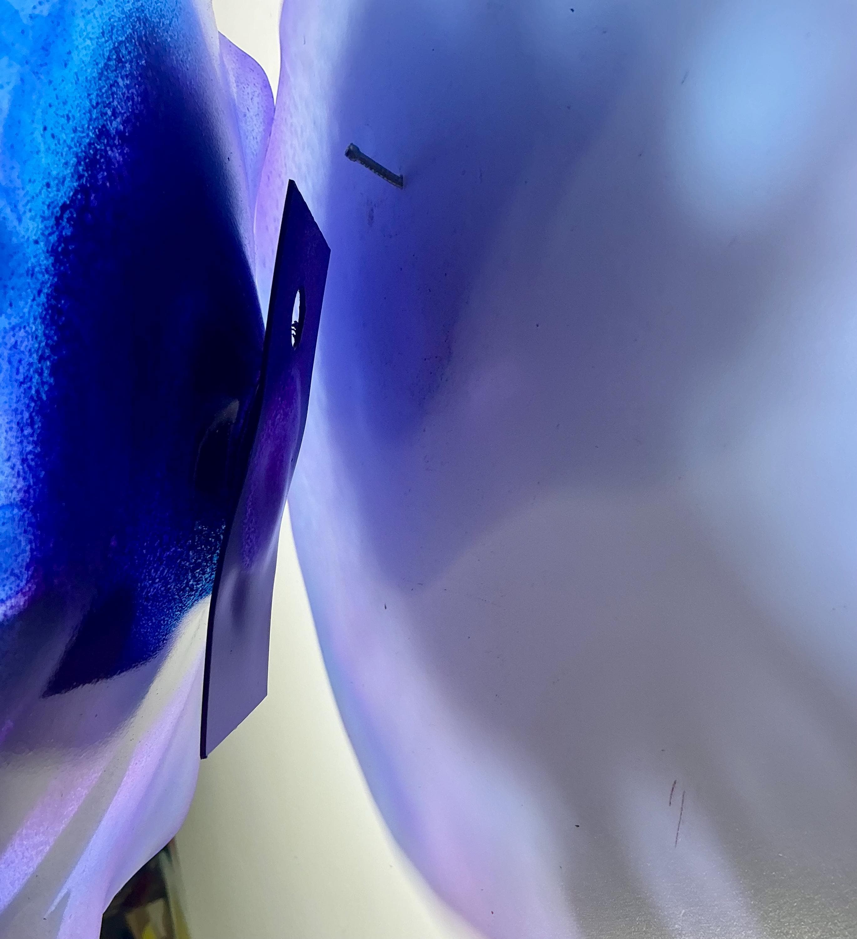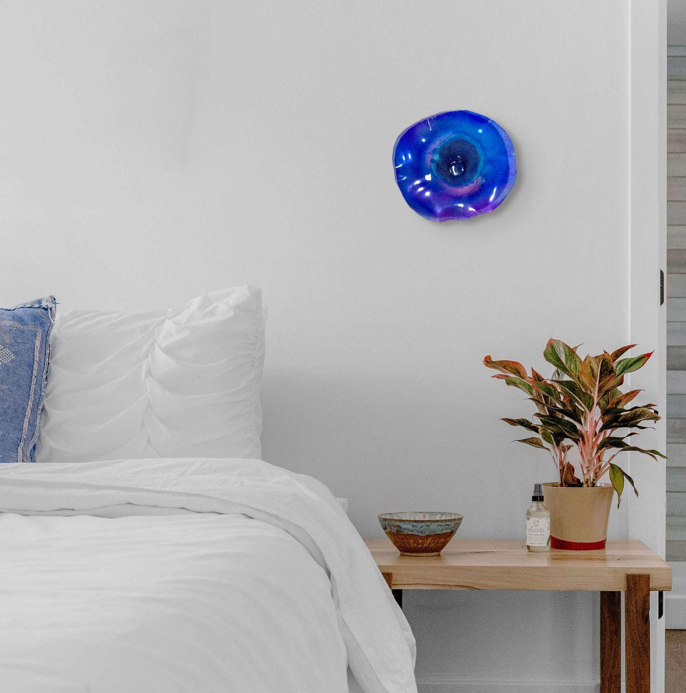 Each flower come with a hanger with a hole in the back for easy hanging. Each piece is light weight and all you will need is a nail or thumb tack to hang it from. If you can hang a picture, you can hang these plates. Each order comes with a set of hanging instructions. For outdoor hanging, please request our free outdoor hardware. For ceiling hanging please request velcro.