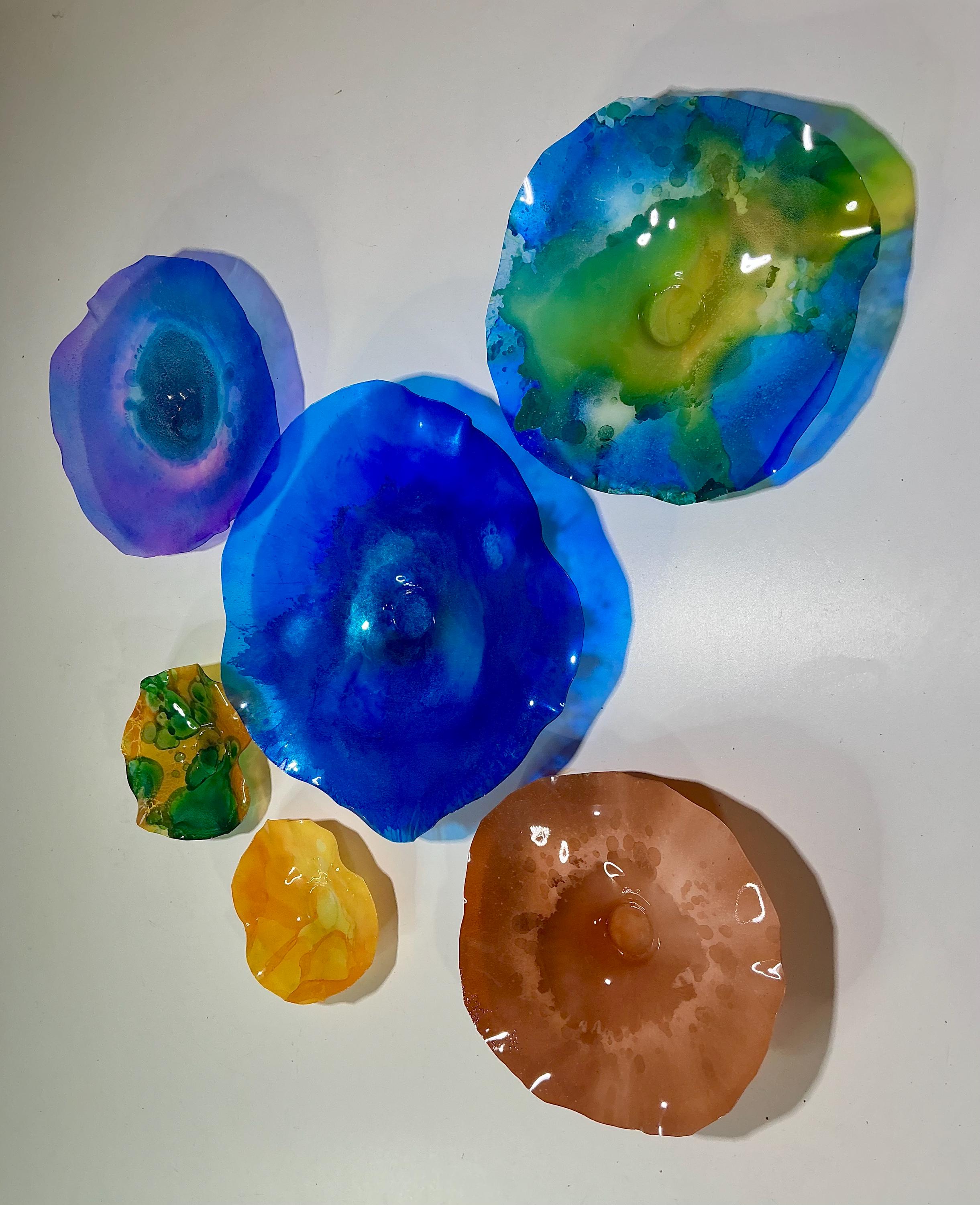 Our wall flowers are made from sustainable recycled PET as in a water bottle. Each piece contains at least 50% recycled polyethylene terphalate (rPET)