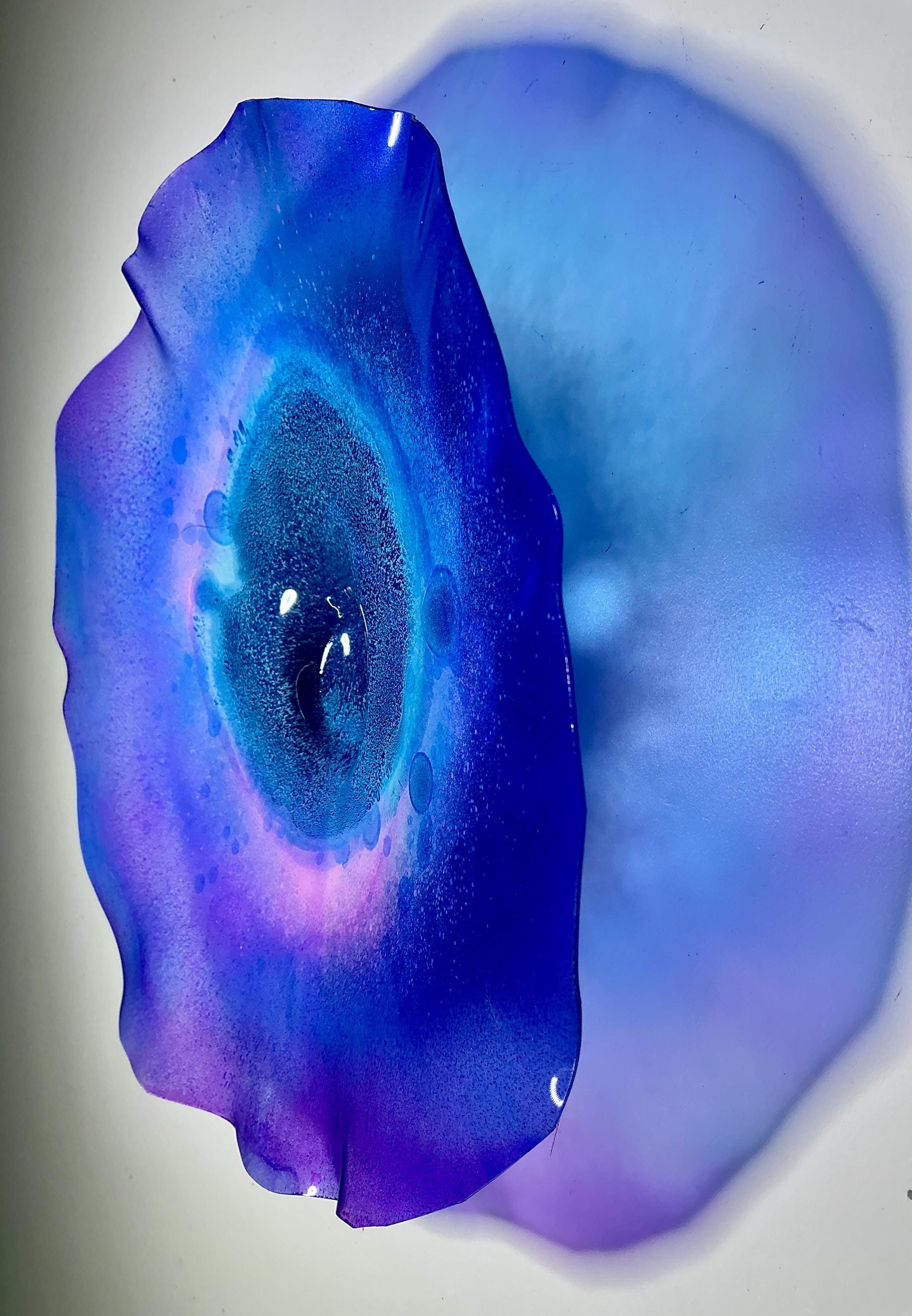 From the wall, they look like glass. The bonuses are that these flowers are light, unbreakable, environmentally friendly, easy to hang, and have no damage to the wall due to drilling for would-be-heavy traditional glass flowers.