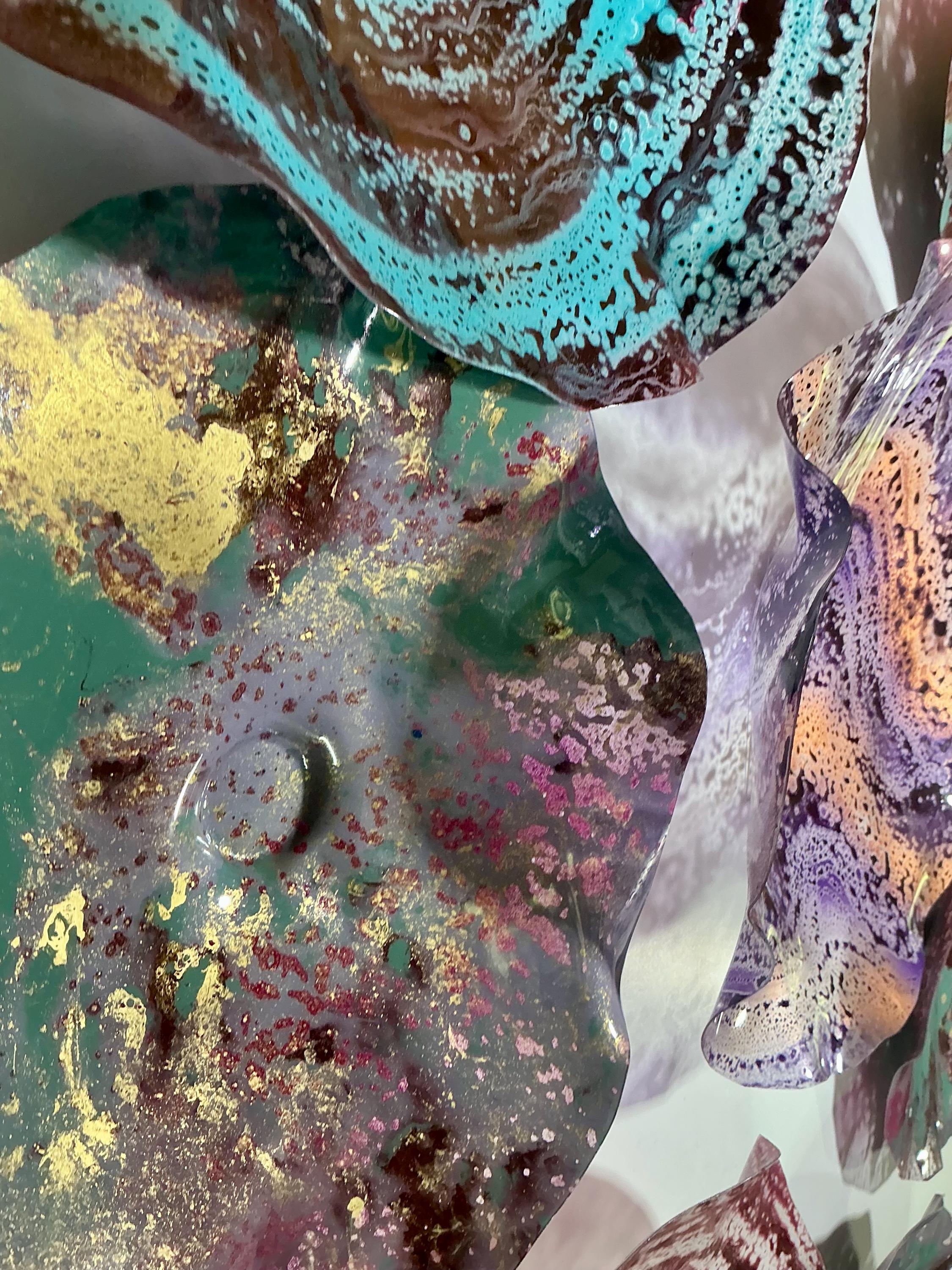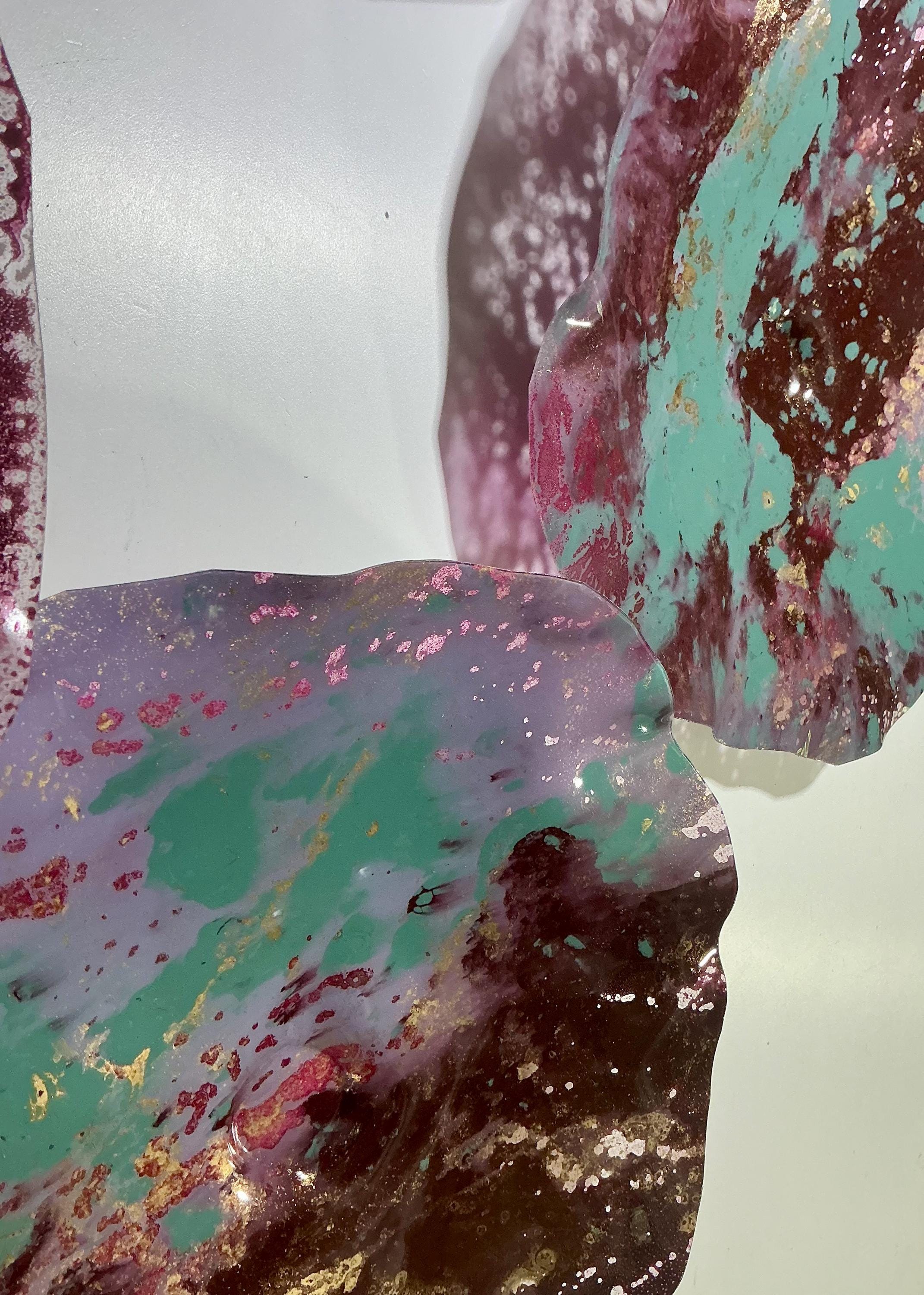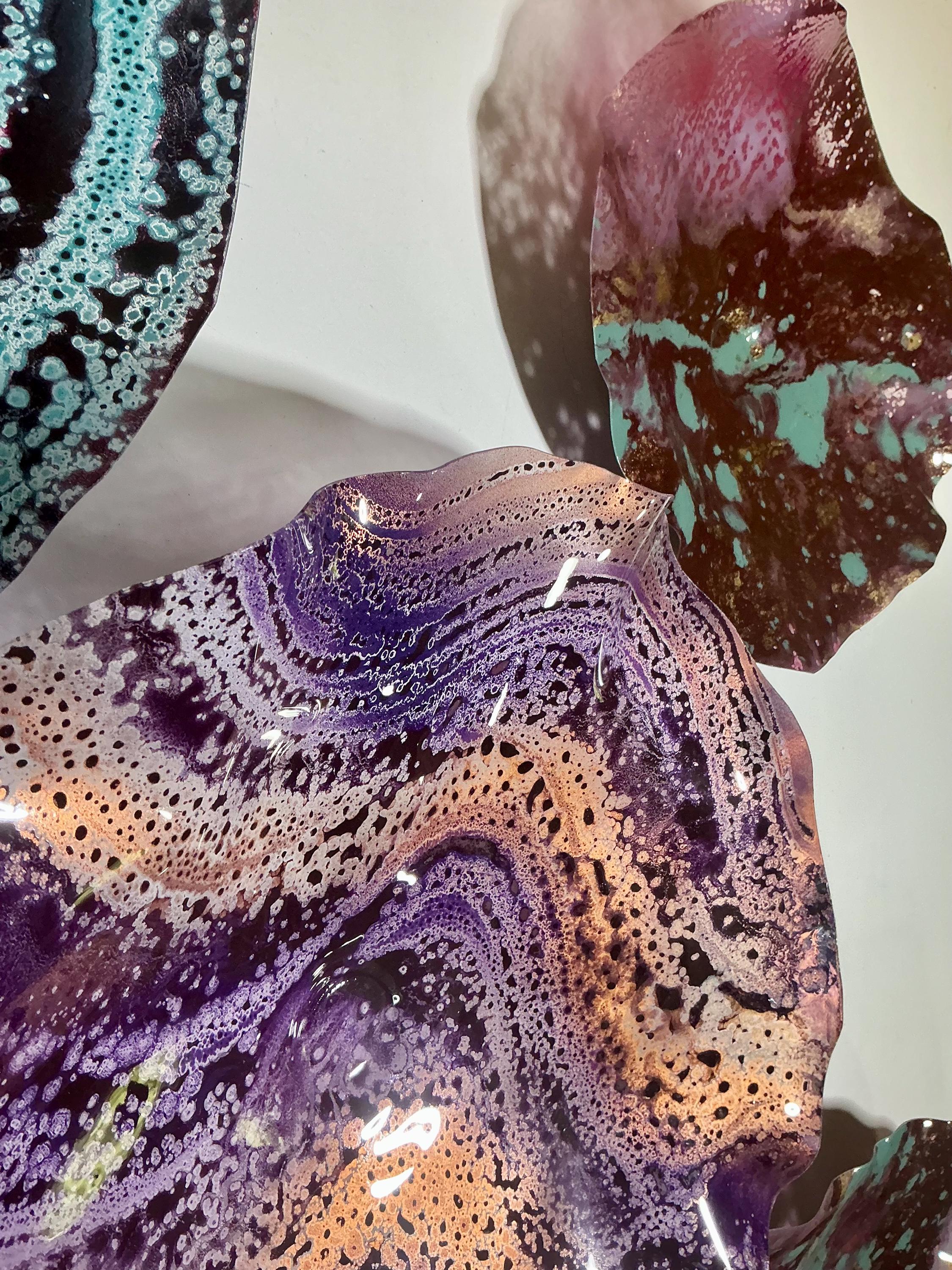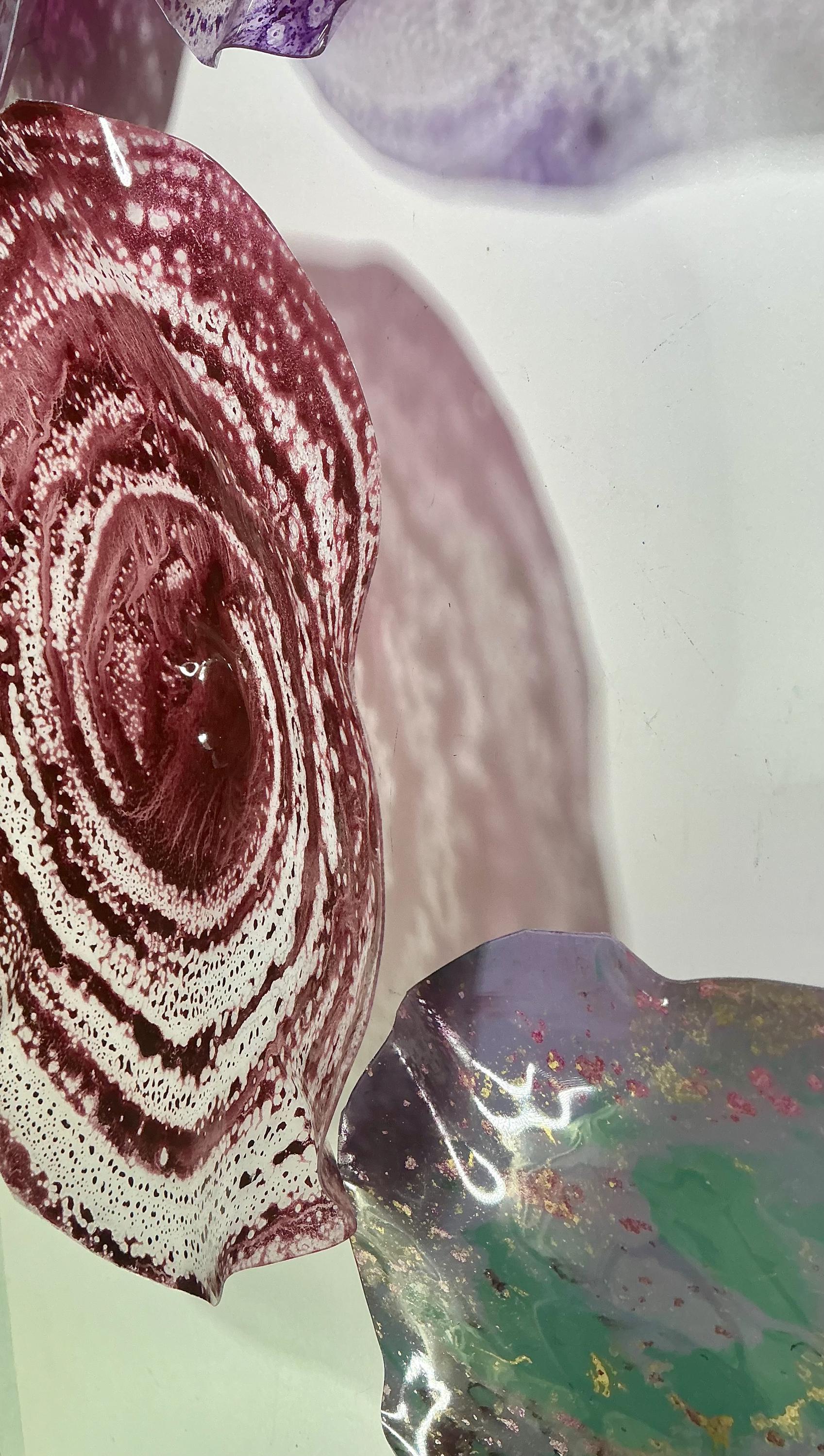 Our wall flowers are made from sustainable recycled PET as in a water bottle. Each piece contains at least 50% recycled polyethylene terphalate (rPET)