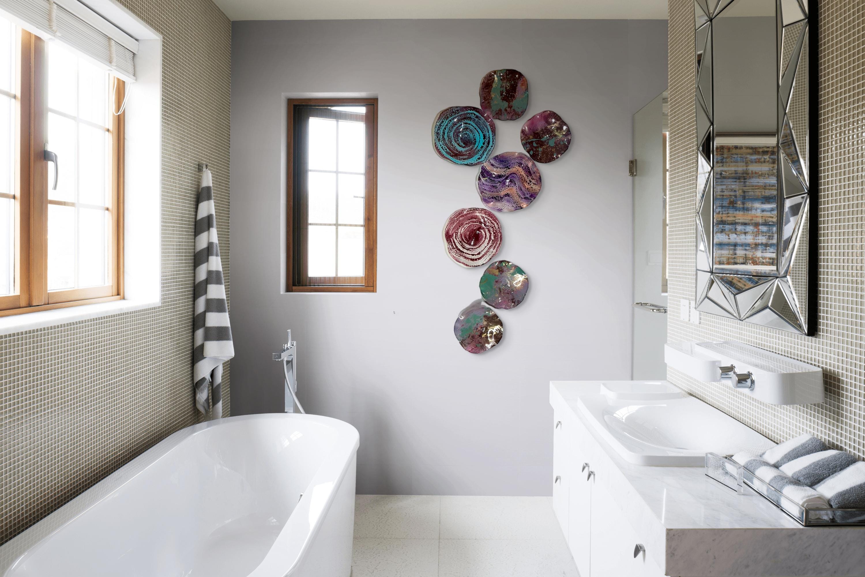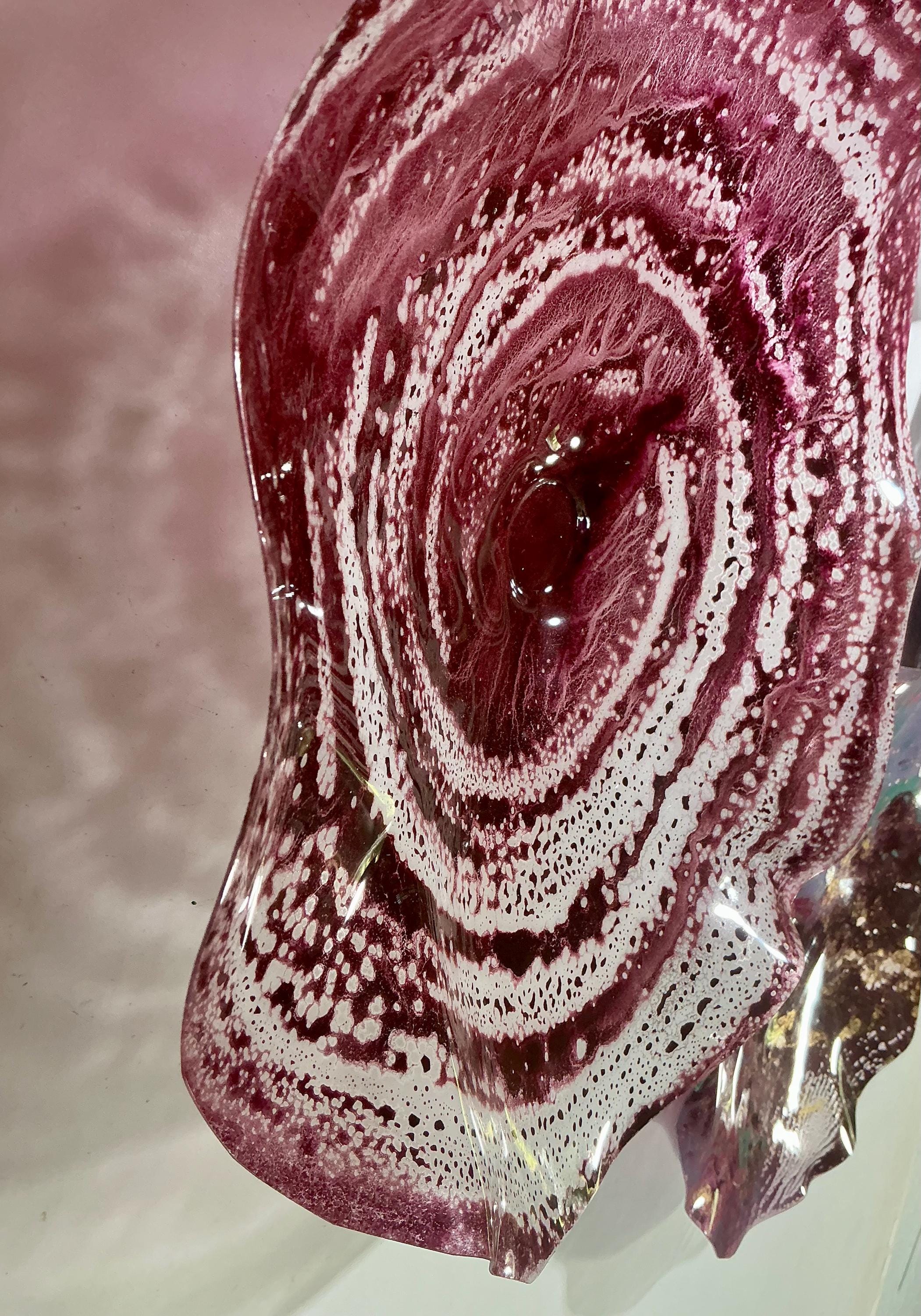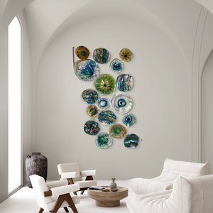 From the wall, they look like glass. The bonuses are that these flowers are light, unbreakable, environmentally friendly, easy to hang, and have no damage to the wall due to drilling for would-be-heavy traditional glass flowers.