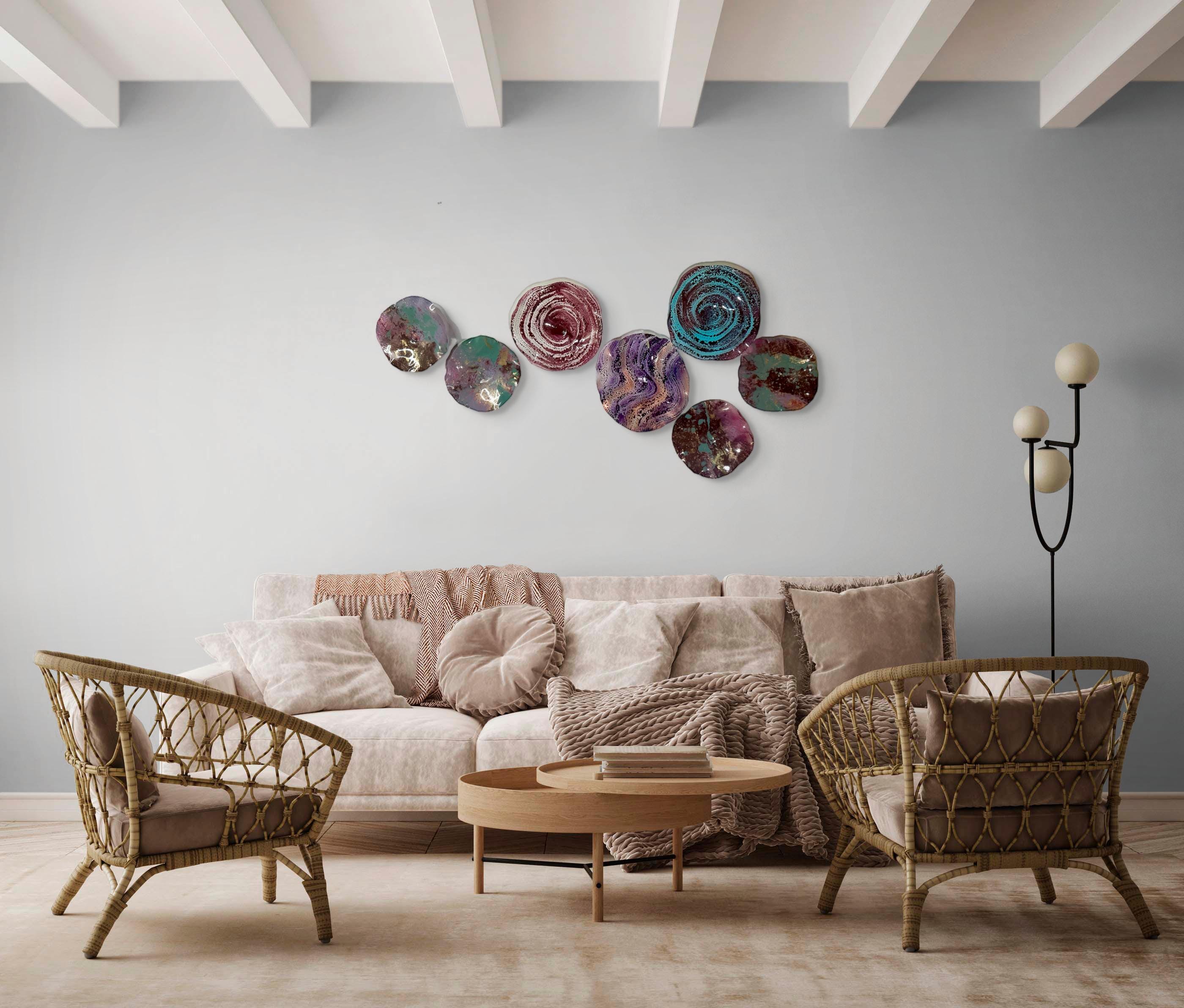 Each flower come with a hanger with a hole in the back for easy hanging. Each piece is light weight and all you will need is a nail or thumb tack to hang it from. If you can hang a picture, you can hang these plates. Each order comes with a set of hanging instructions. For outdoor hanging, please request our free outdoor hardware. For ceiling hanging please request velcro.