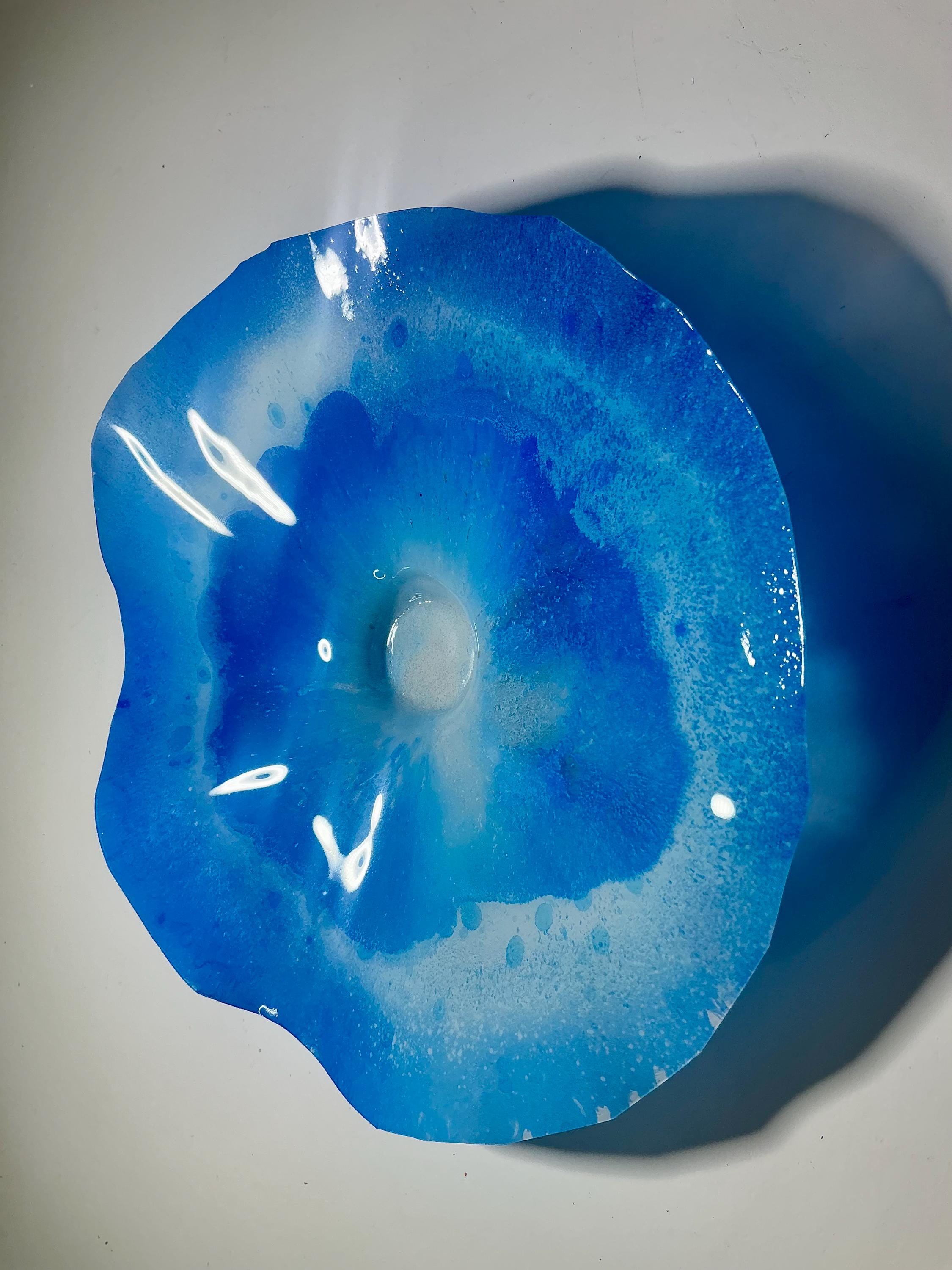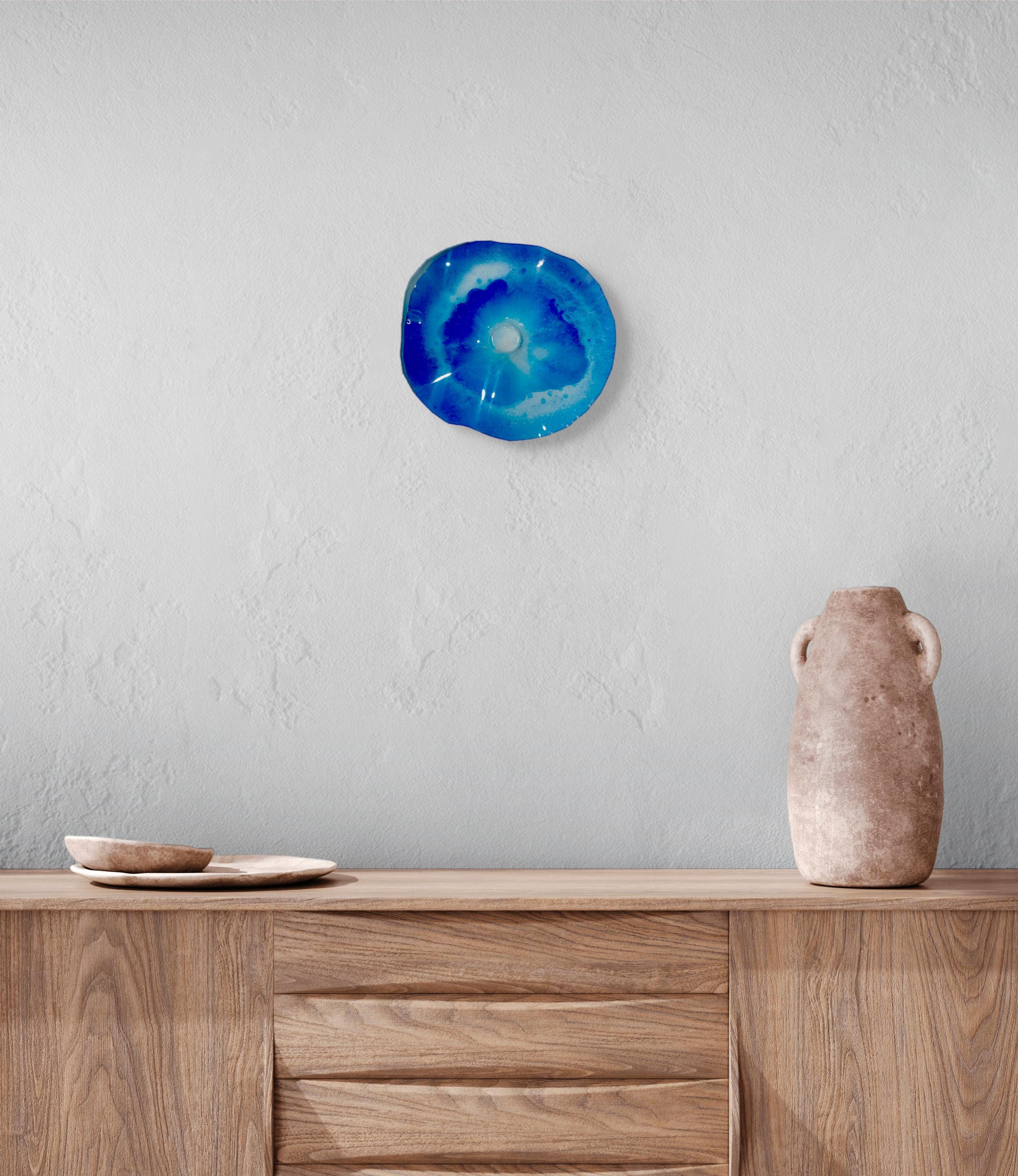 Nautical Decor: Handmade Blue and White Wall Plate in Recycled Plastic, Glass Look