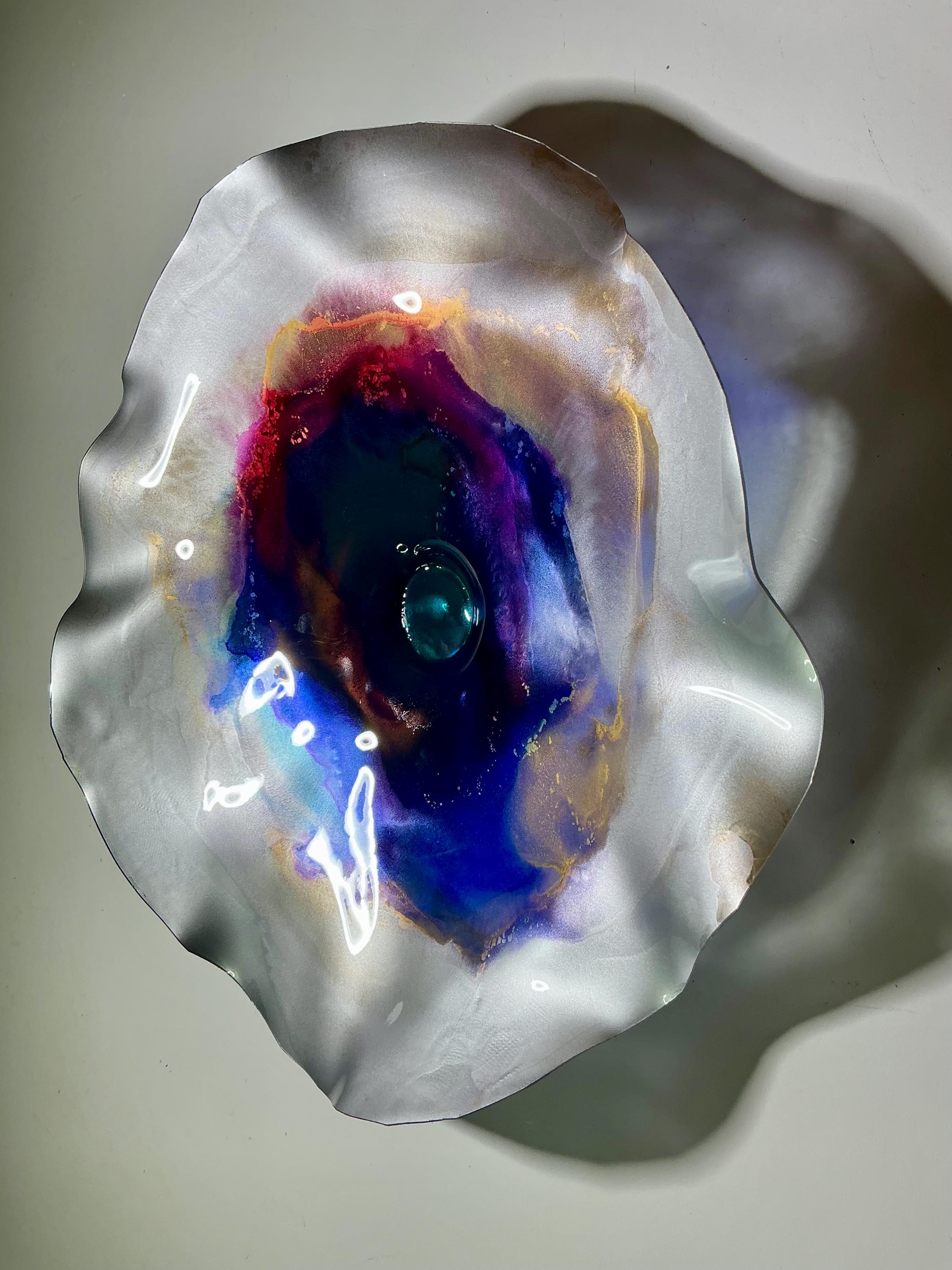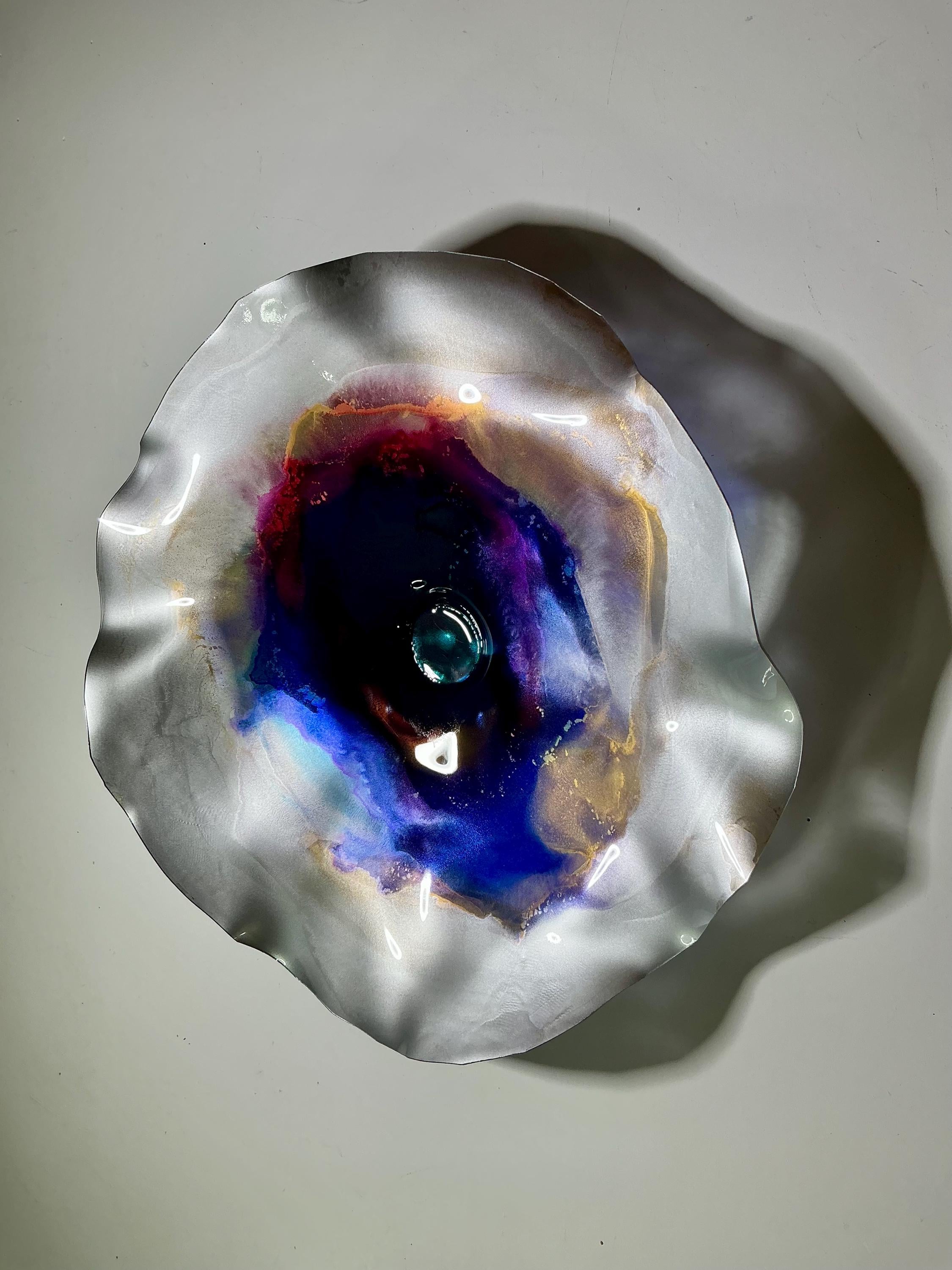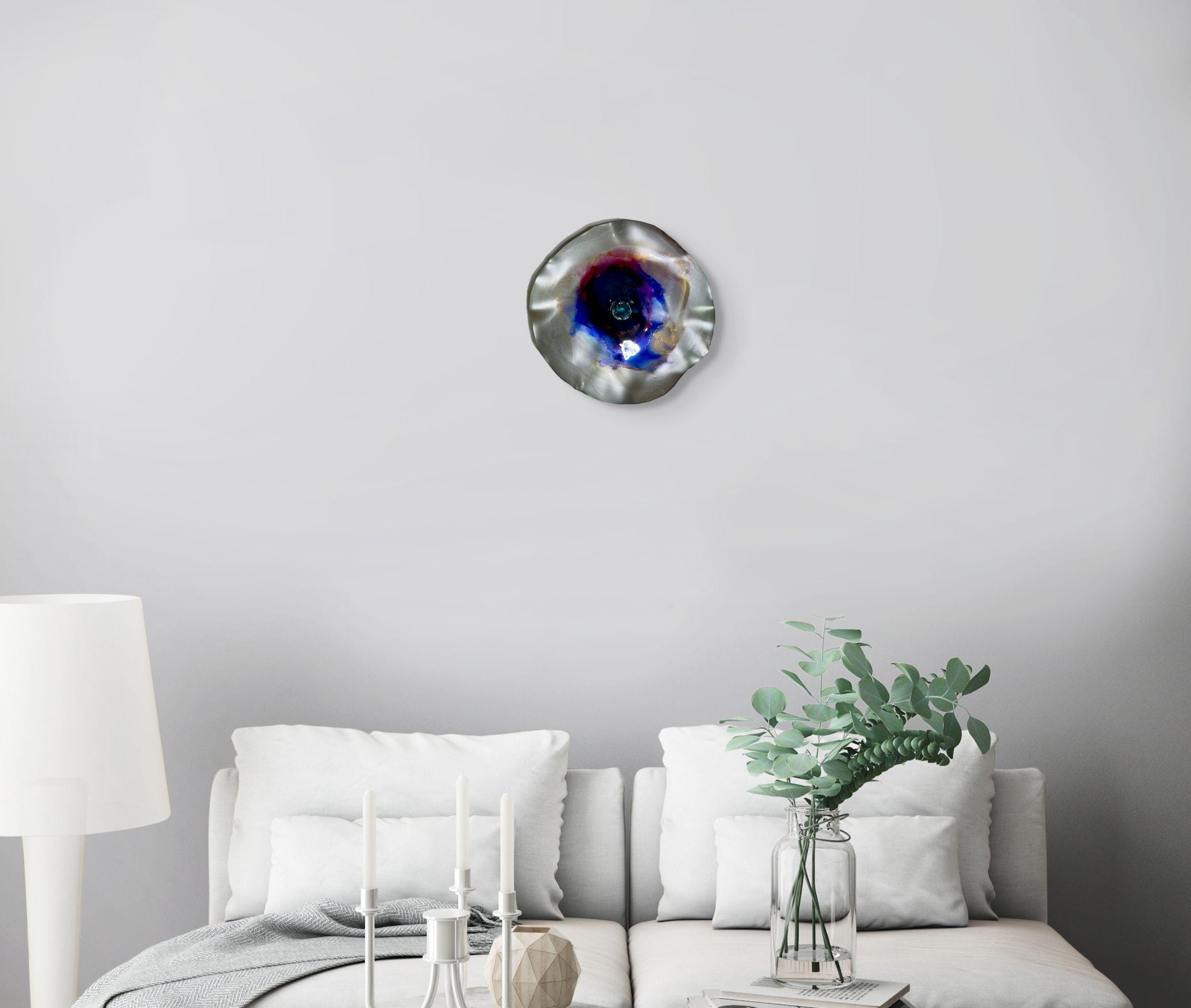 Transform your space with our stunning wall flower, handcrafted from recycled plastic. This eye-catching piece features a beautiful blend of silver, blue, purple, burgundy, and saffron yellow, mimicking the elegance of glass while being eco-friendly. Perfect for any interior design style, this unique wall art adds a pop of color and personality to your home. Elevate your décor with this sustainable masterpiece that is sure to impress. Ideal for living rooms, bedrooms, or creative spaces!