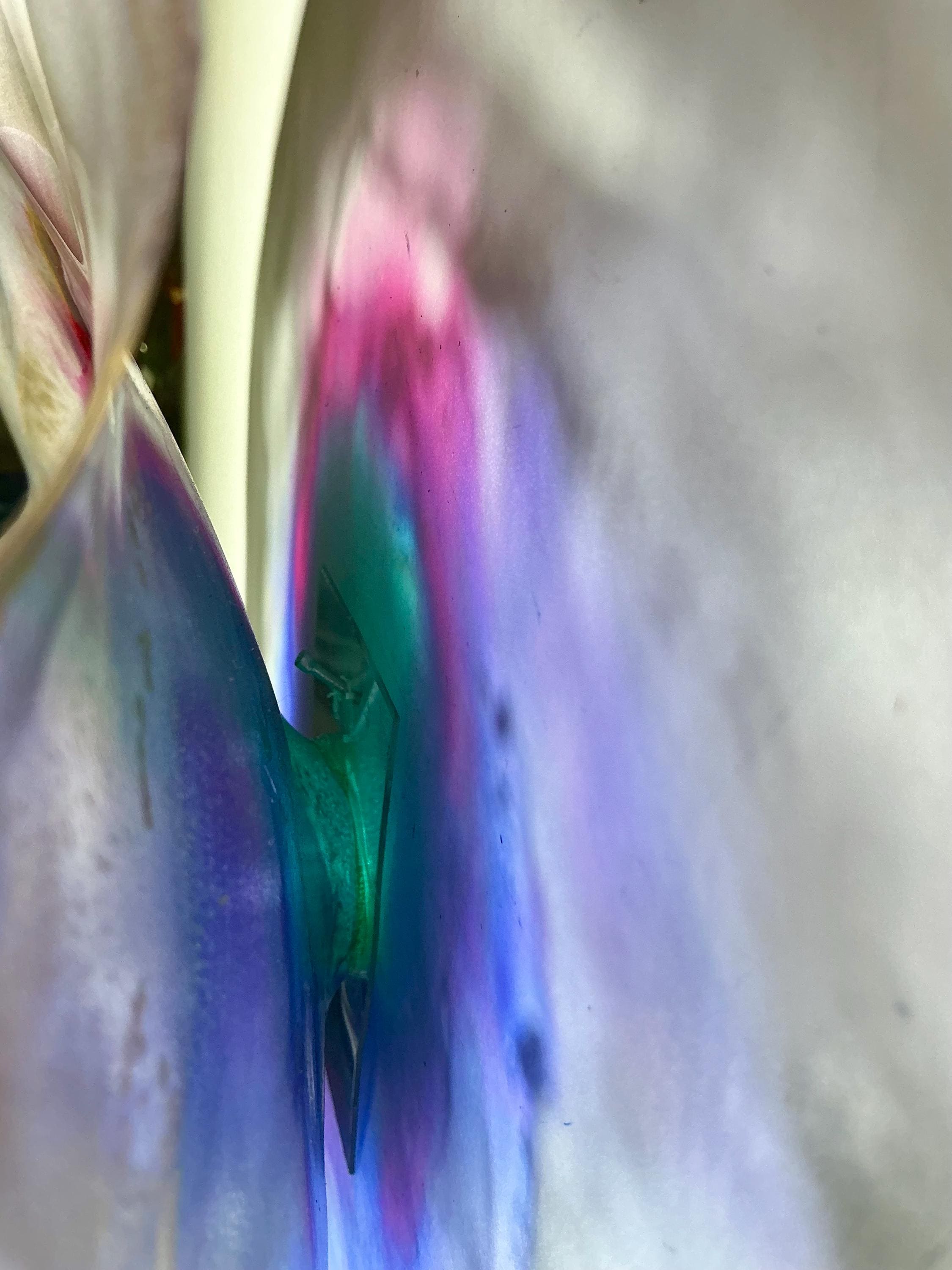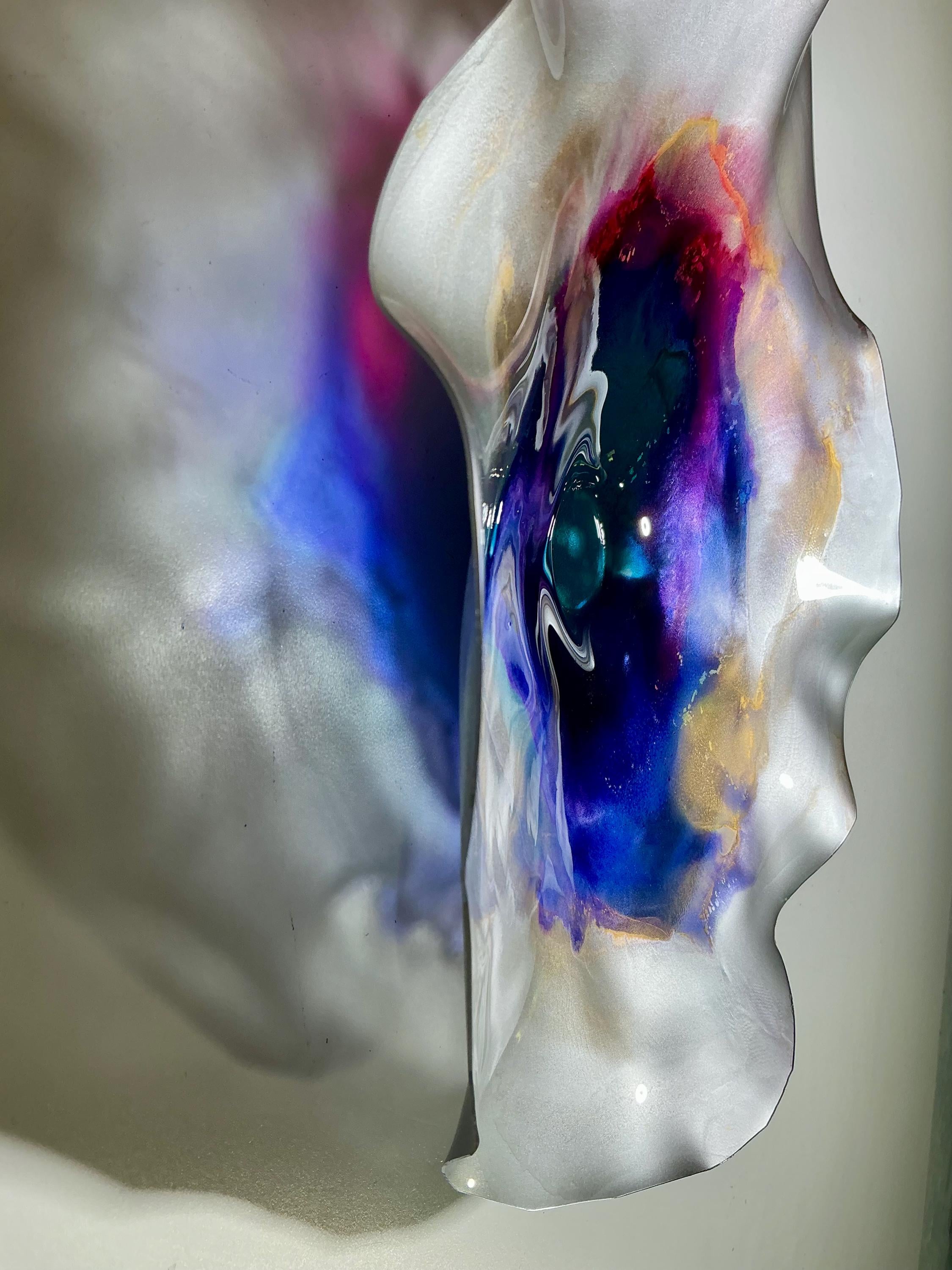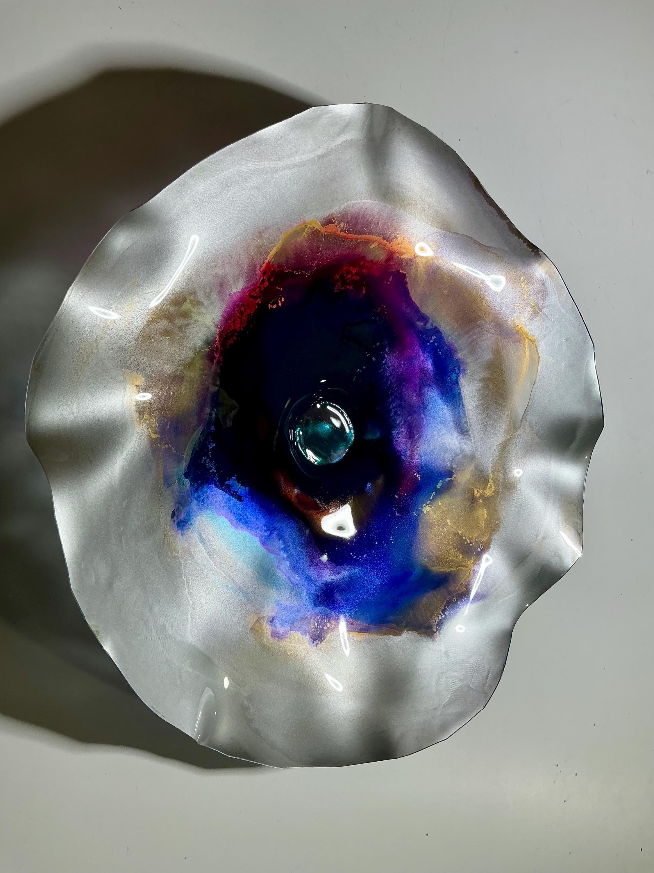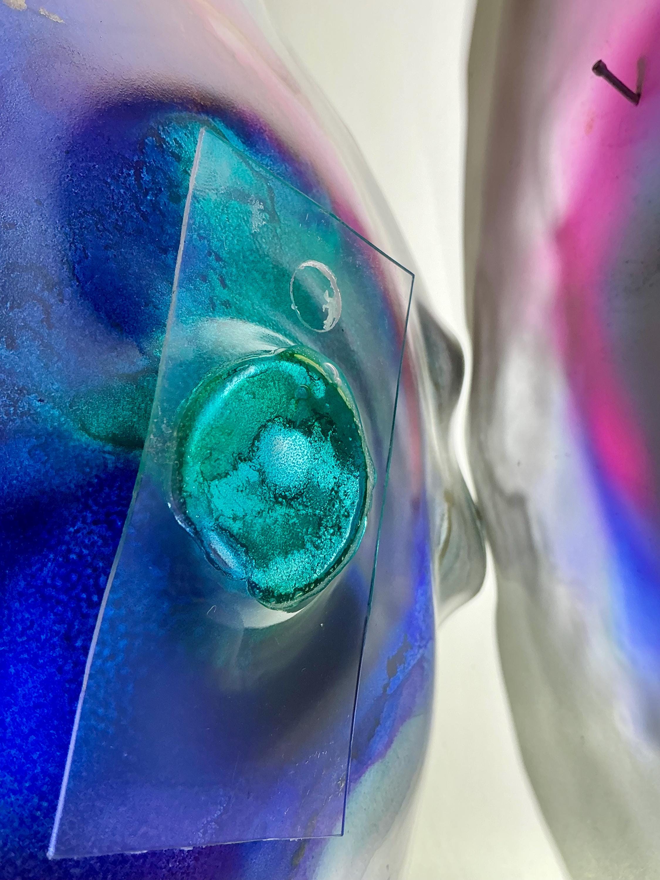 Each collectible piece is unique, no two are alike. This permanent, colorful, eye catching art looks and feels like glass. It shimmers in the light resembling water. They are very DURABLE AND LIGHTWEIGHT. This flower is easy to hang all weather and UV resistant. Great for indoor or outdoor decorating.