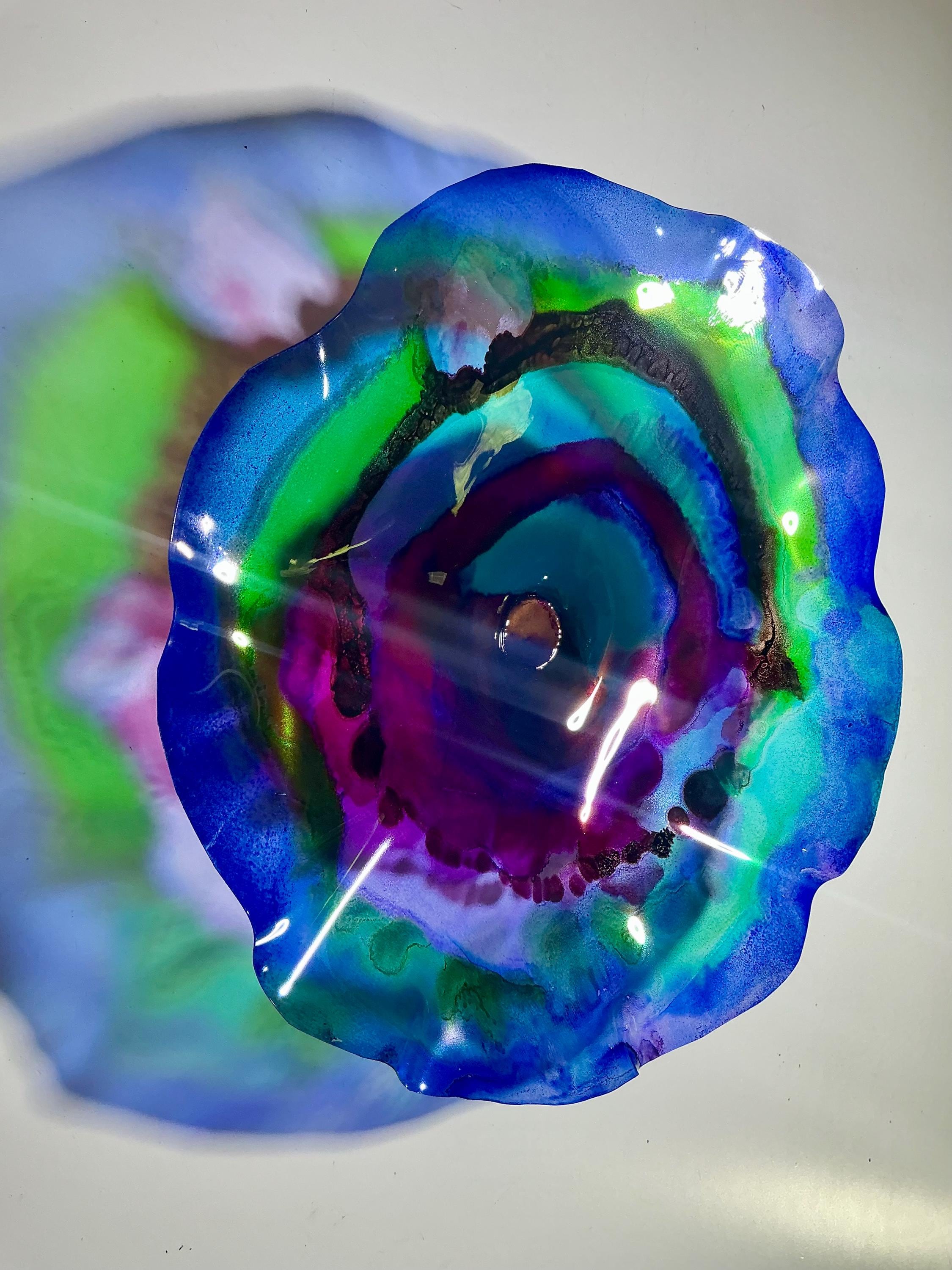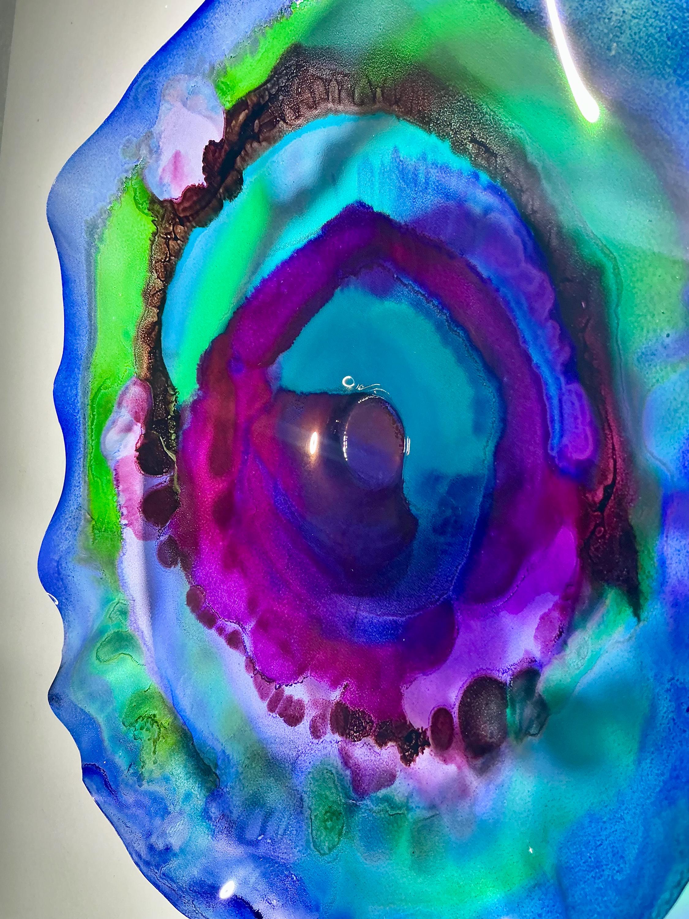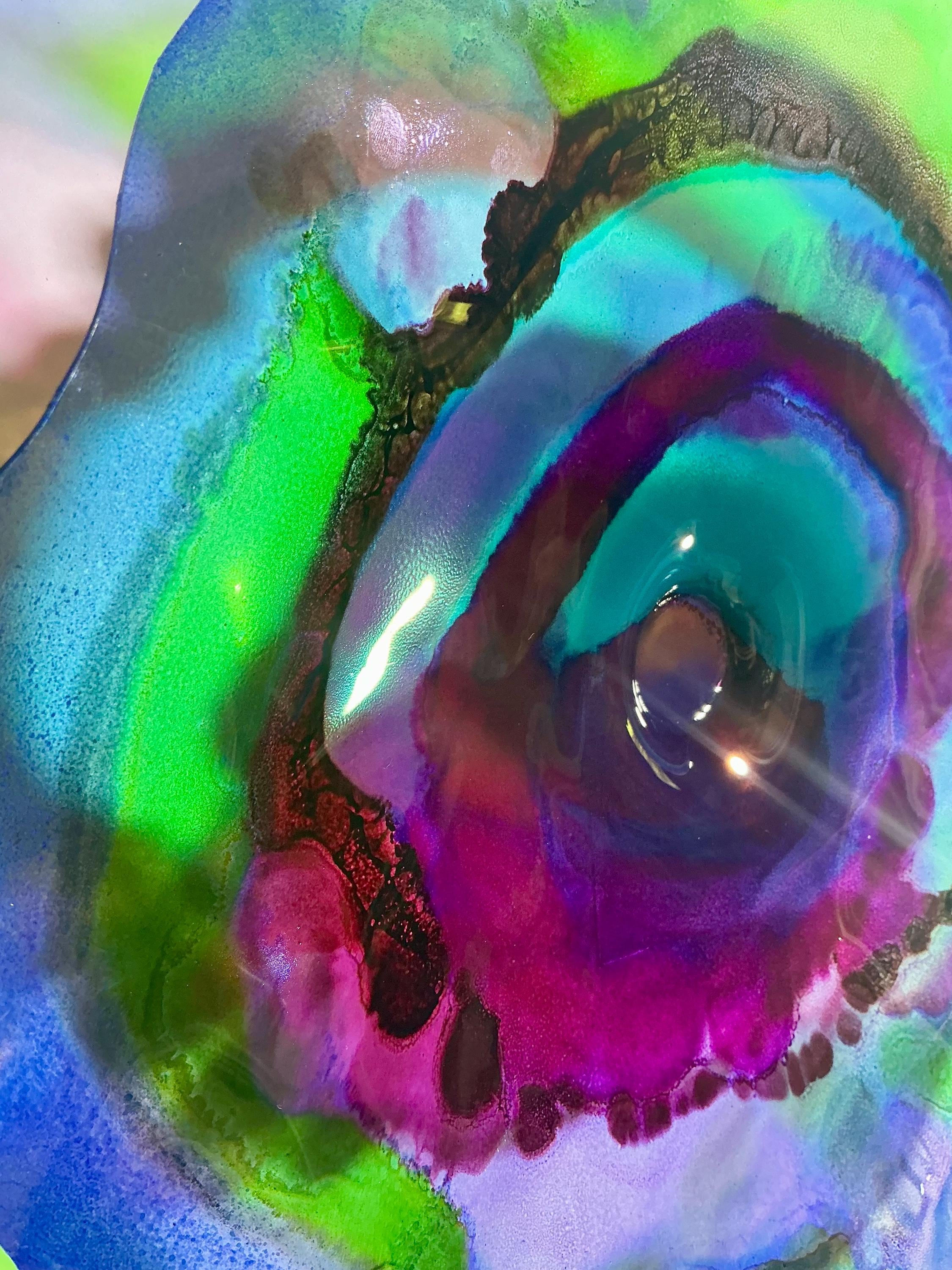 Each collectible piece is unique, no two are alike. This permanent, colorful, eye catching art looks like glass. It shimmers in the light resembling water. They are very DURABLE AND LIGHTWEIGHT. Great for indoor or outdoor decorating.