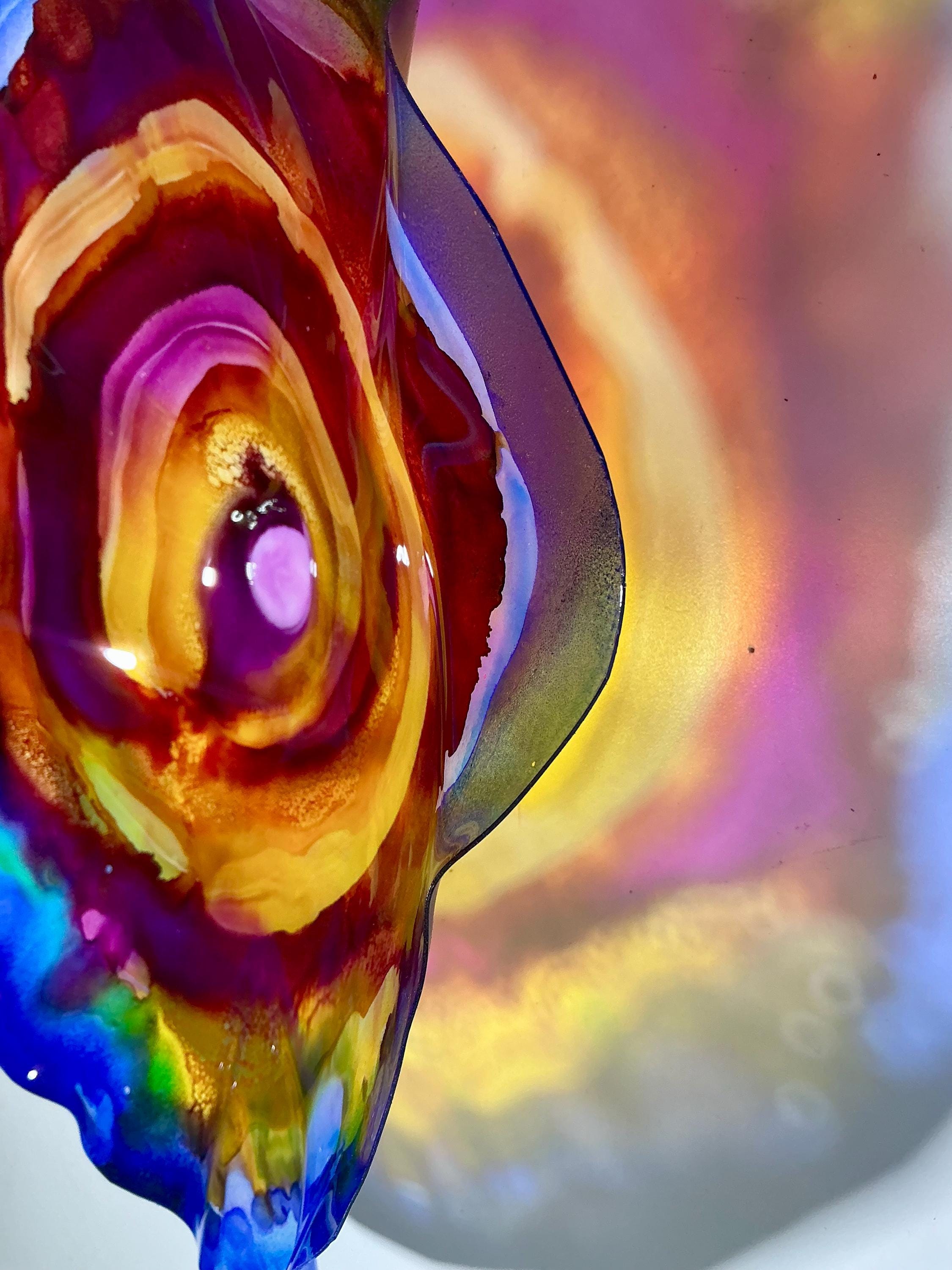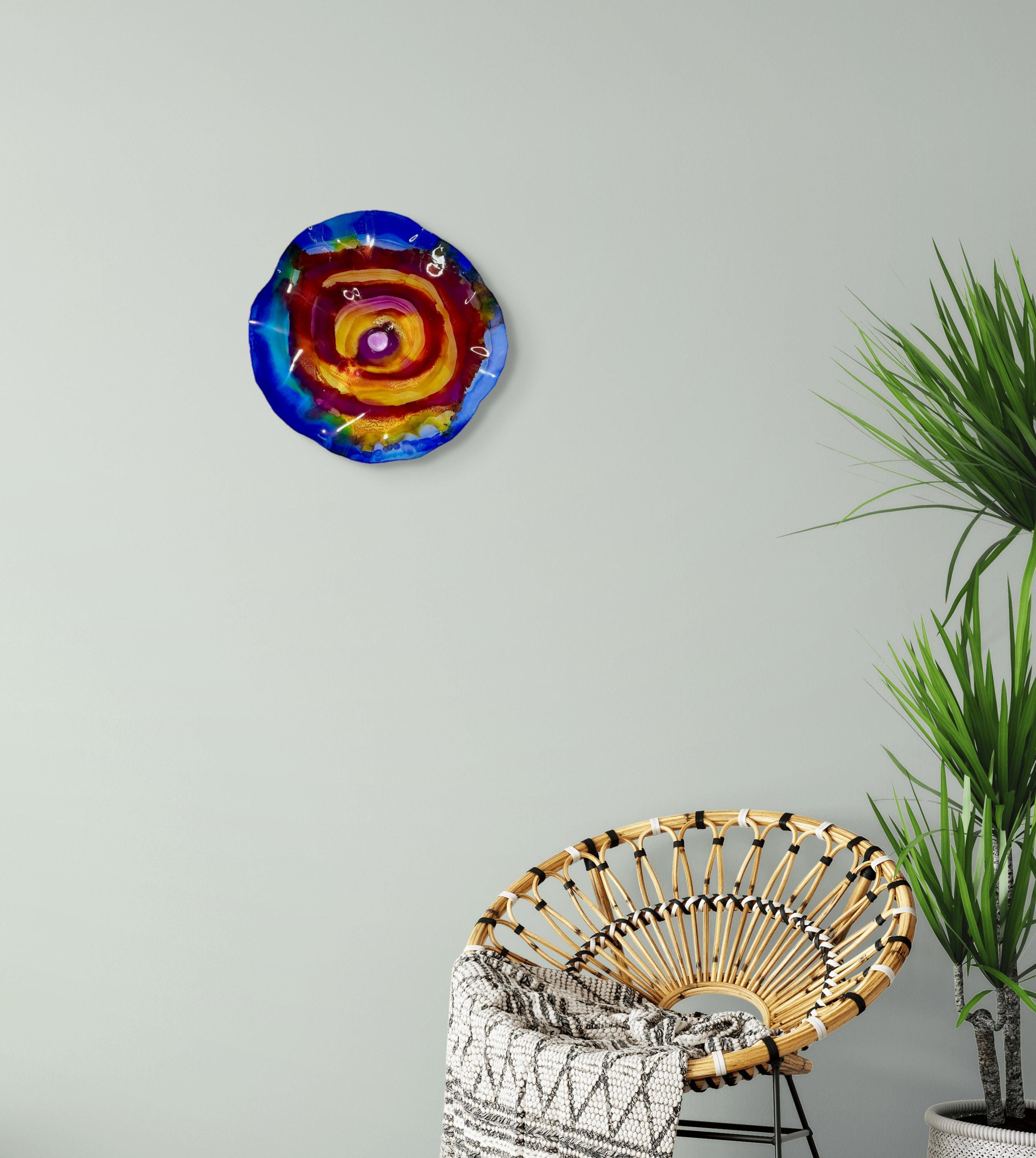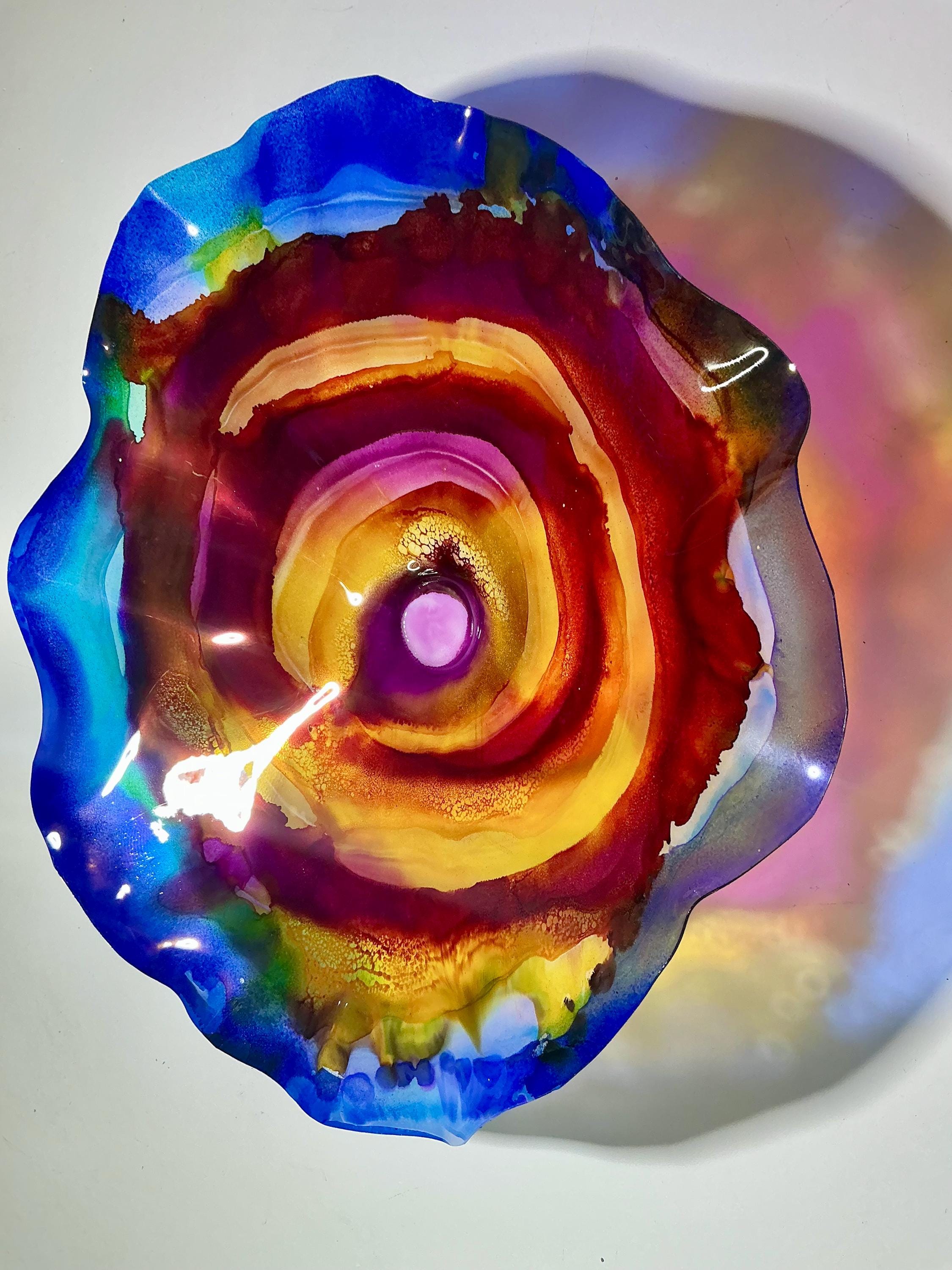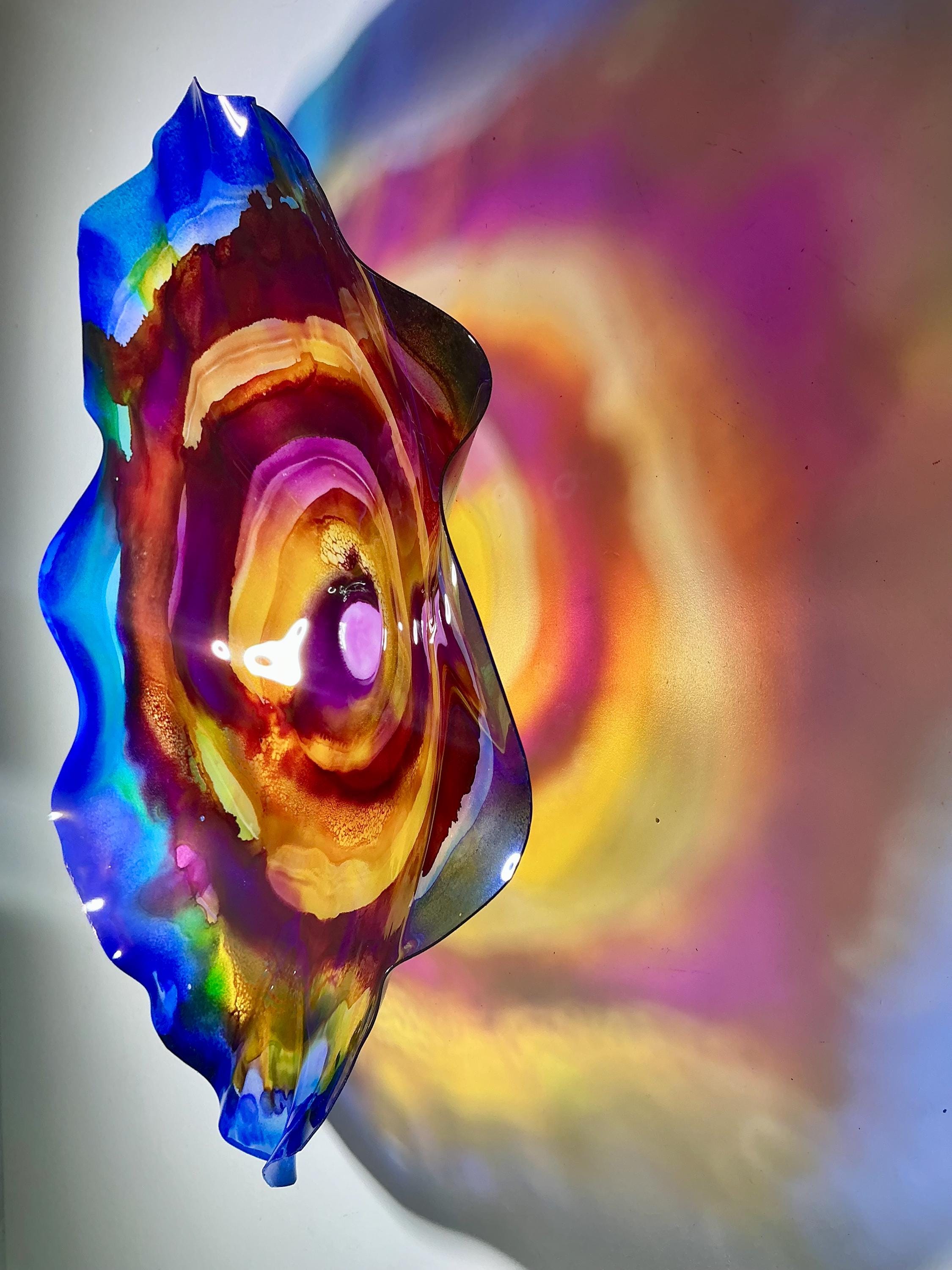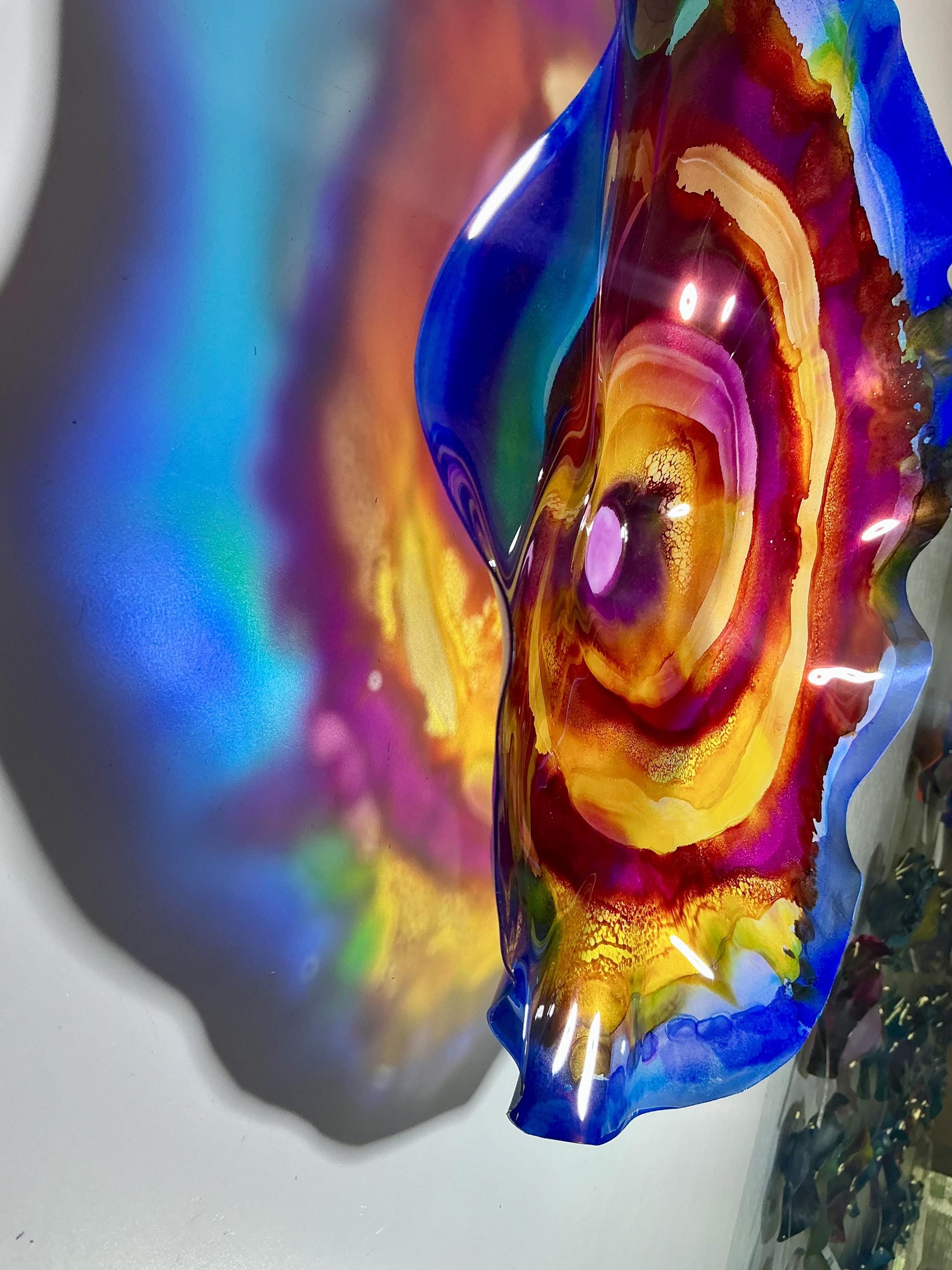 Elevate your space with our original handmade wallflower! Crafted from sustainable plastic, this stunning piece features a beautiful blend of blue, burgundy, yellow, and purple, mimicking the appearance of delicate glass. Perfect for adding a splash of color to any room, this wall art combines eco-friendly materials with artistic design. Each piece is unique and made with love, ensuring you add a one-of-a-kind accent to your home decor. Brighten your walls with our eye-catching creation today!