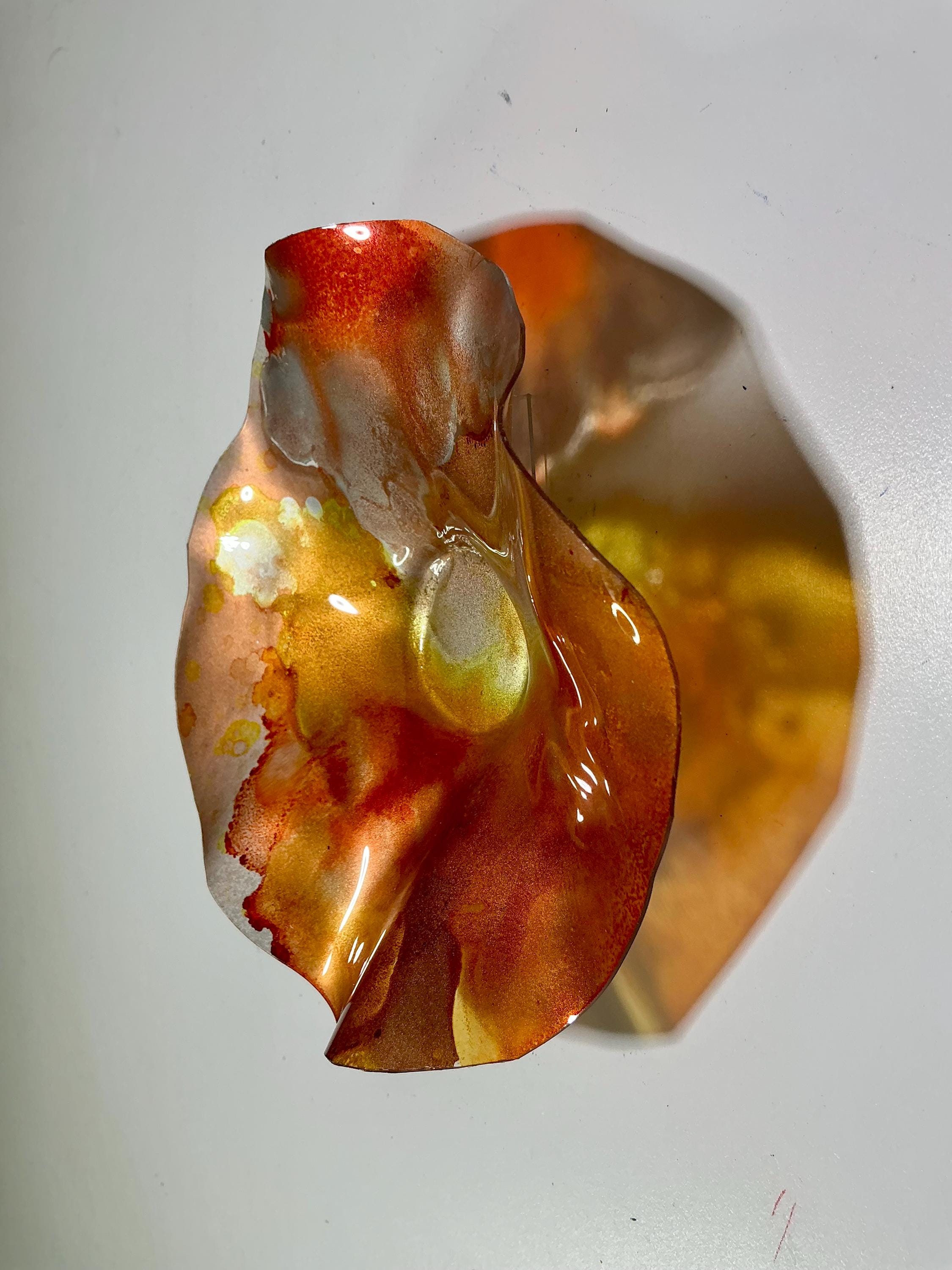 Unique 5-Inch Wallflower | Shades of Orange and Silver | Handmade Upcycled Plastic Art