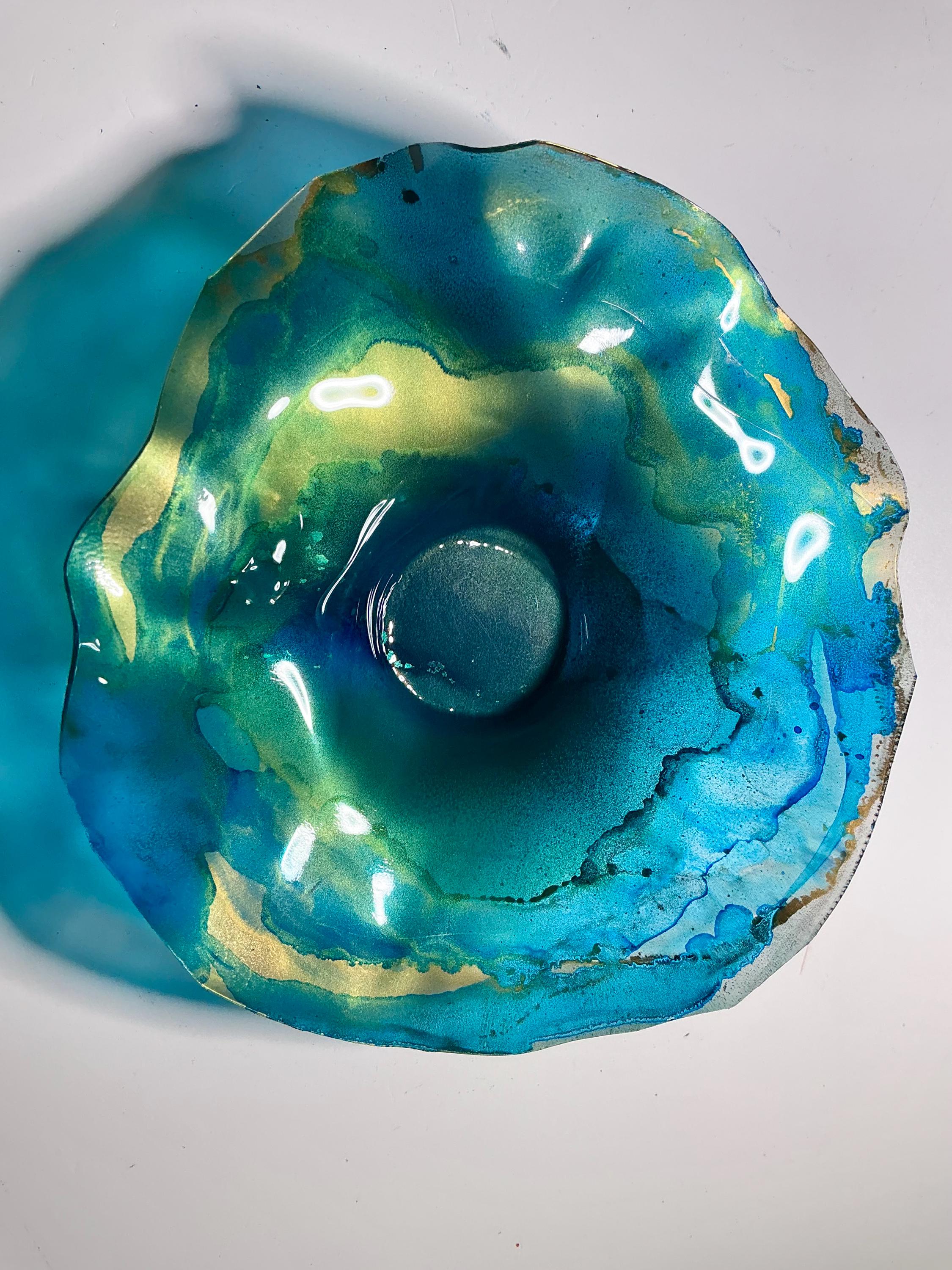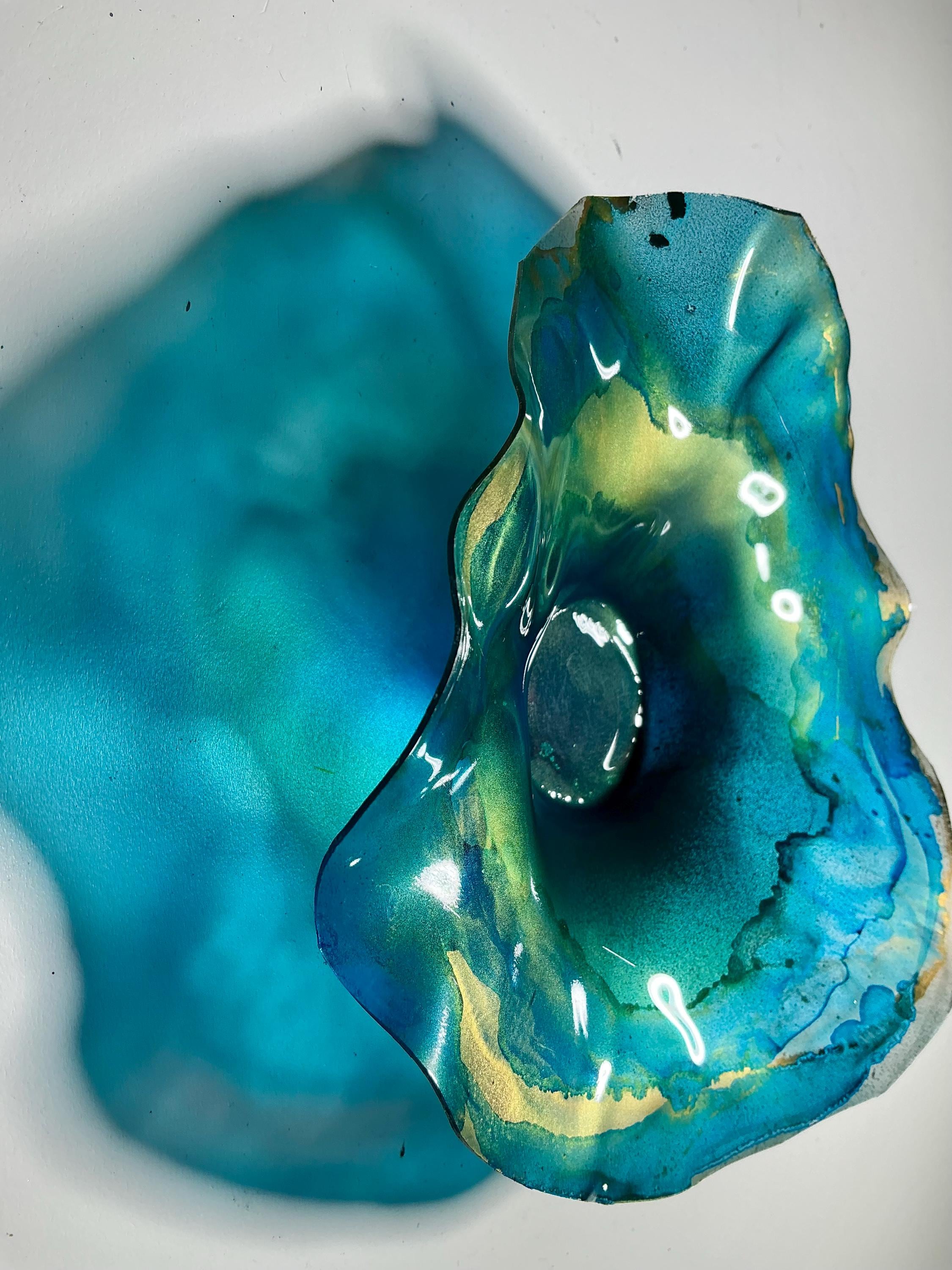 Add a touch of elegance to your space with our Teal and Gold Extra Small Wall Flower! This exquisite piece is handmade to mimic the beauty of glass, yet it's crafted from recycled plastic material for an eco-friendly flair. Perfect for small wall spaces, it adds a pop of color and unique charm to any decor. Bring a sustainable, artistic vibe to your home with this stunning wall flower. Great for gifts or as a delightful accent in your own living space!