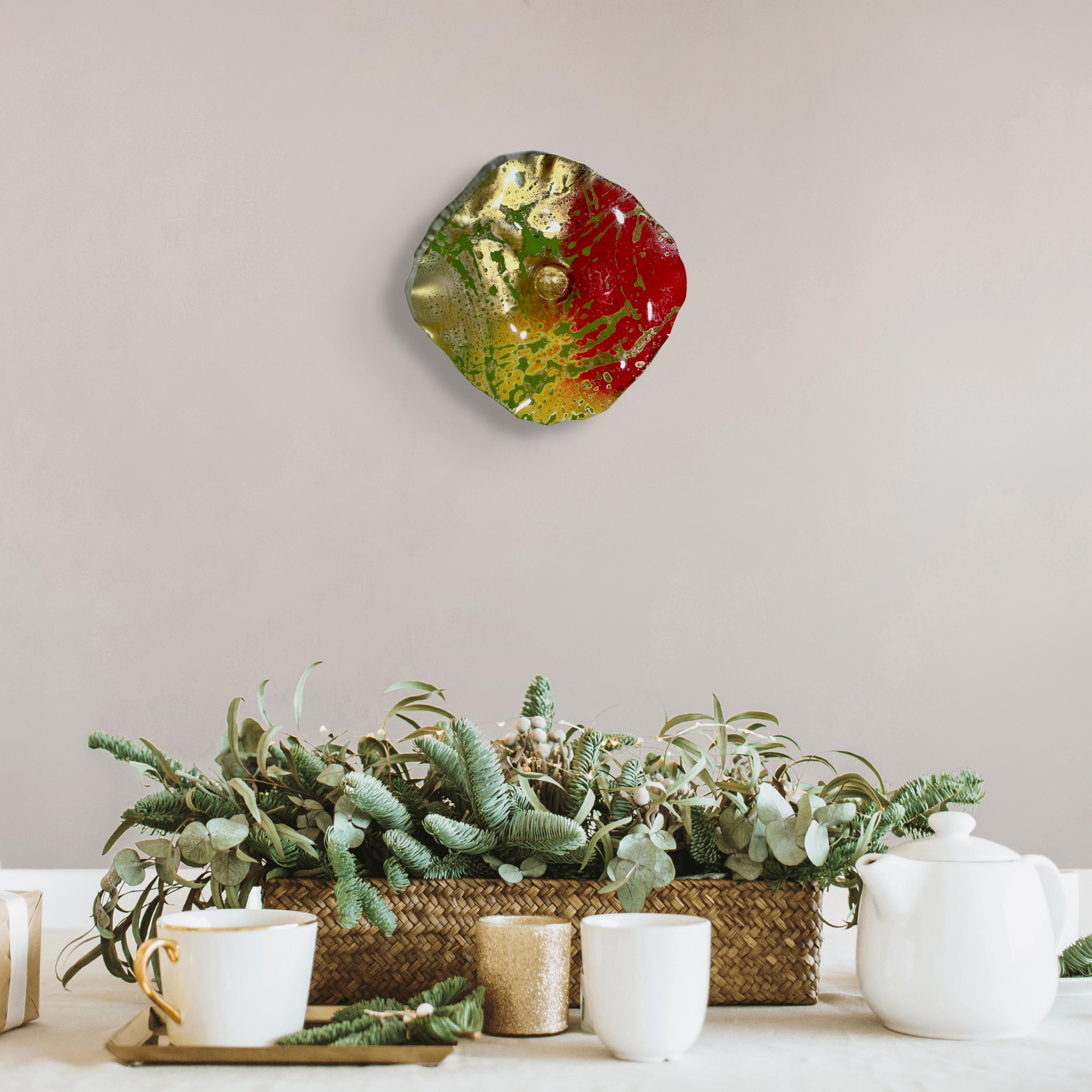 Modern 9-Inch Flower Art in Gold, Red & Green | Eco-Friendly Decor That Resembles Glass