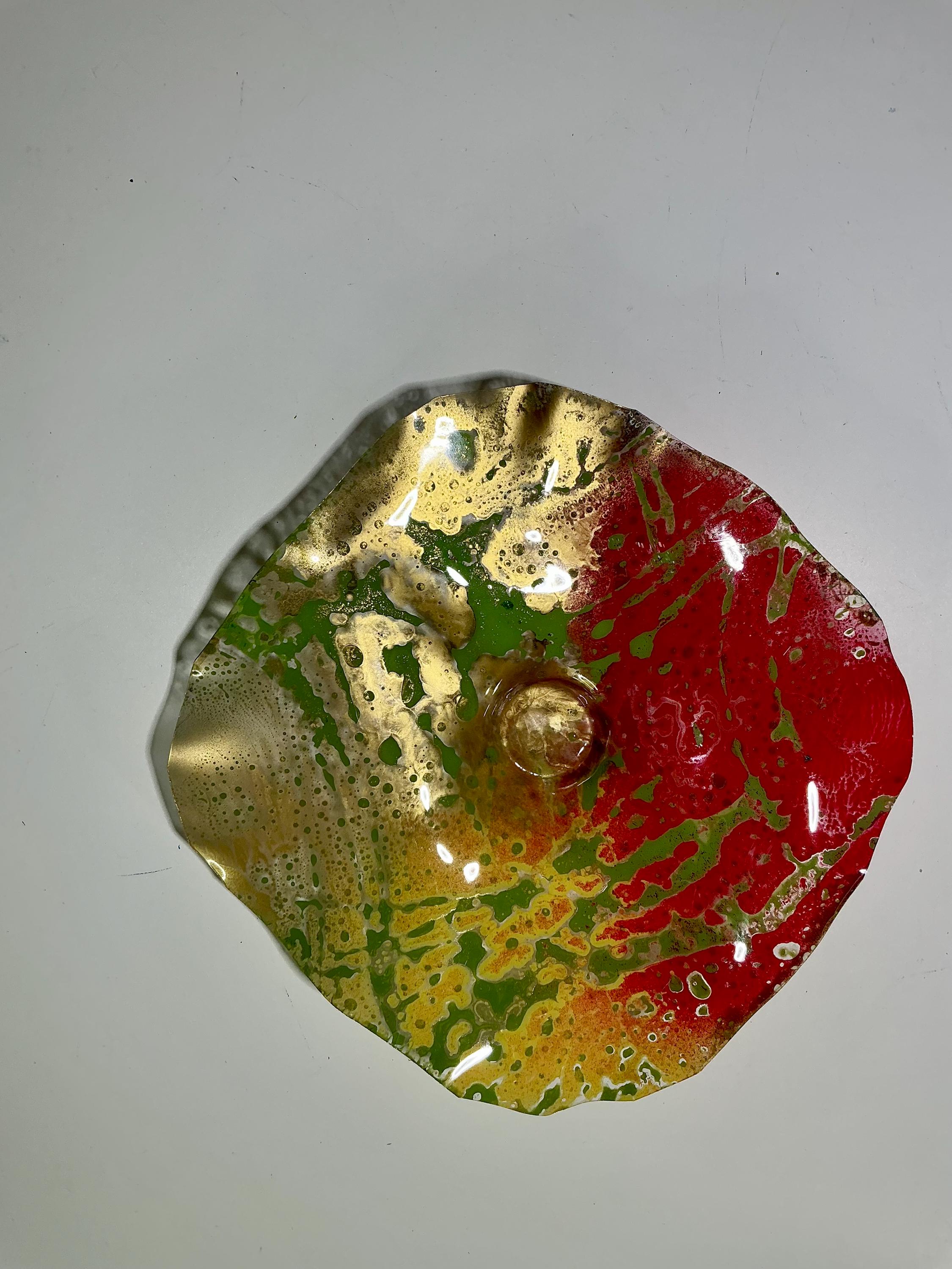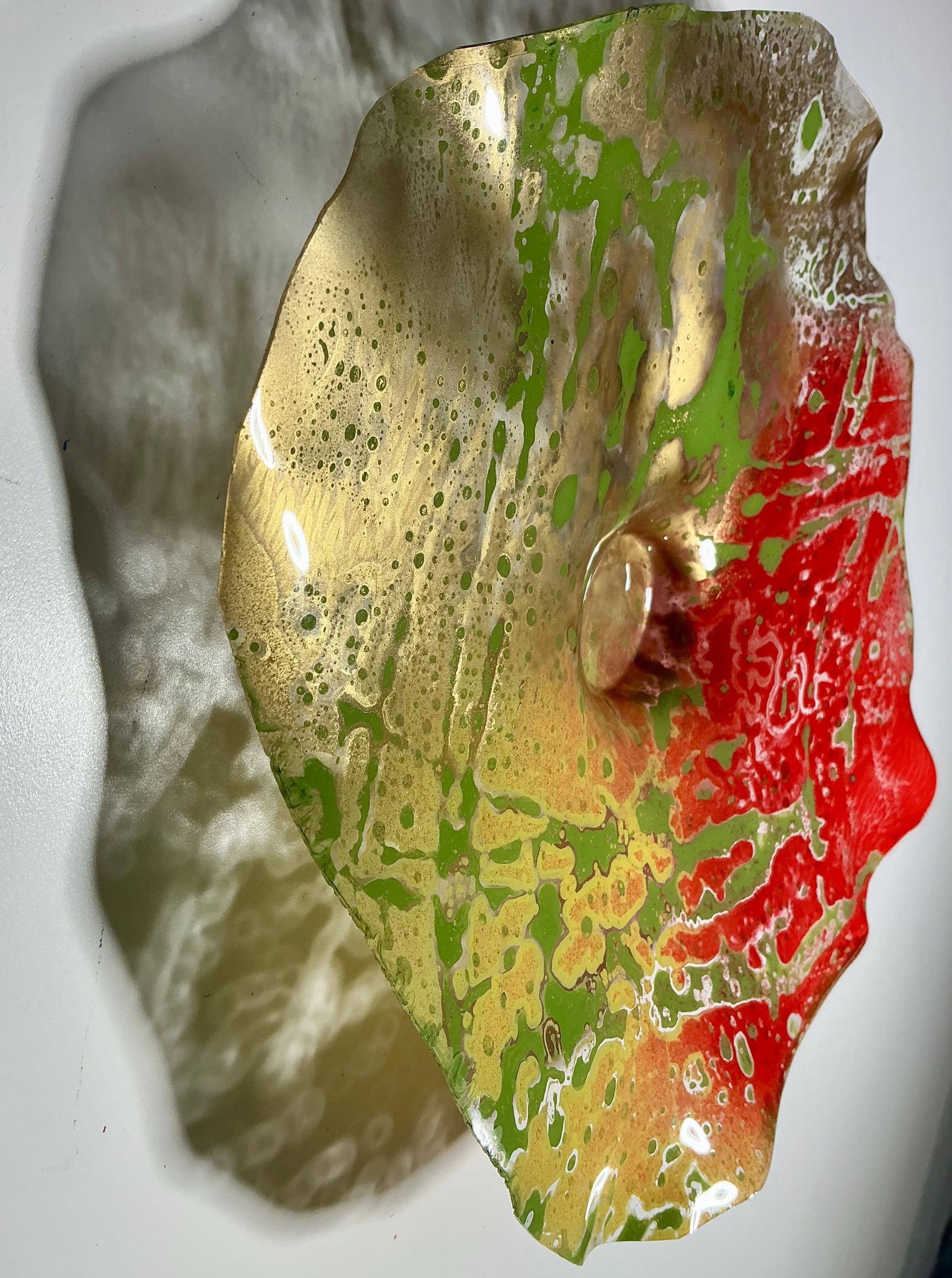 Elevate your space with our stunning 9-inch wallflower, handcrafted from recycled plastic! This beautiful decor piece features a vibrant blend of gold, red, green, and yellow, giving it a unique glass-like appearance. Perfect for adding a touch of eco-friendly elegance to any room, it’s an eye-catching focal point that celebrates sustainability. Enhance your home or gift it to someone special – this wallflower is sure to impress!