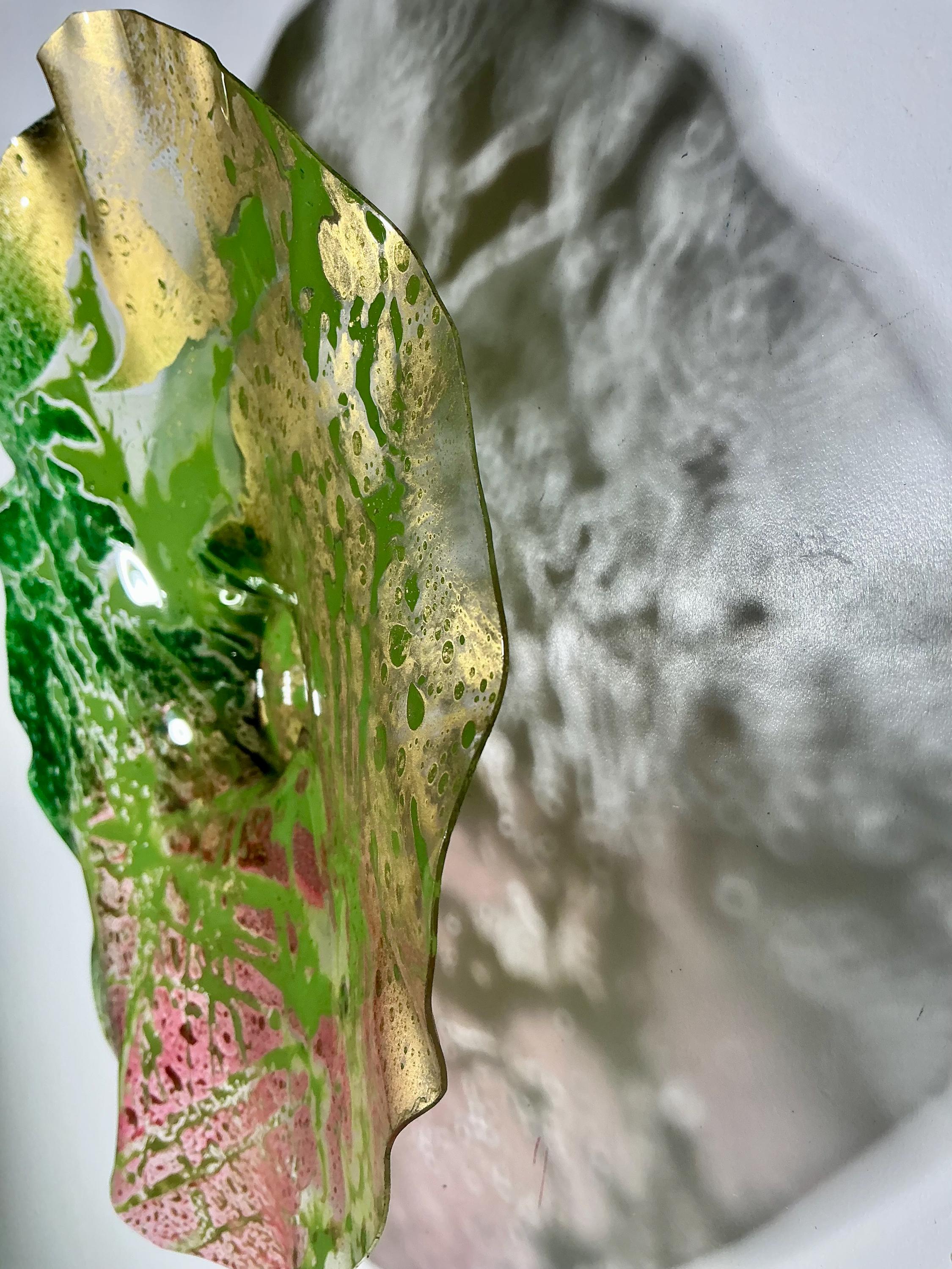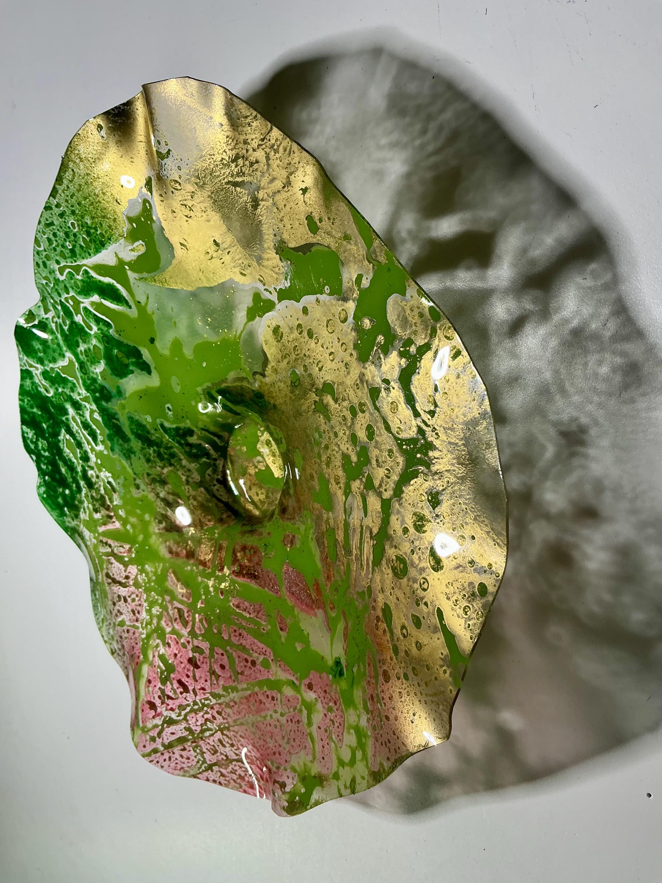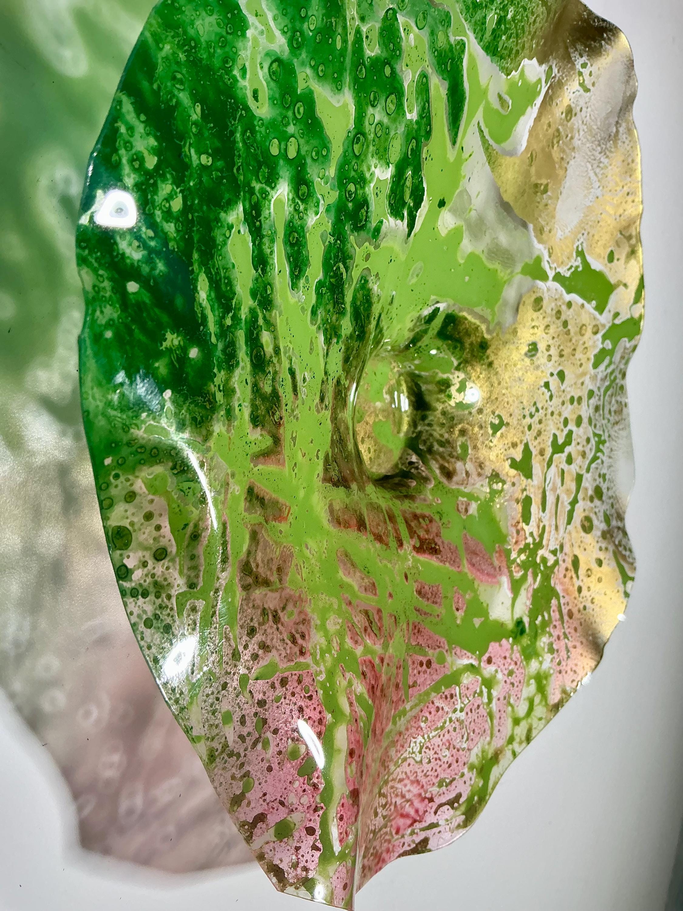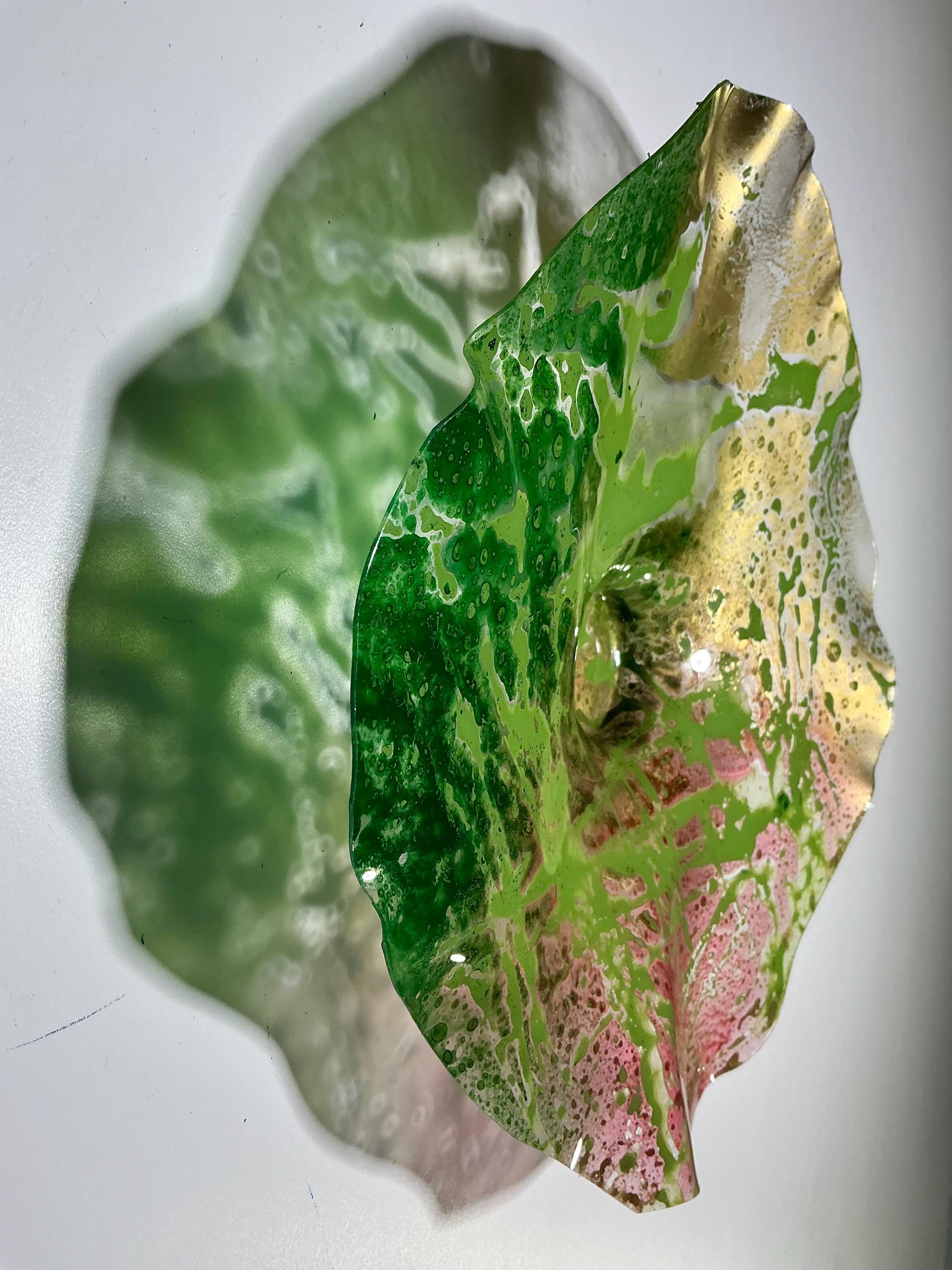 Beautiful 9" Wallflower | Green Pink Gold Handmade Decor | Glass-Look Boho Home Art
