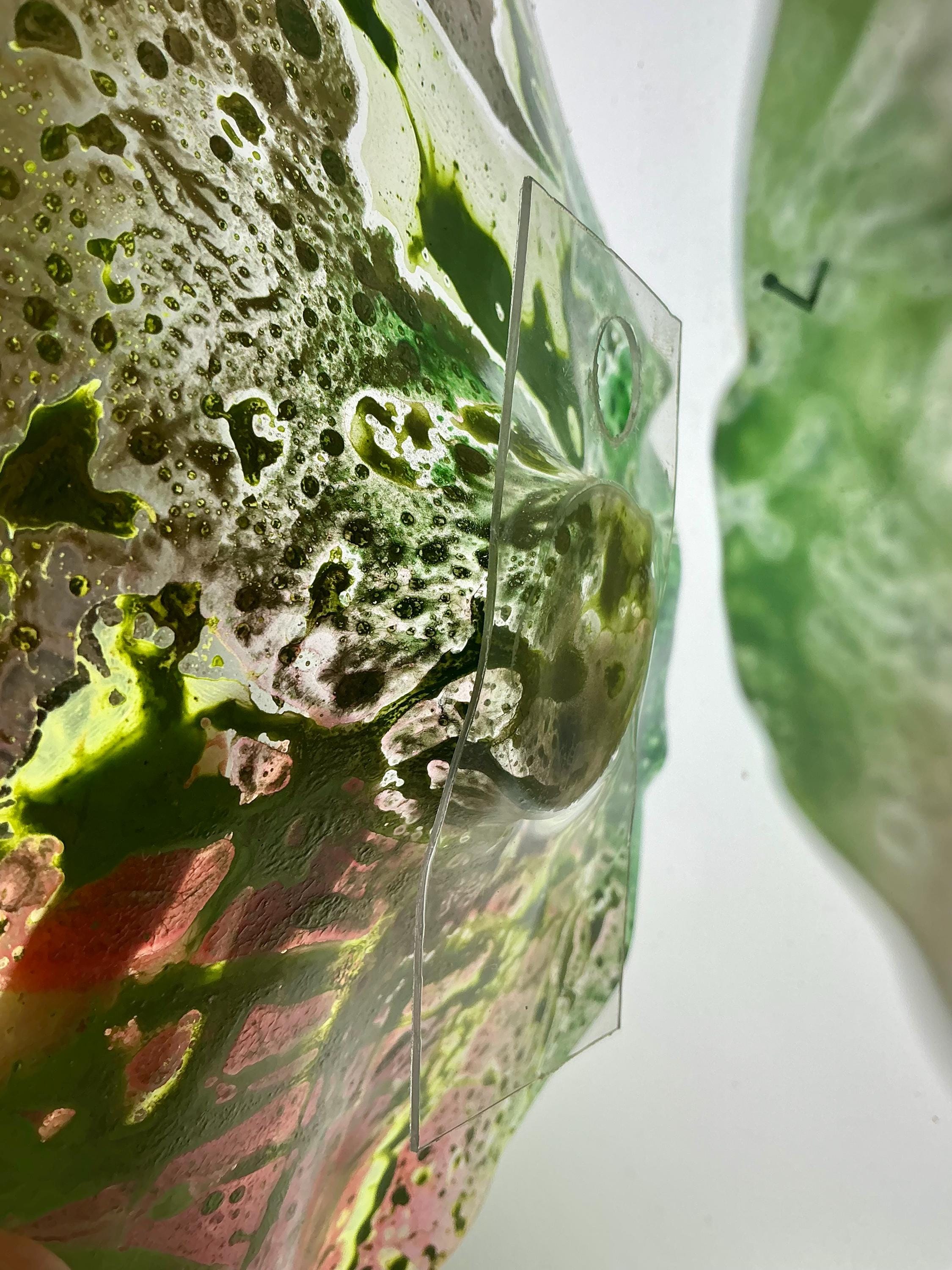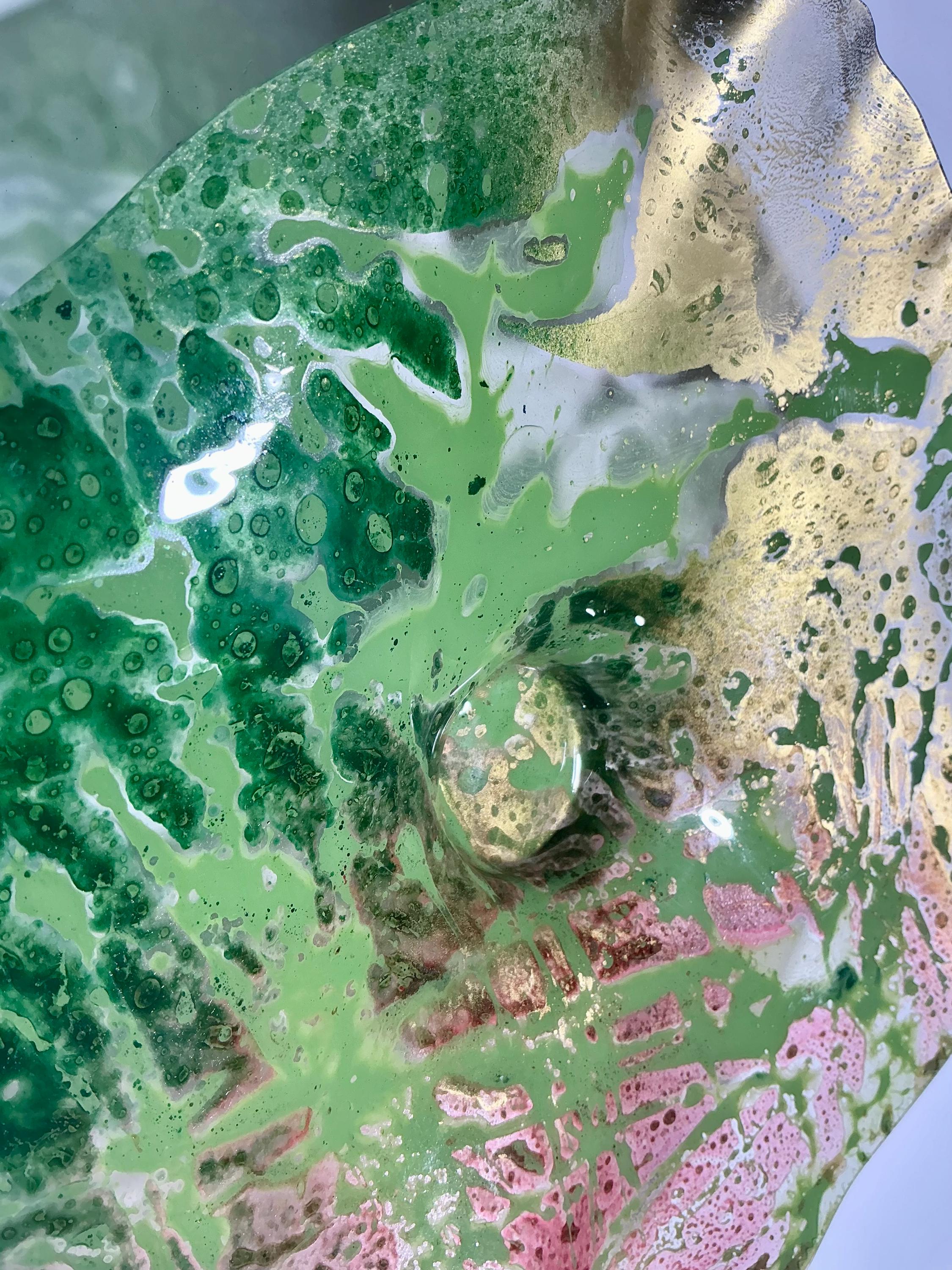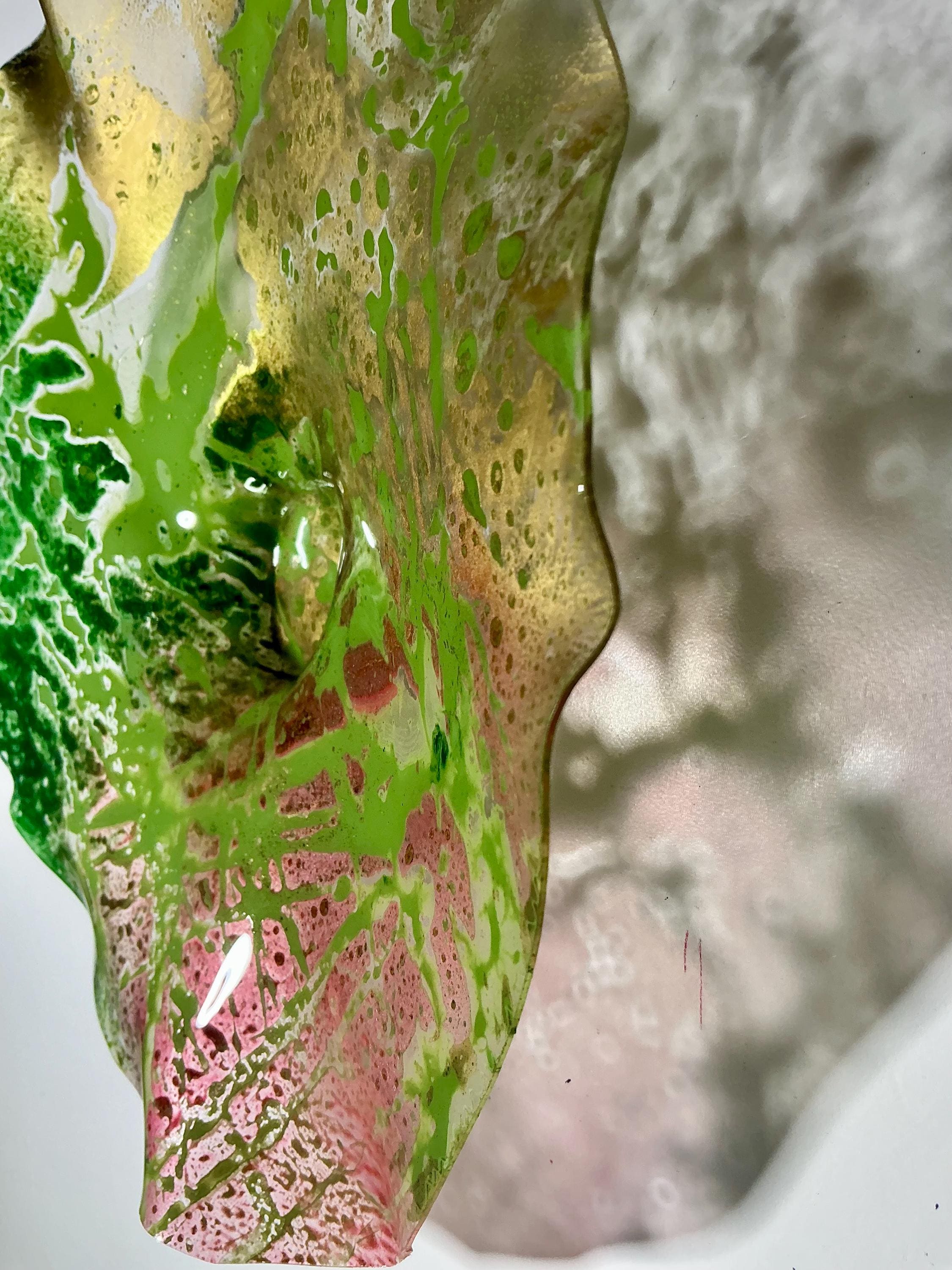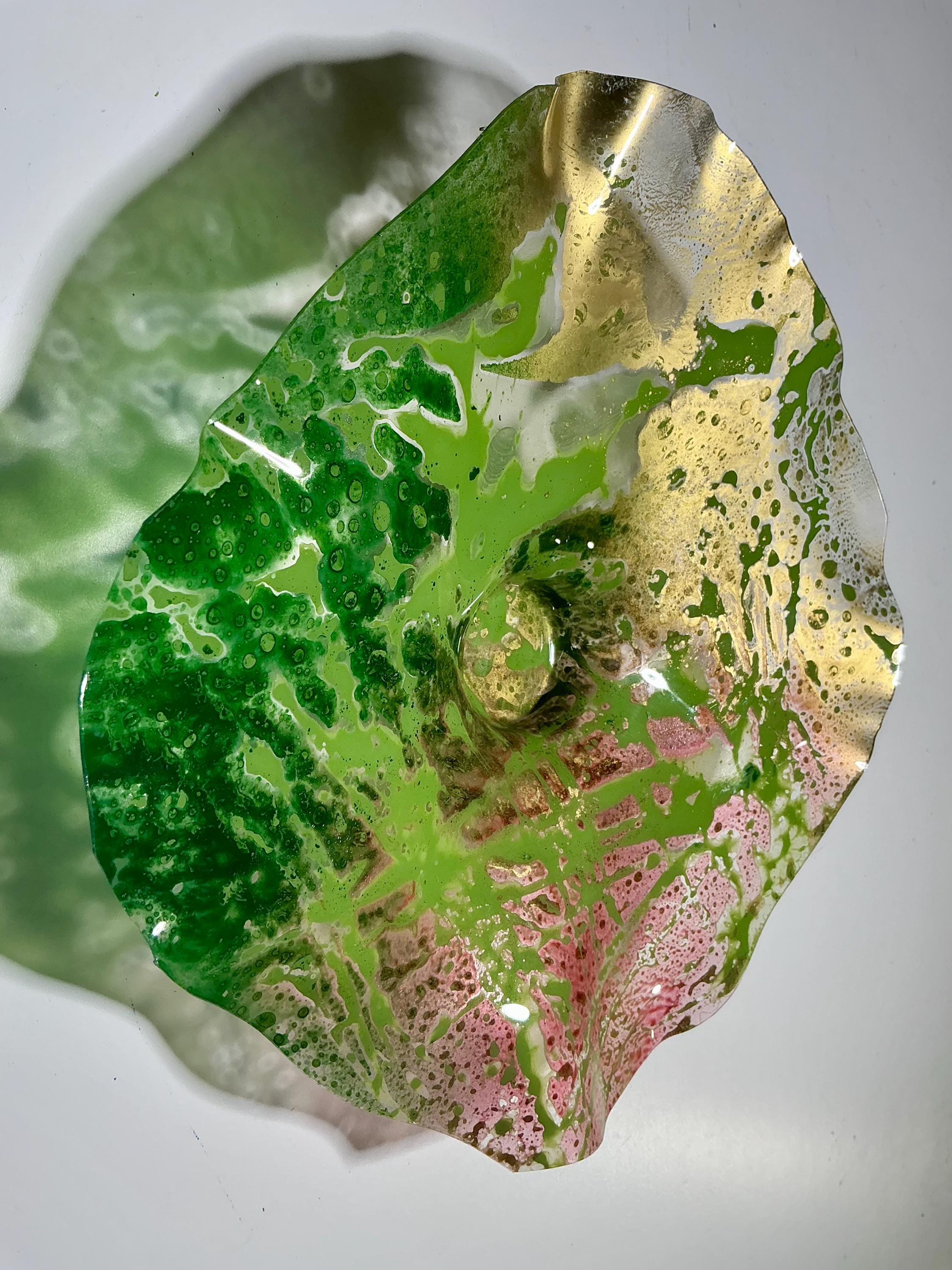 Beautiful 9" Wallflower | Green Pink Gold Handmade Decor | Glass-Look Boho Home Art