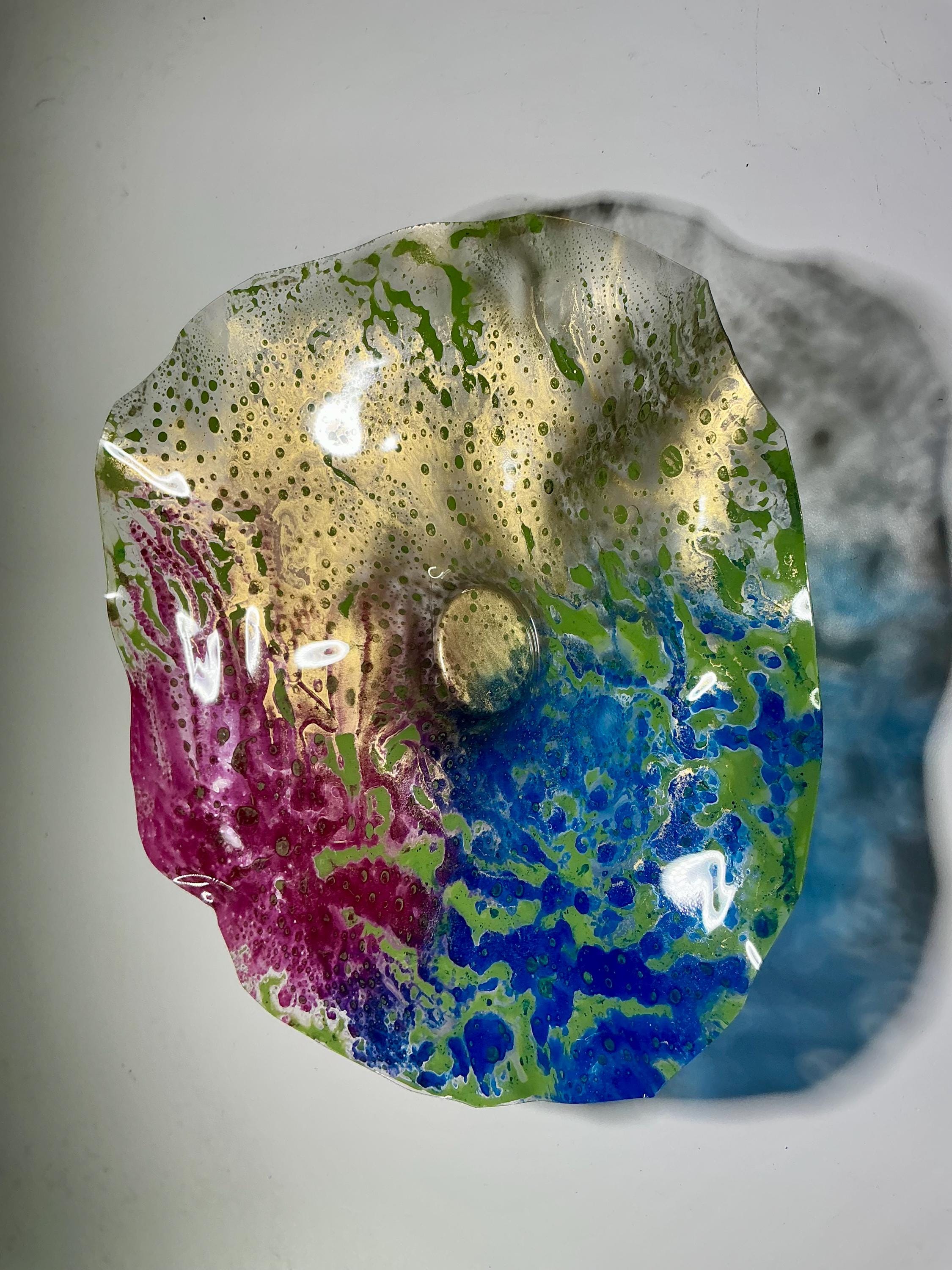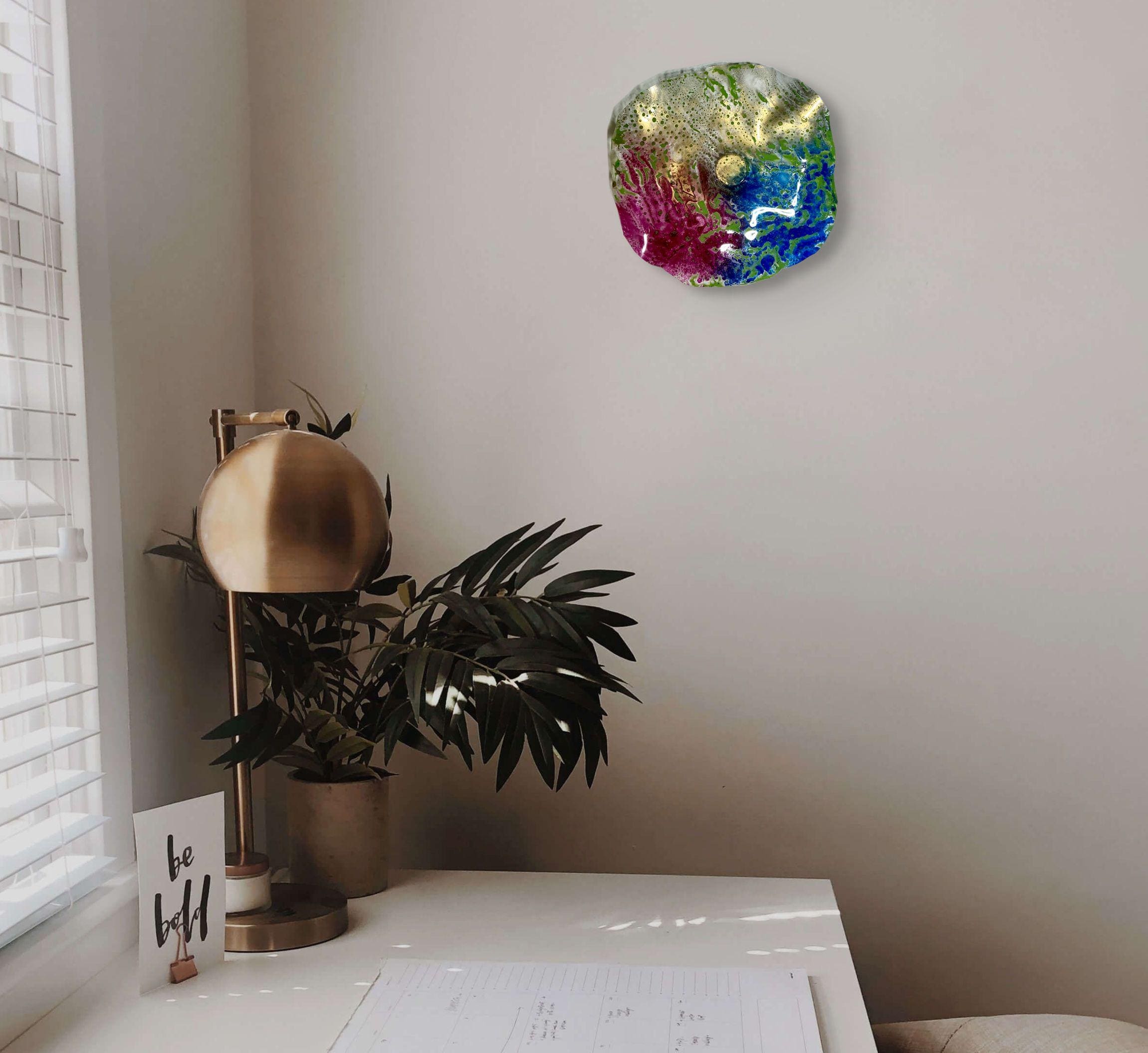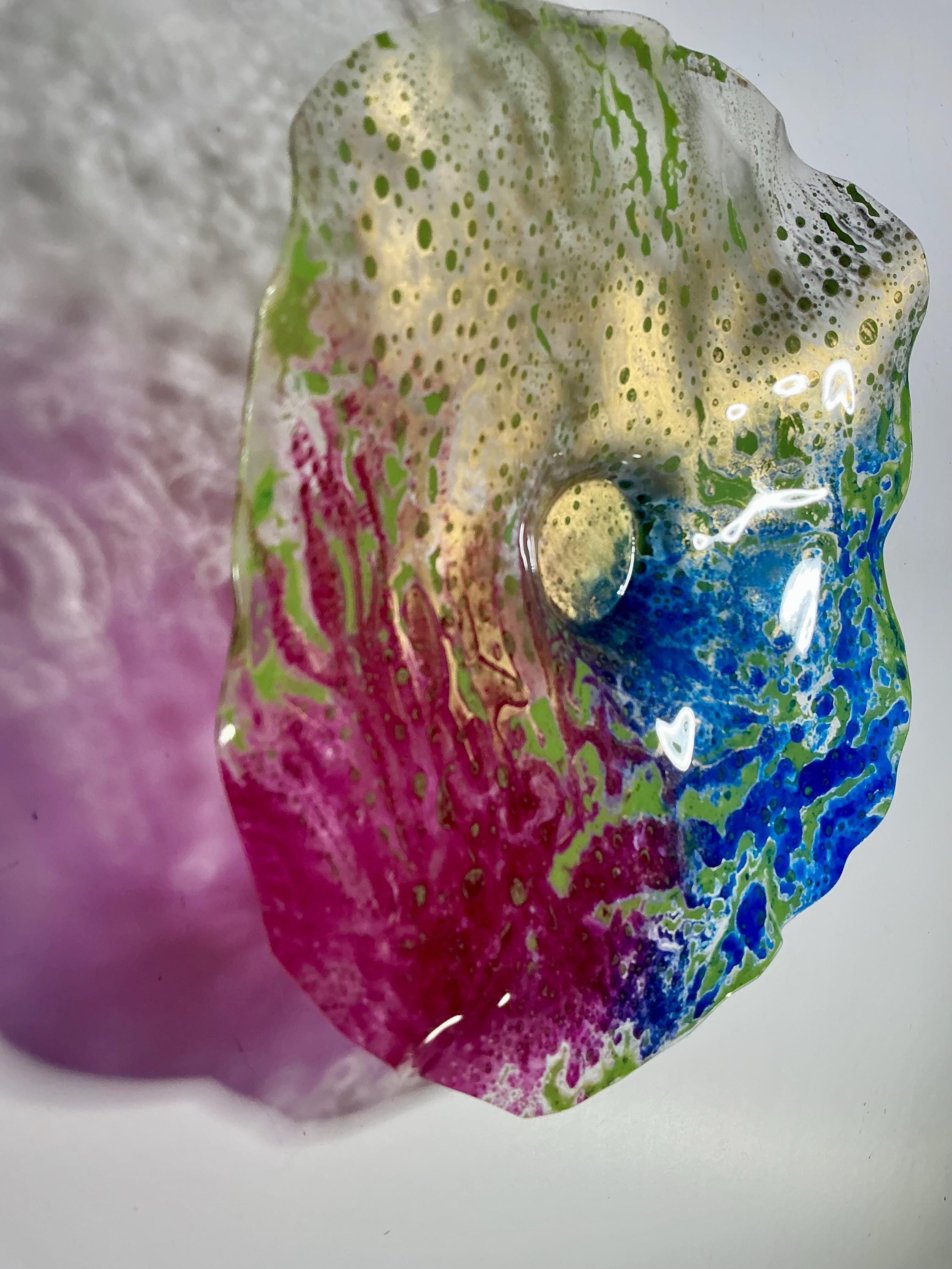 Illuminate your space with our Small Wallflower from the Ocean Arts collection! This stunning 9-inch piece features a unique blend of burgundy, blue, gold, and green, crafted meticulously by hand from recycled plastic to mimic the elegance of glass. Perfect for adding a touch of coastal charm to any room, each wallflower showcases an eco-friendly design that stands out. Bring beauty and sustainability into your home today with this exquisite art piece!