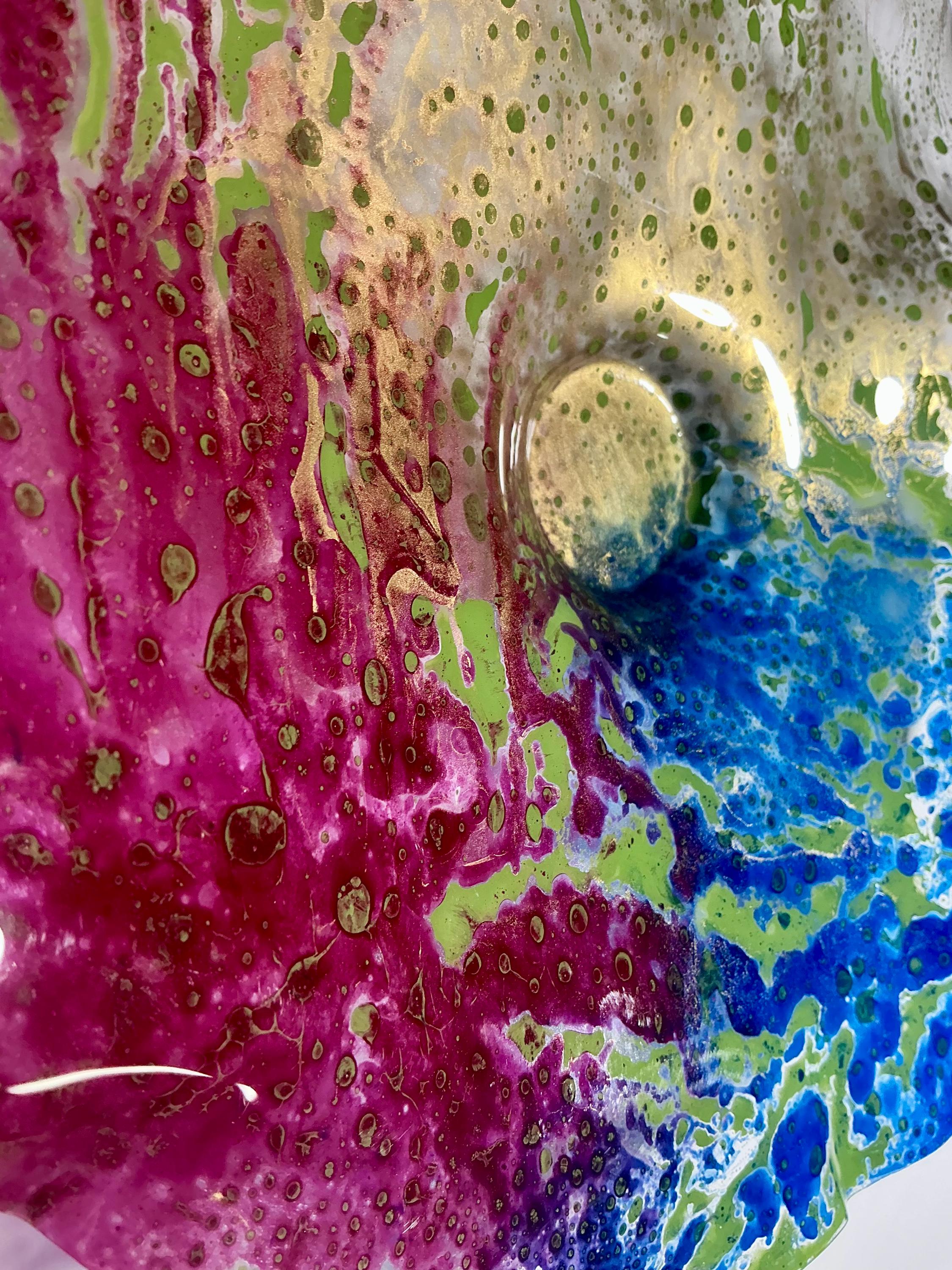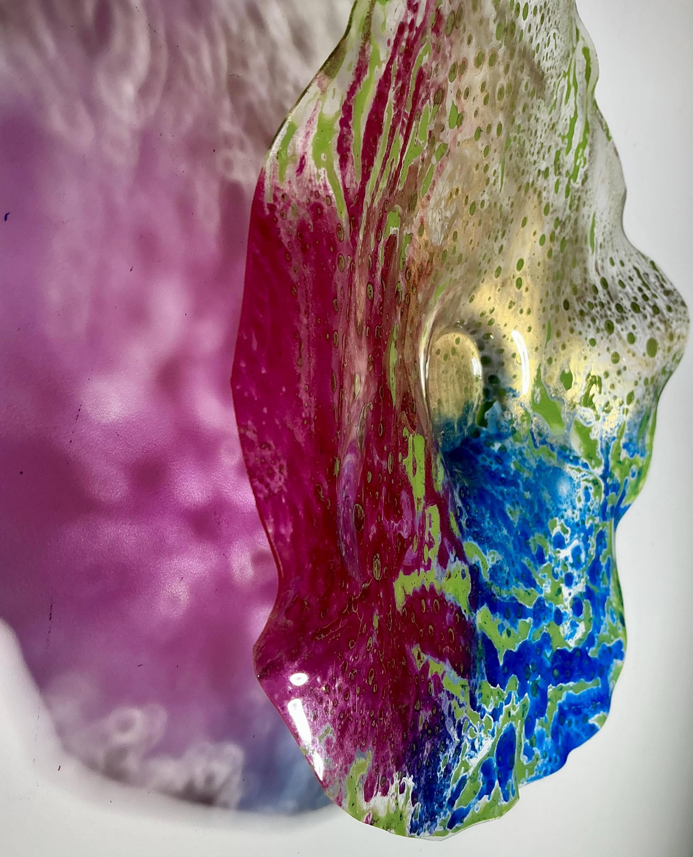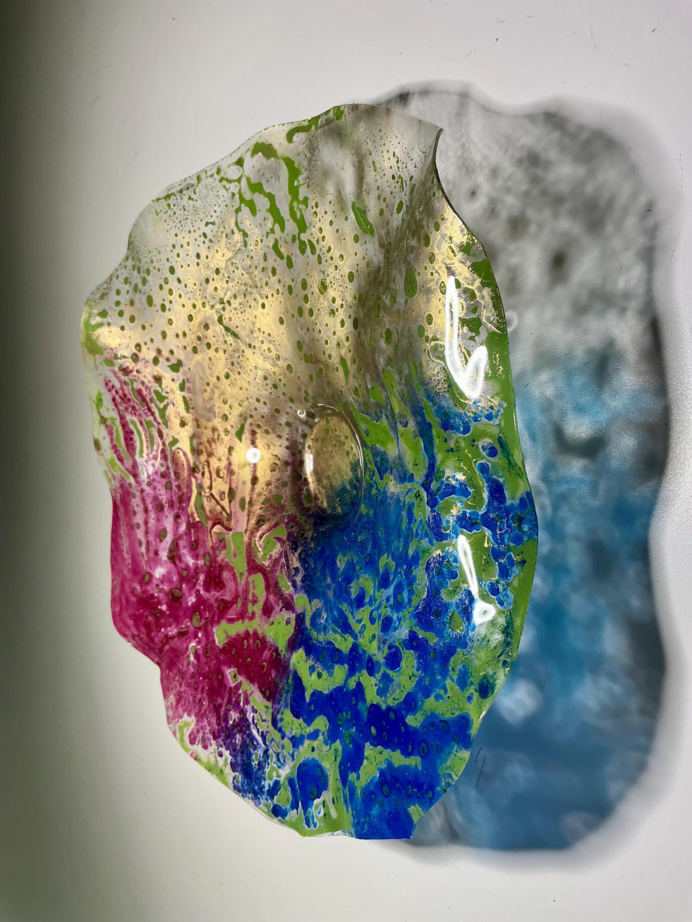 Illuminate your space with our Small Wallflower from the Ocean Arts collection! This stunning 9-inch piece features a unique blend of burgundy, blue, gold, and green, crafted meticulously by hand from recycled plastic to mimic the elegance of glass. Perfect for adding a touch of coastal charm to any room, each wallflower showcases an eco-friendly design that stands out. Bring beauty and sustainability into your home today with this exquisite art piece!