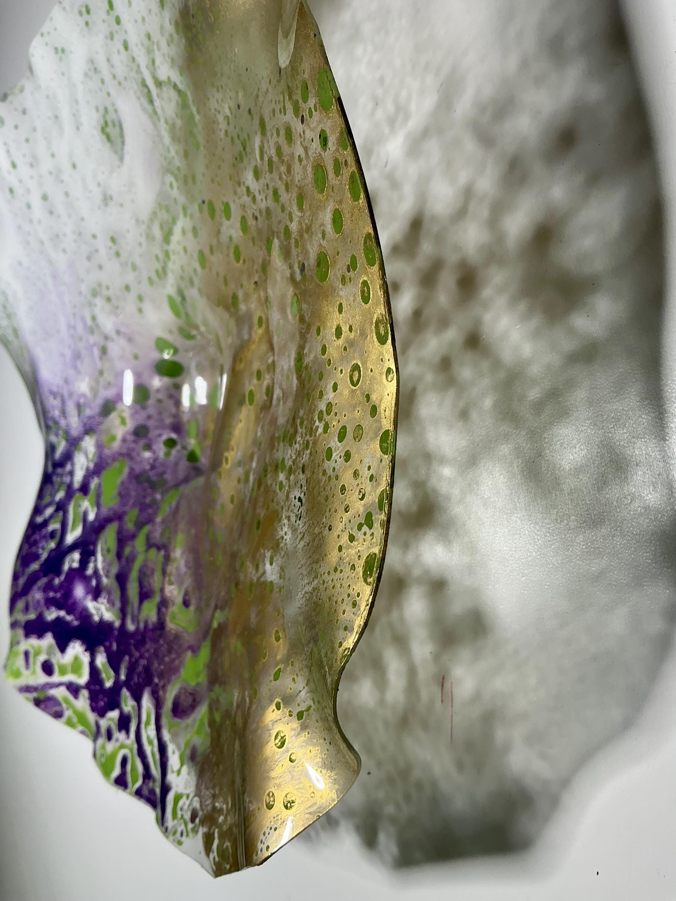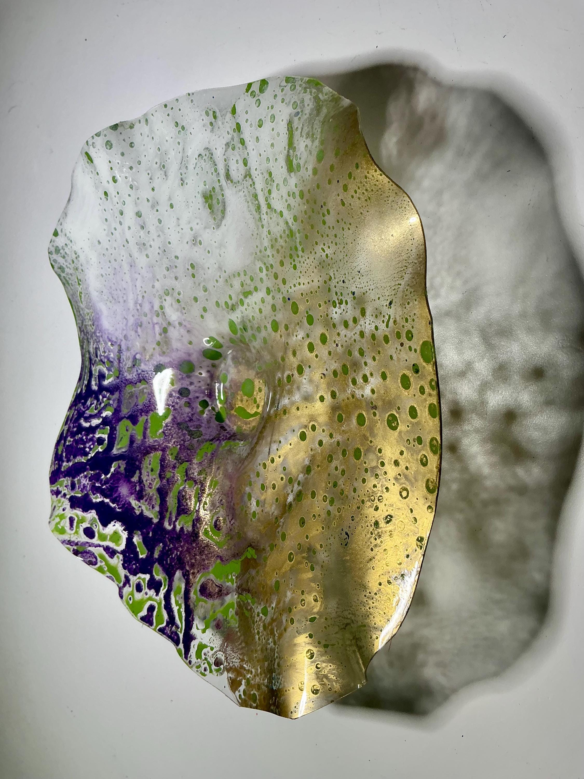 Transform your space with our stunning handmade wall art, featuring a captivating blend of purple, gold, and white. Measuring 9 inches, this unique piece mimics the elegance of glass but is crafted from recycled plastic, making it both eco-friendly and stylish. Whether you hang it in your living room, bedroom, or office, its vibrant colors and chic design will elevate any décor. Embrace sustainability without compromising on beauty—add this one-of-a-kind wall art to your collection today!