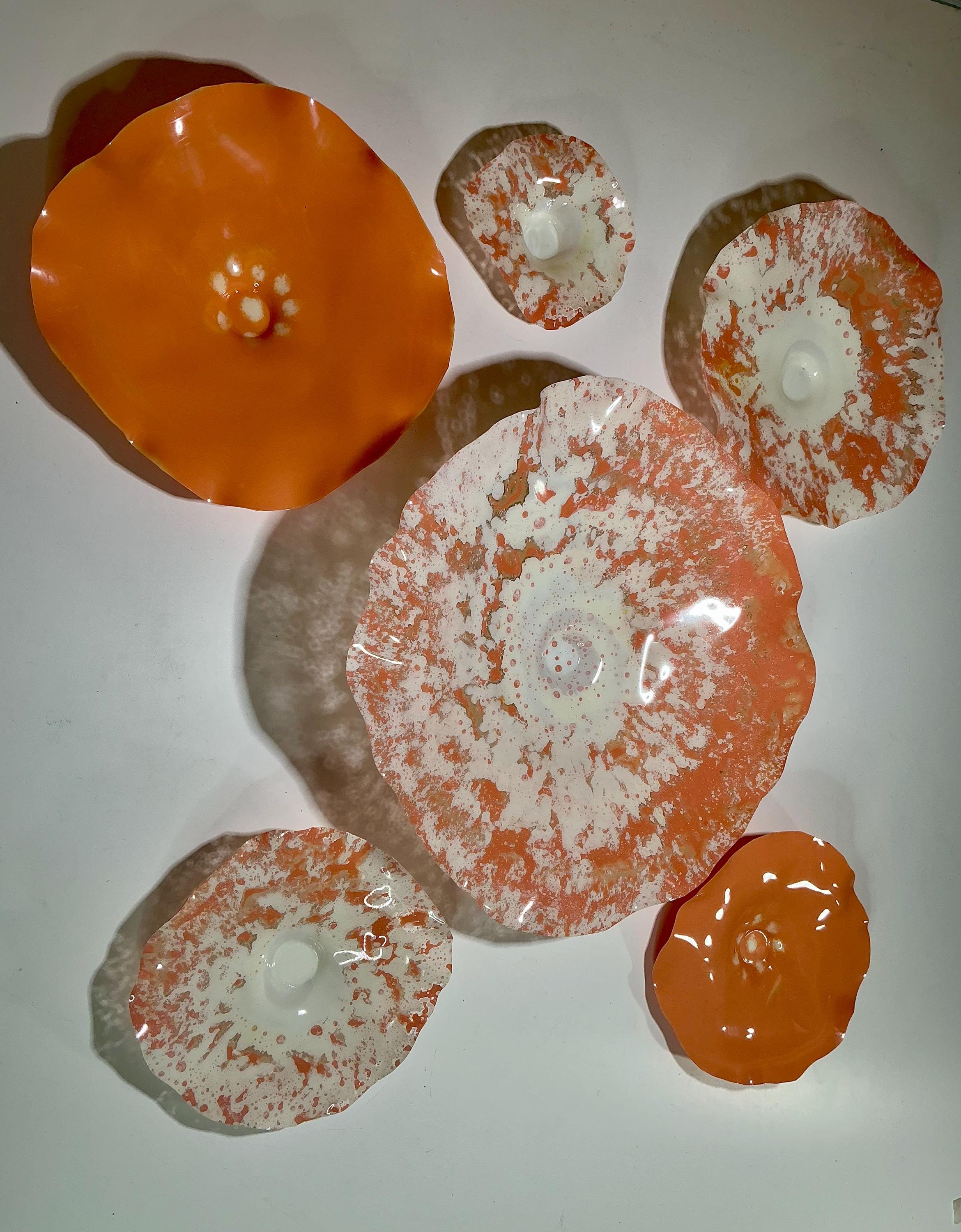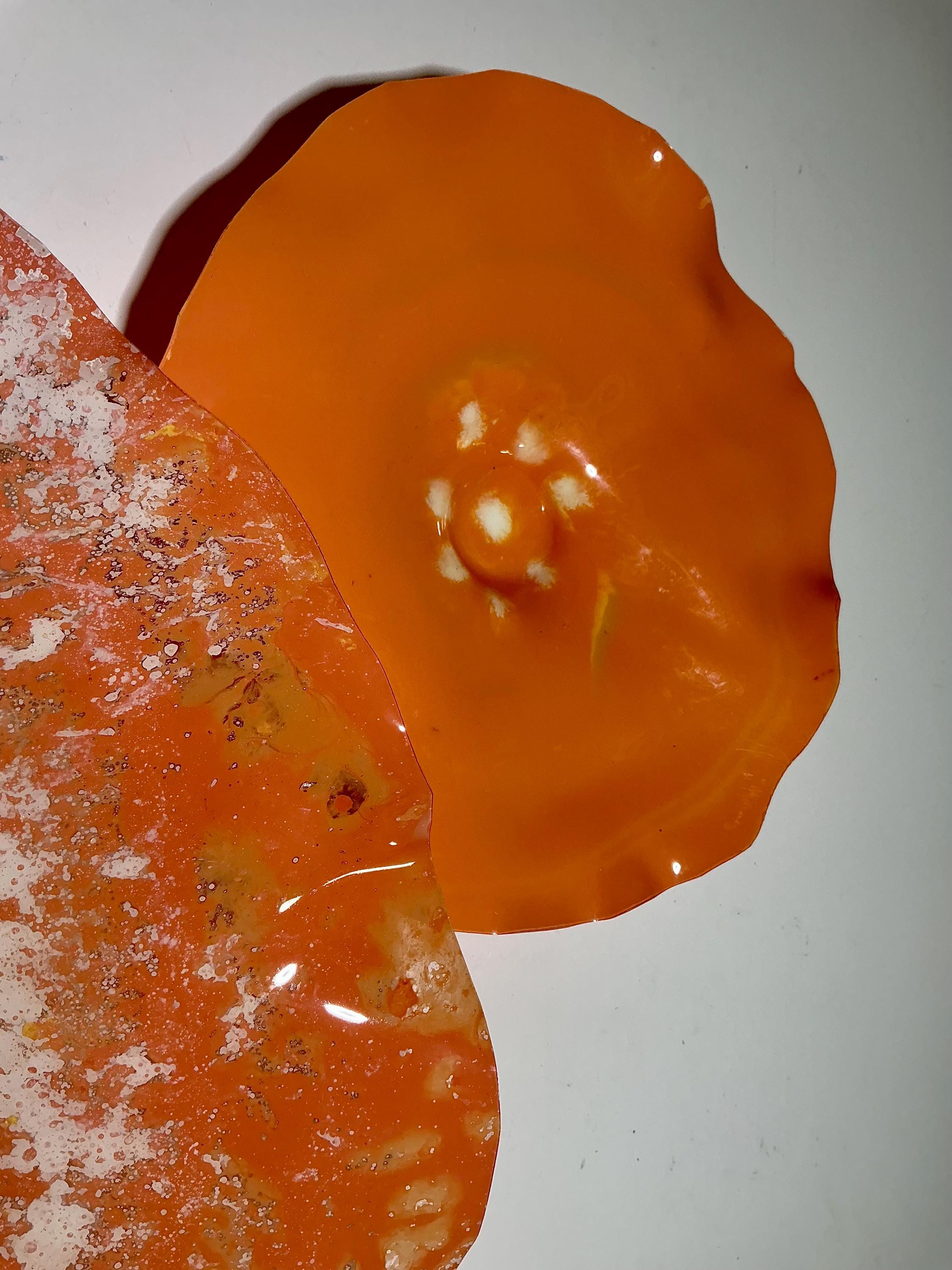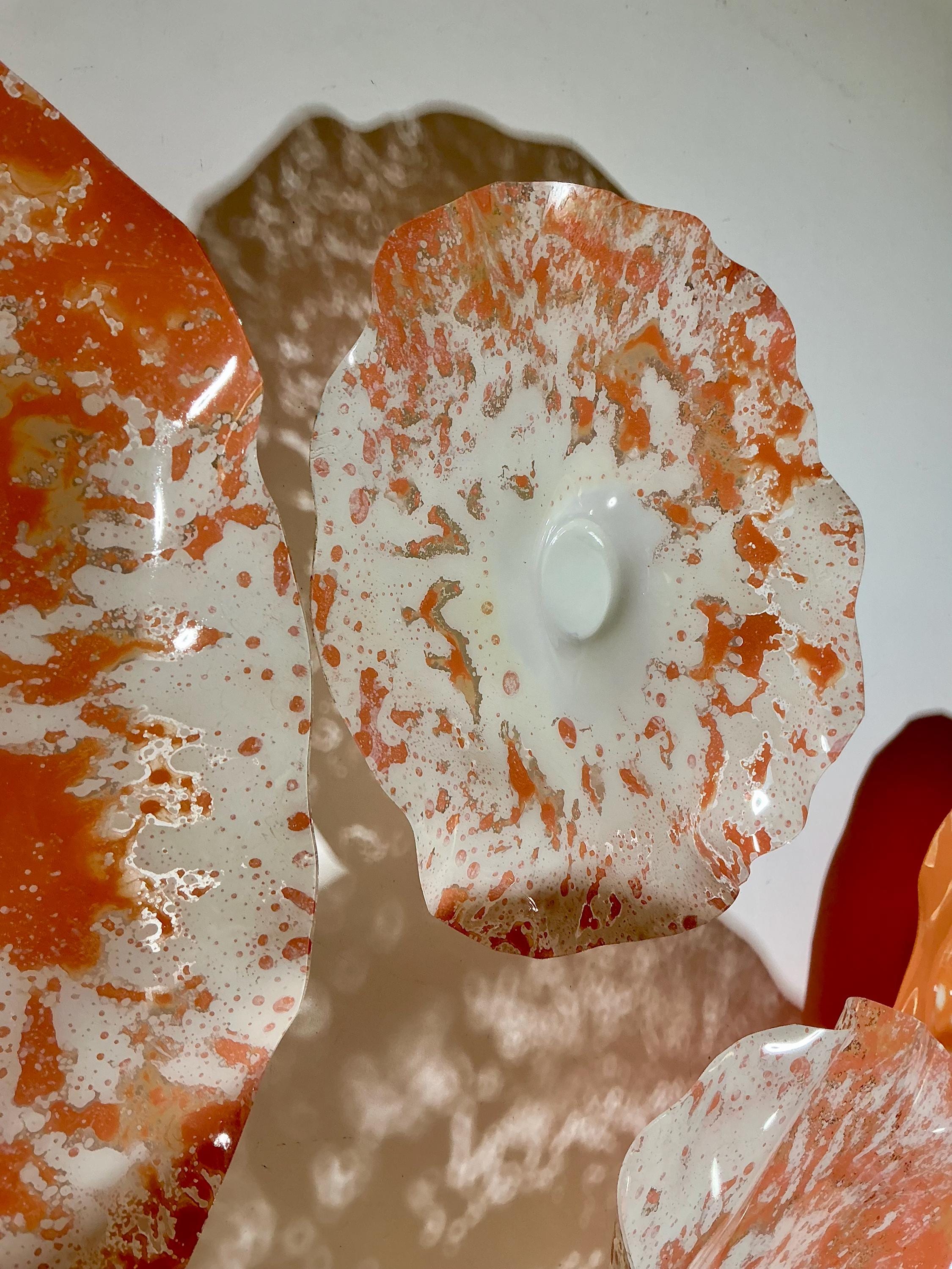 Unique Orange and White Wallflower Set - One-of-a-Kind Glass-Like Art for Living Room Handmade upcycled plastic