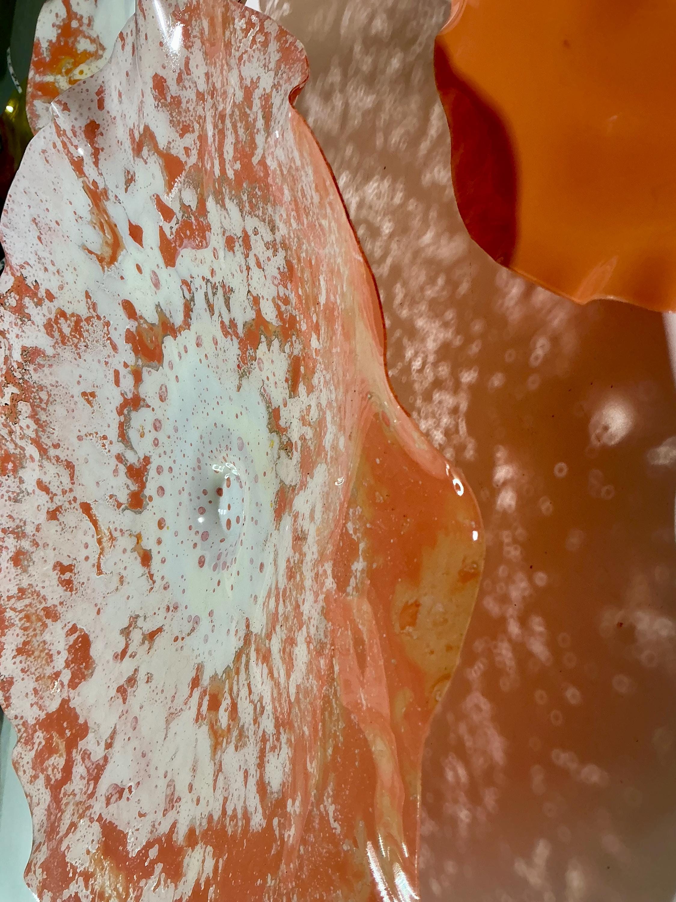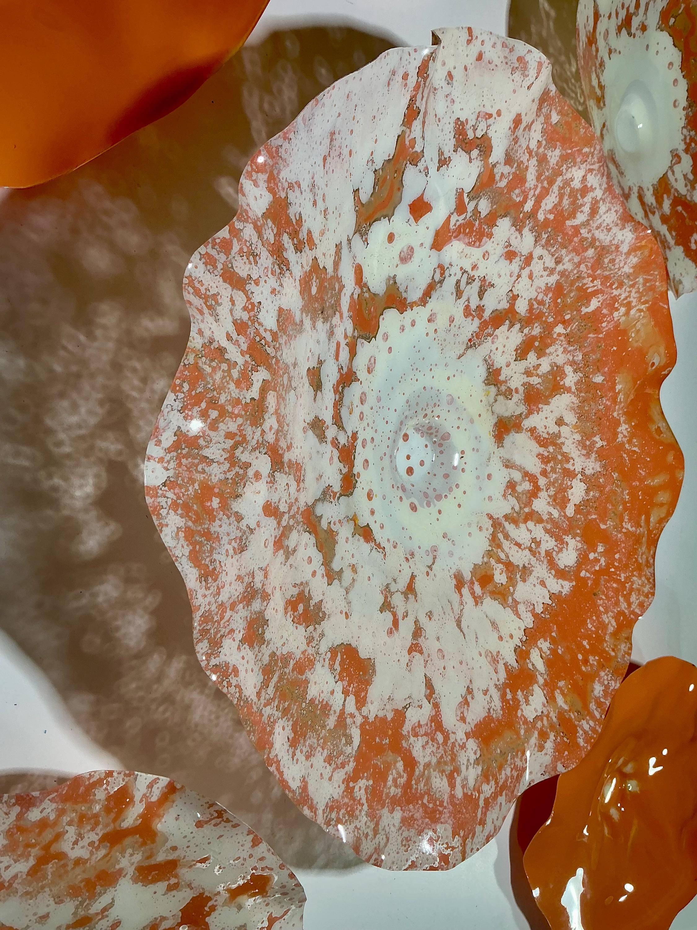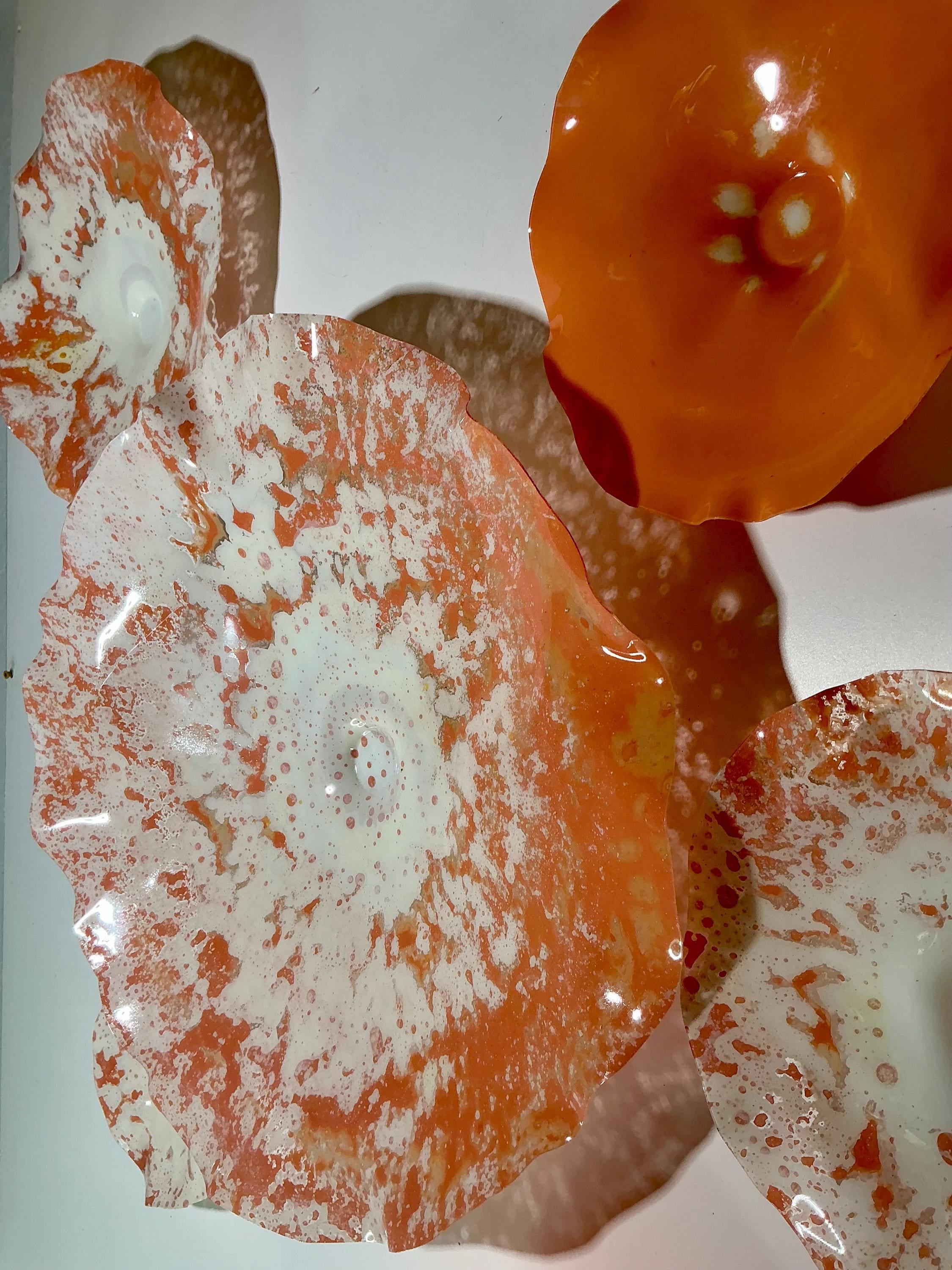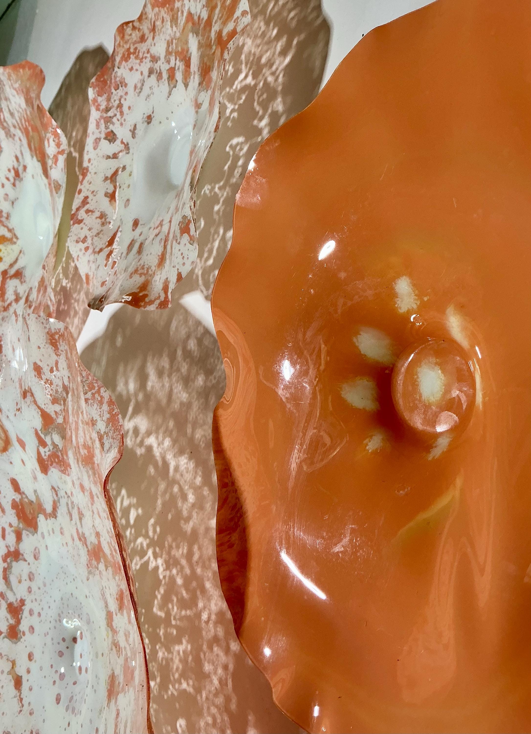 Unique Orange and White Wallflower Set - One-of-a-Kind Glass-Like Art for Living Room Handmade upcycled plastic
