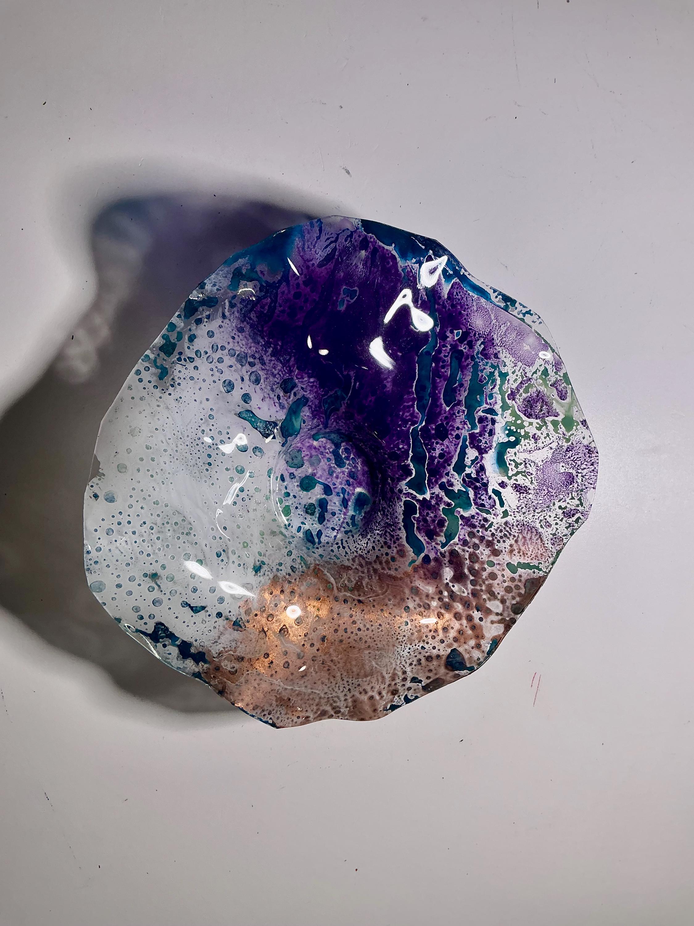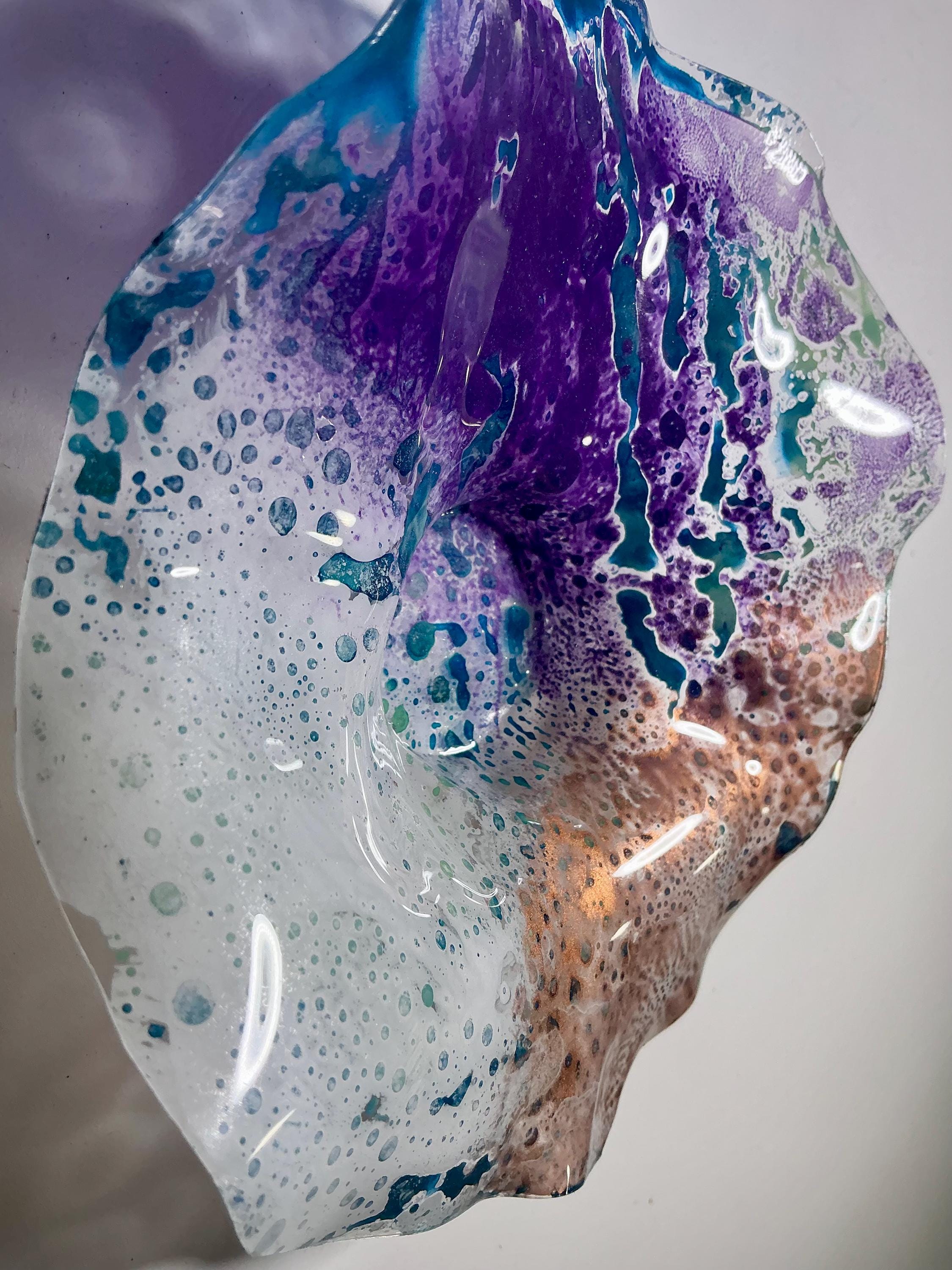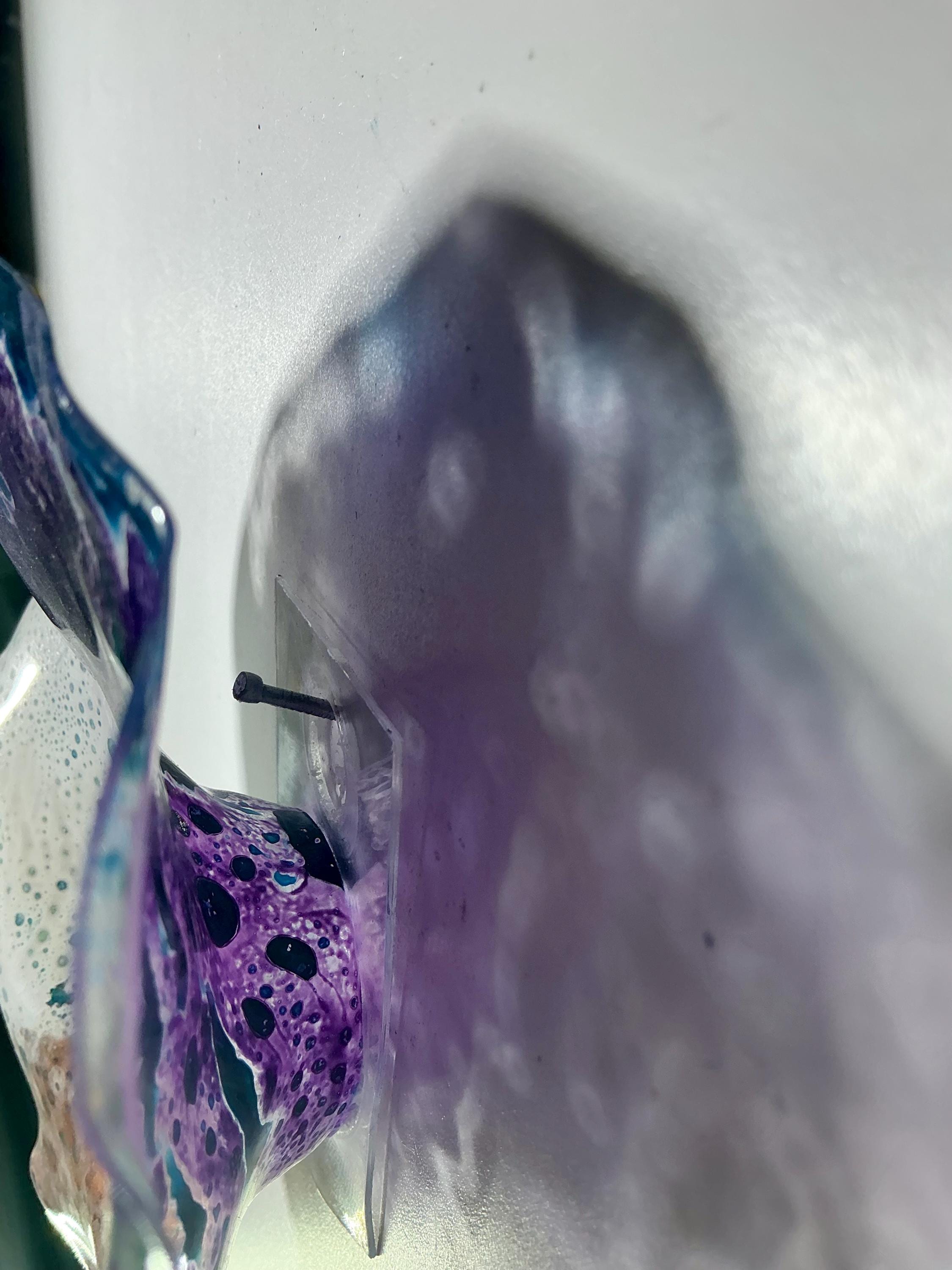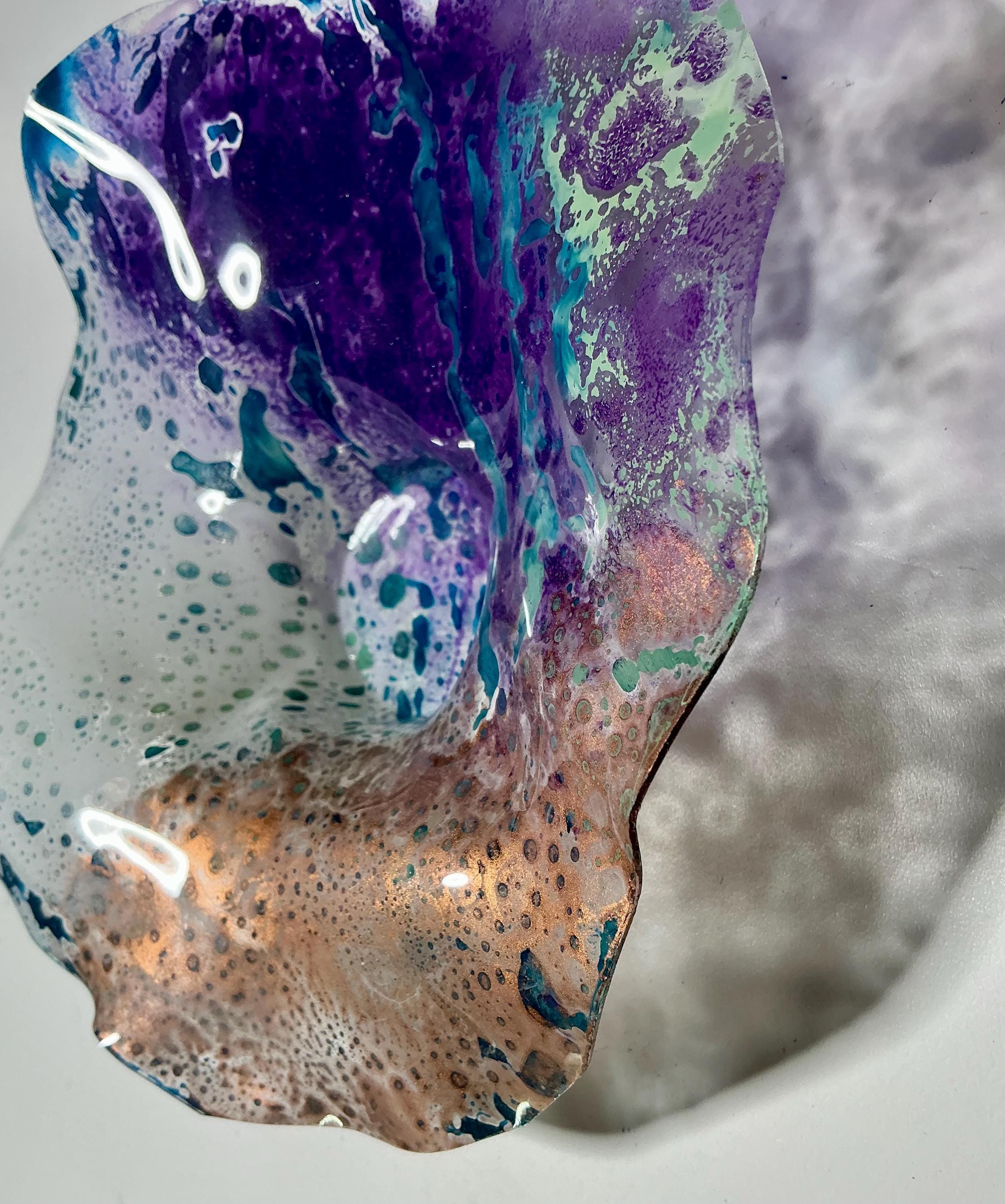 5 Inch Wall Hanging: Handmade sustainable plastic copper, purple & white with Glass Effect